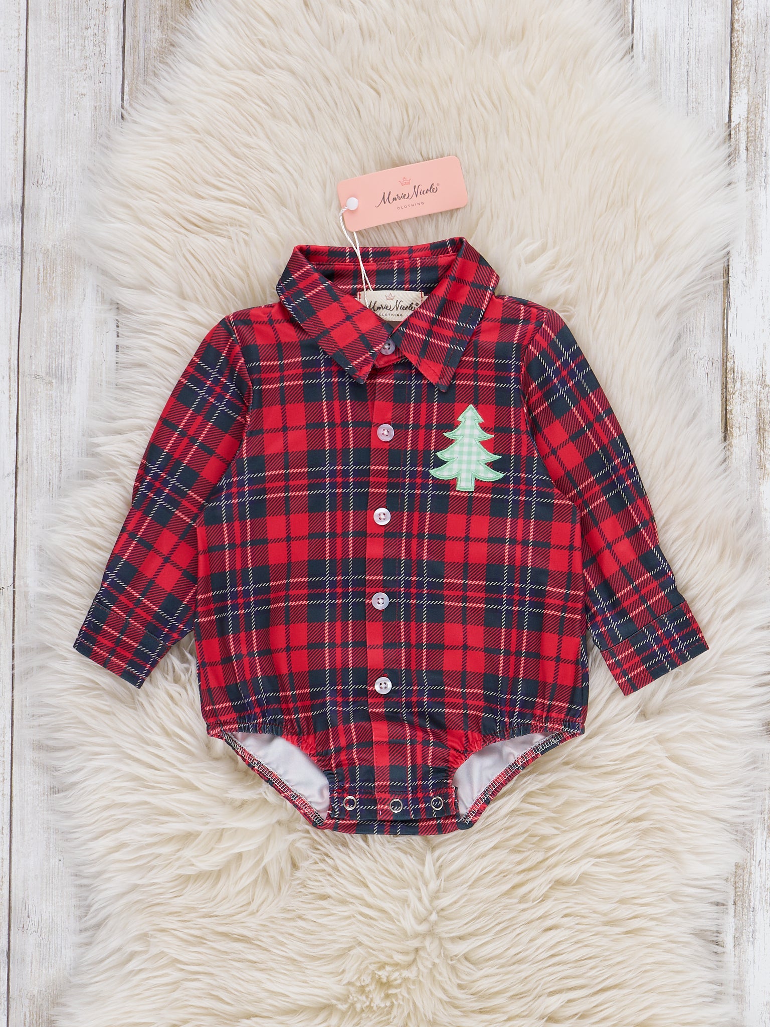 The Christmas Tree Lumberjack Embroidered Button-Up Bubble is ready for the holidays! This Marie Nicole Clothing one-piece has a flannel-style look, featuring an embroidered tree. Made with soft, stretchy fabric, this bubble romper is perfect to wear for tree buying or decorating!