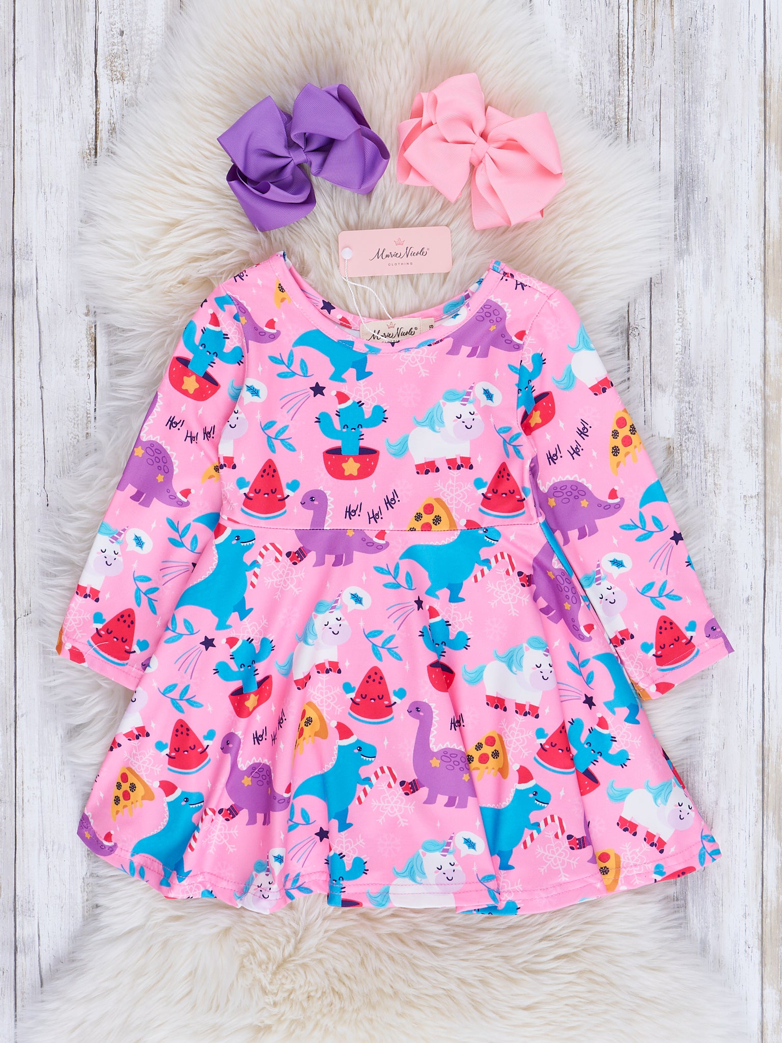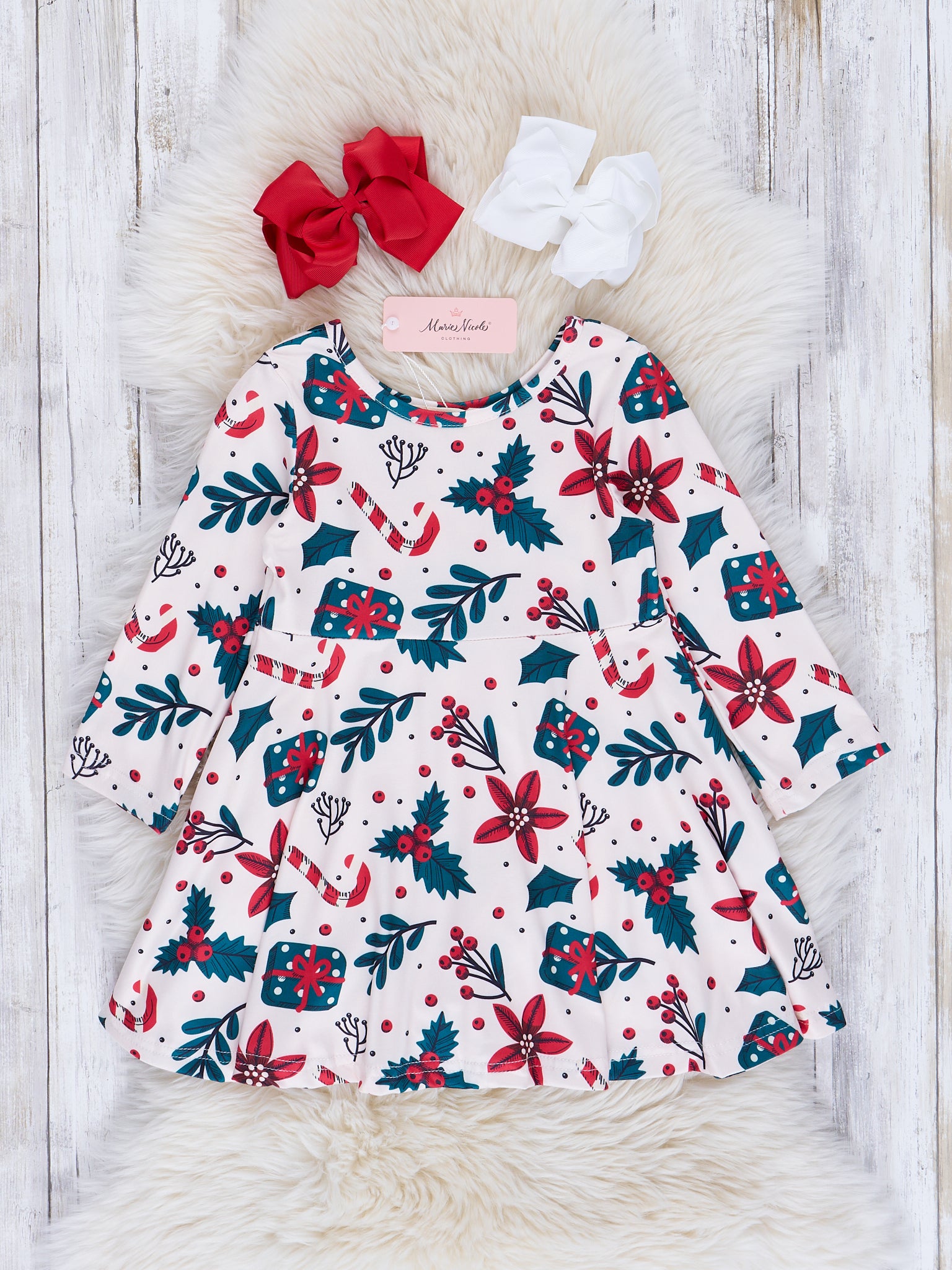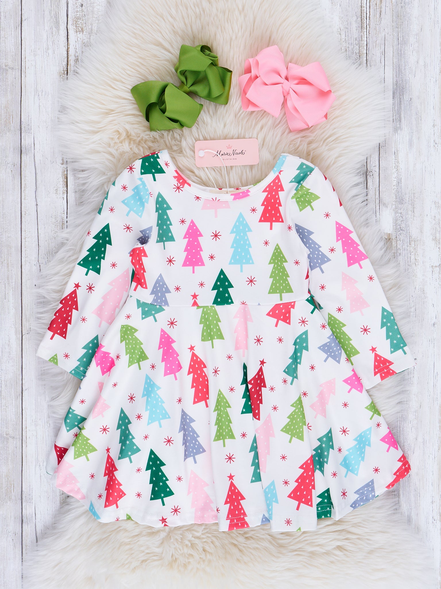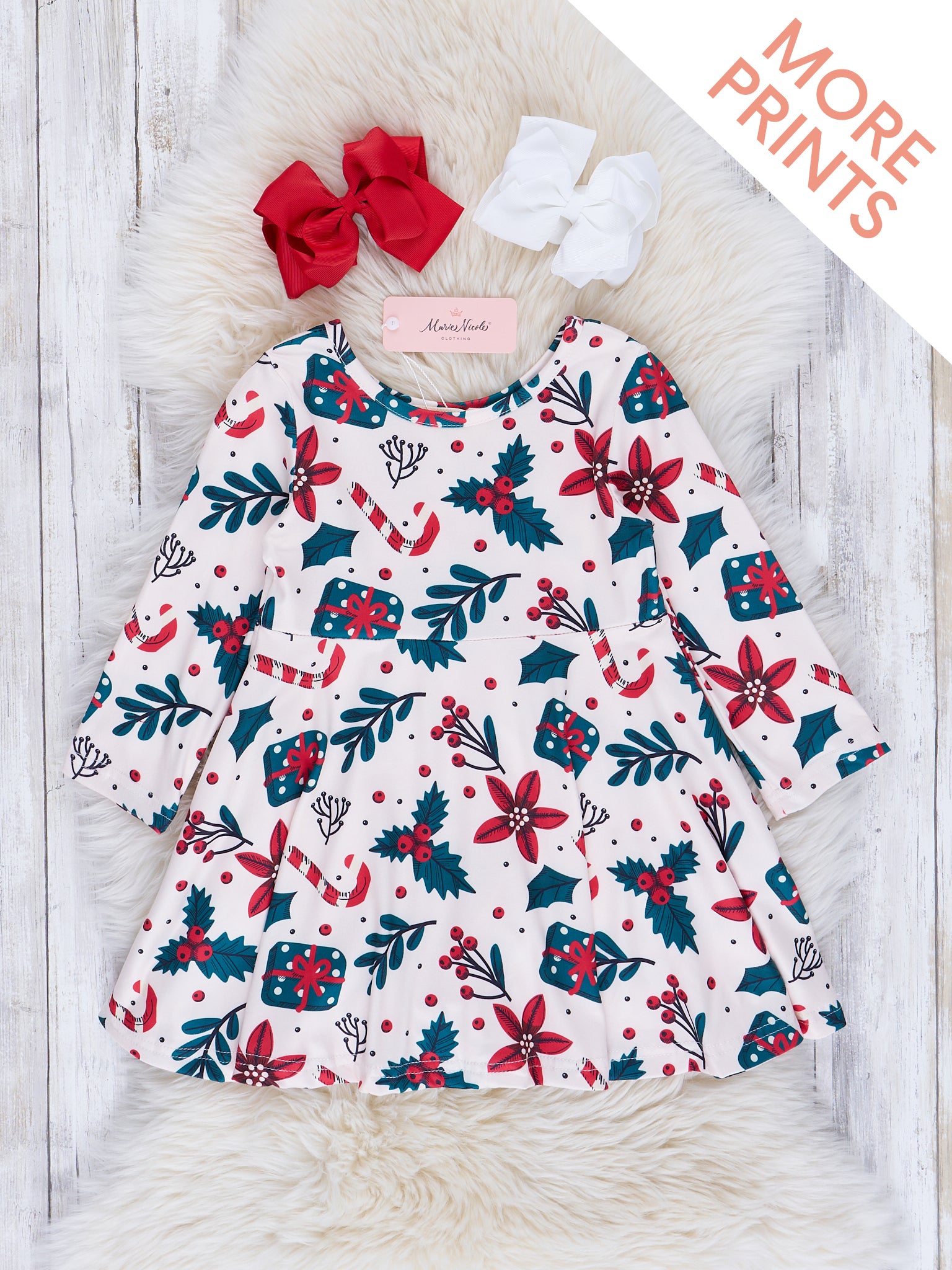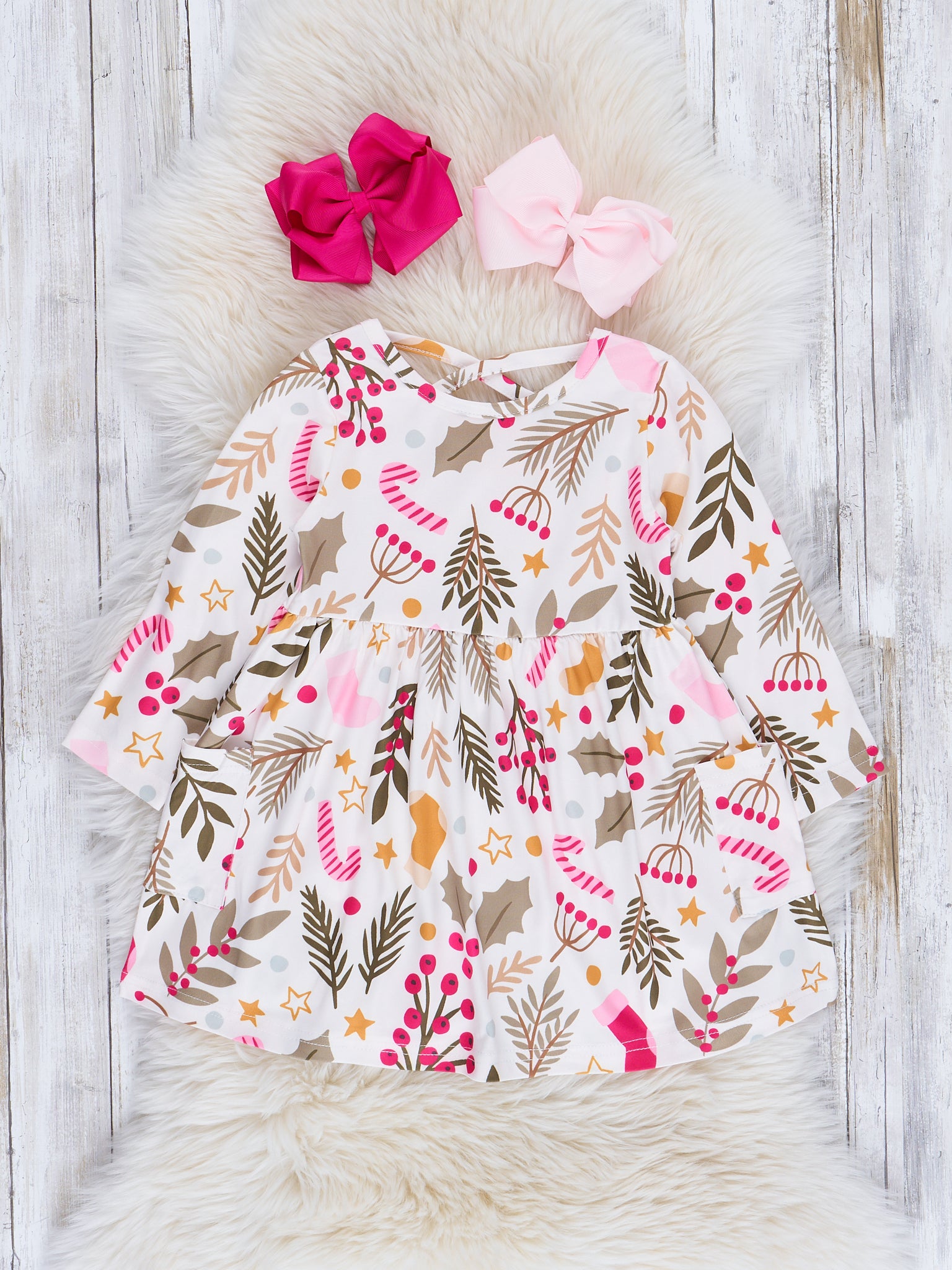 Everyone's favorite swing dresses are back with the most adorable holiday prints! Outfit your mini every day of the season with these comfy long-sleeved dresses that cinch at the waist and have subtle pleats.