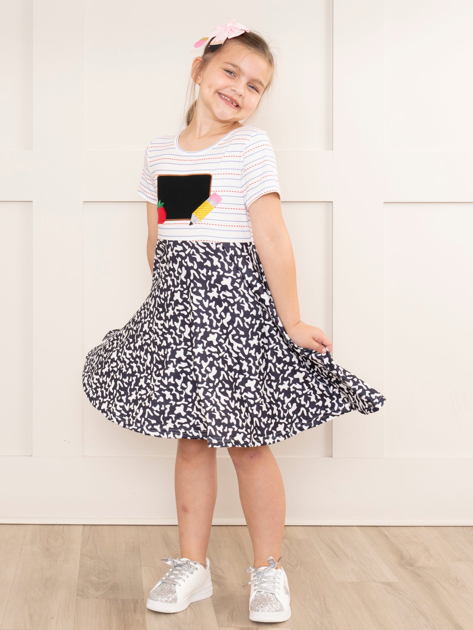 Get ready to rock back to school with this quirky Composition Notebook Swing Dress. Featuring a fun design inspired by competition notebooks, this dress is perfect for the studious fashionista. With its playful, unique look, it's sure to be a hit wherever you wear it!