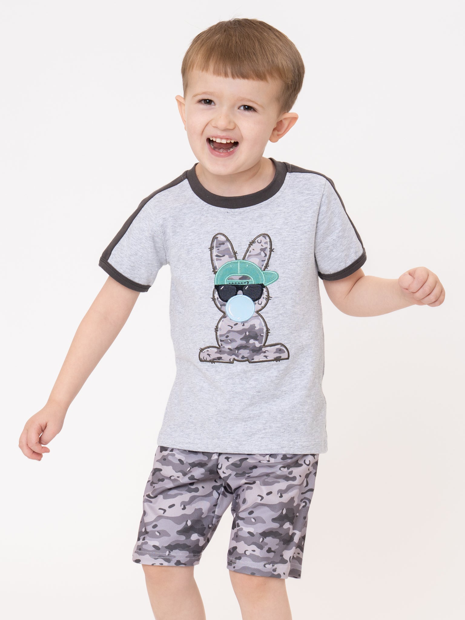 The Cool Camo Bunny Shades Embroidered Outfit by Marie Nicole Clothing blends playful edge with its embroidered bunny graphic, short sleeves, and matching camo shorts set. Stretchy fabric ensures comfy movement for active adventures, while classic detailing adds boutique charm for little trendsetters. Perfect for family outings, photos, or festive play full of cool vibes and joyful energy.