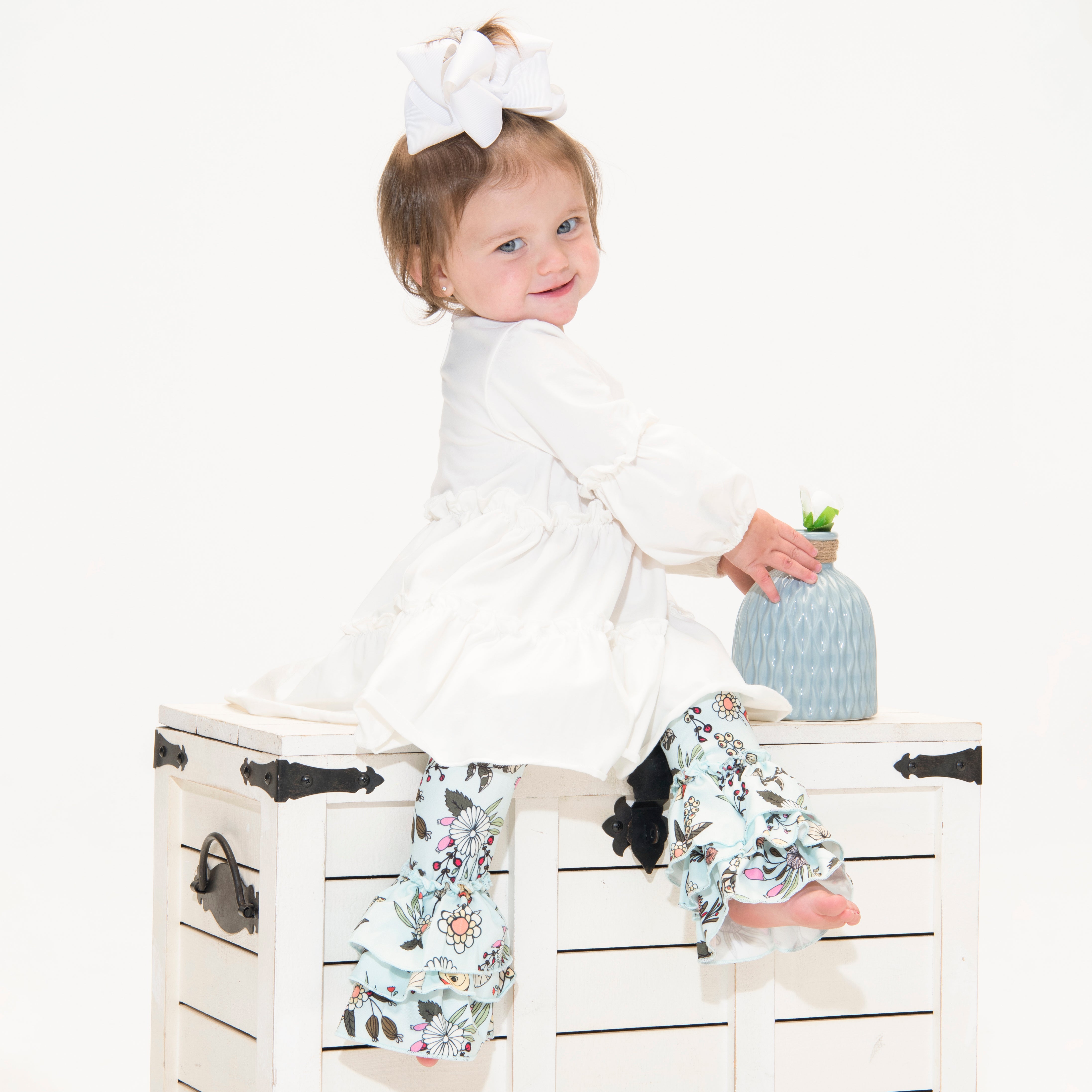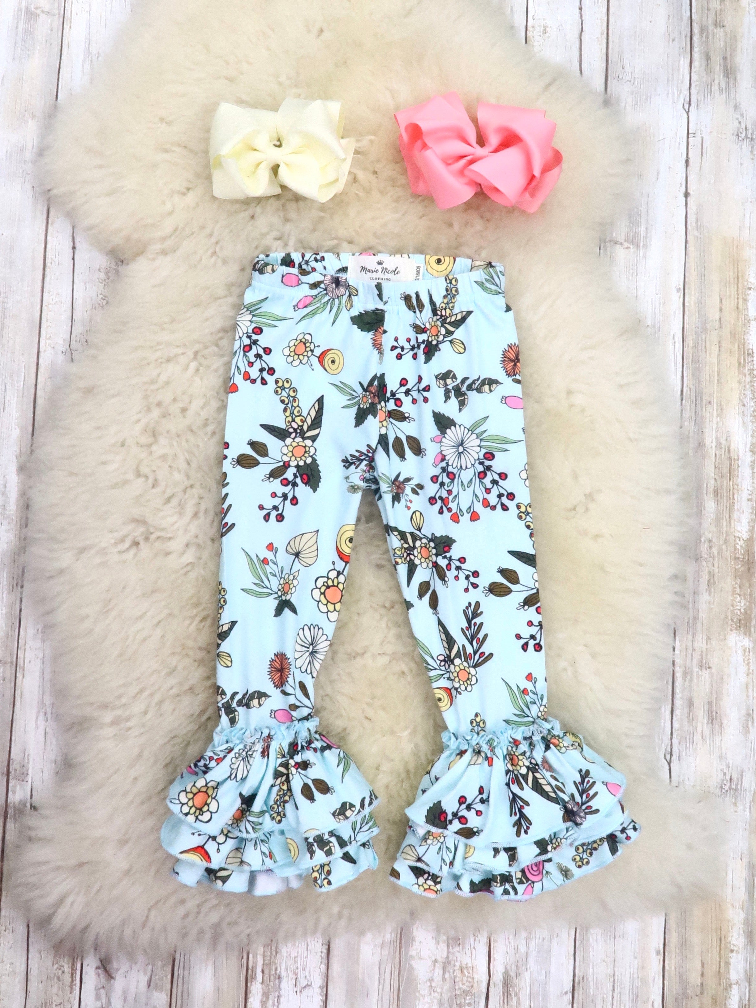 Tulip Ruffle Leggings - Fall Baby BLUE Floral
