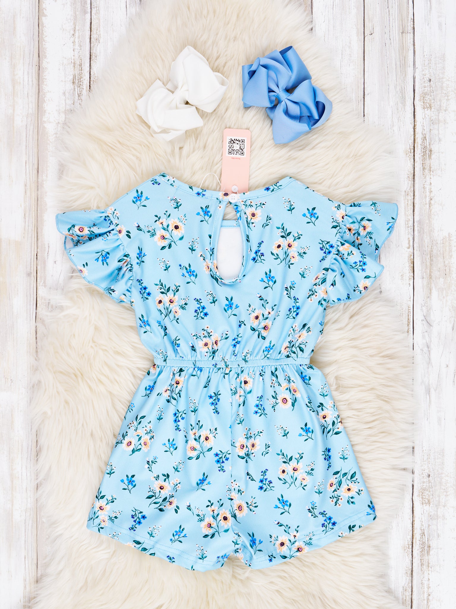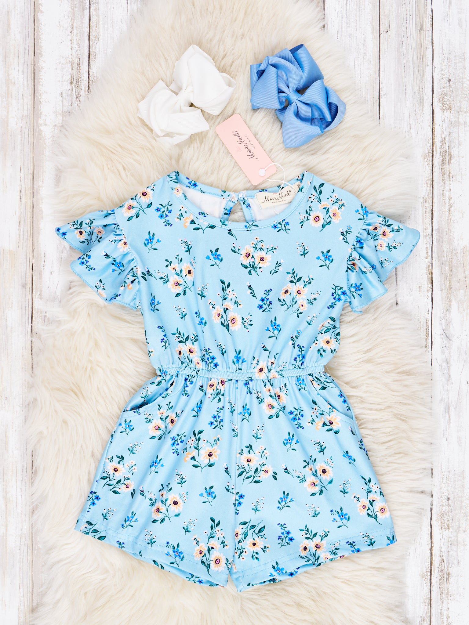 Let your mini fashionista show off their style with this adorable Cornflower Blue Floral Ruffle Jumpsuit. Bursting with ruffles and florals, this children's jumpsuit is sure to be a big hit - perfect for a photoshoot, party, or a day at the park!