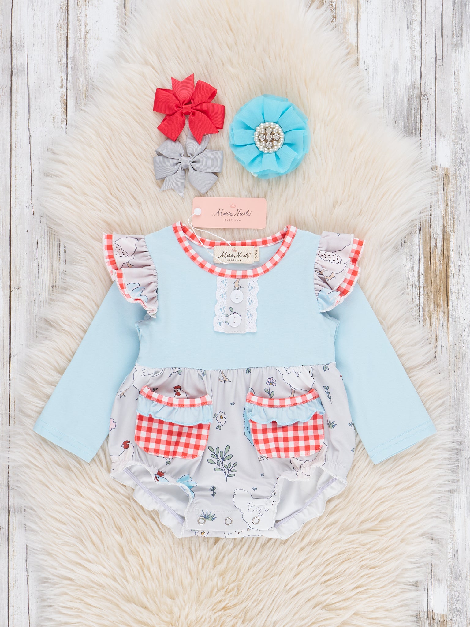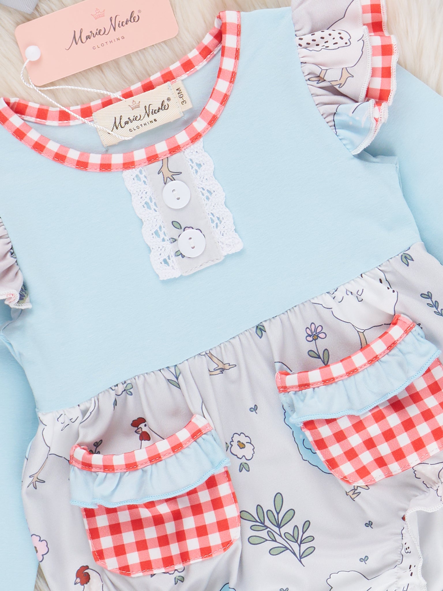 The Country Charm Chicken Pocket Ruffle Bubble is a sweet and whimsical choice that’s perfect for farm days and sunny playtime. Featuring an adorable chicken print, charming front pocket, and soft ruffle accents, this bubble from Marie Nicole Clothing blends country flair with playful comfort. Made from breathable, lightweight fabric, it’s ideal for barnyard adventures, family outings, and picture-perfect moments.
