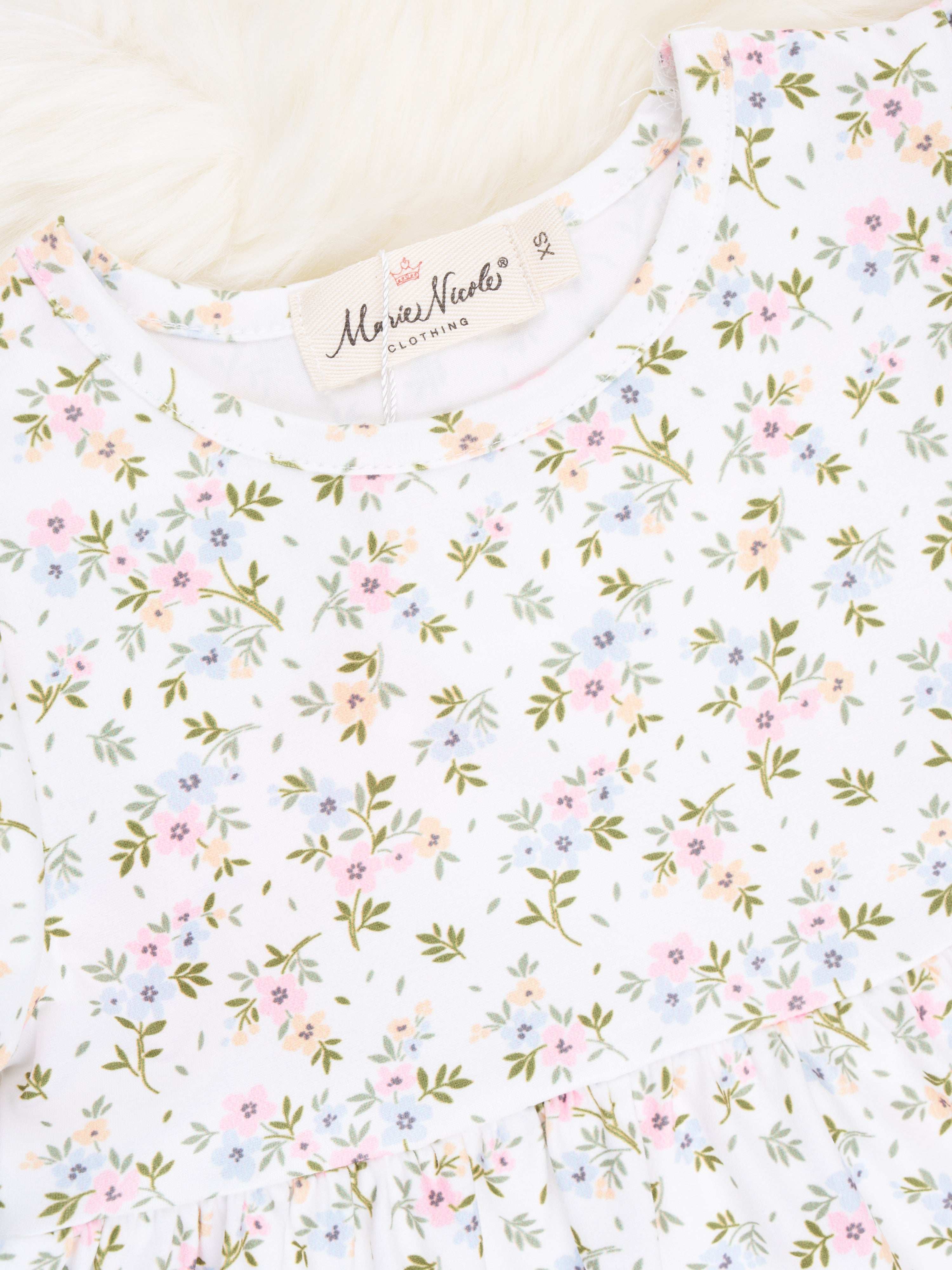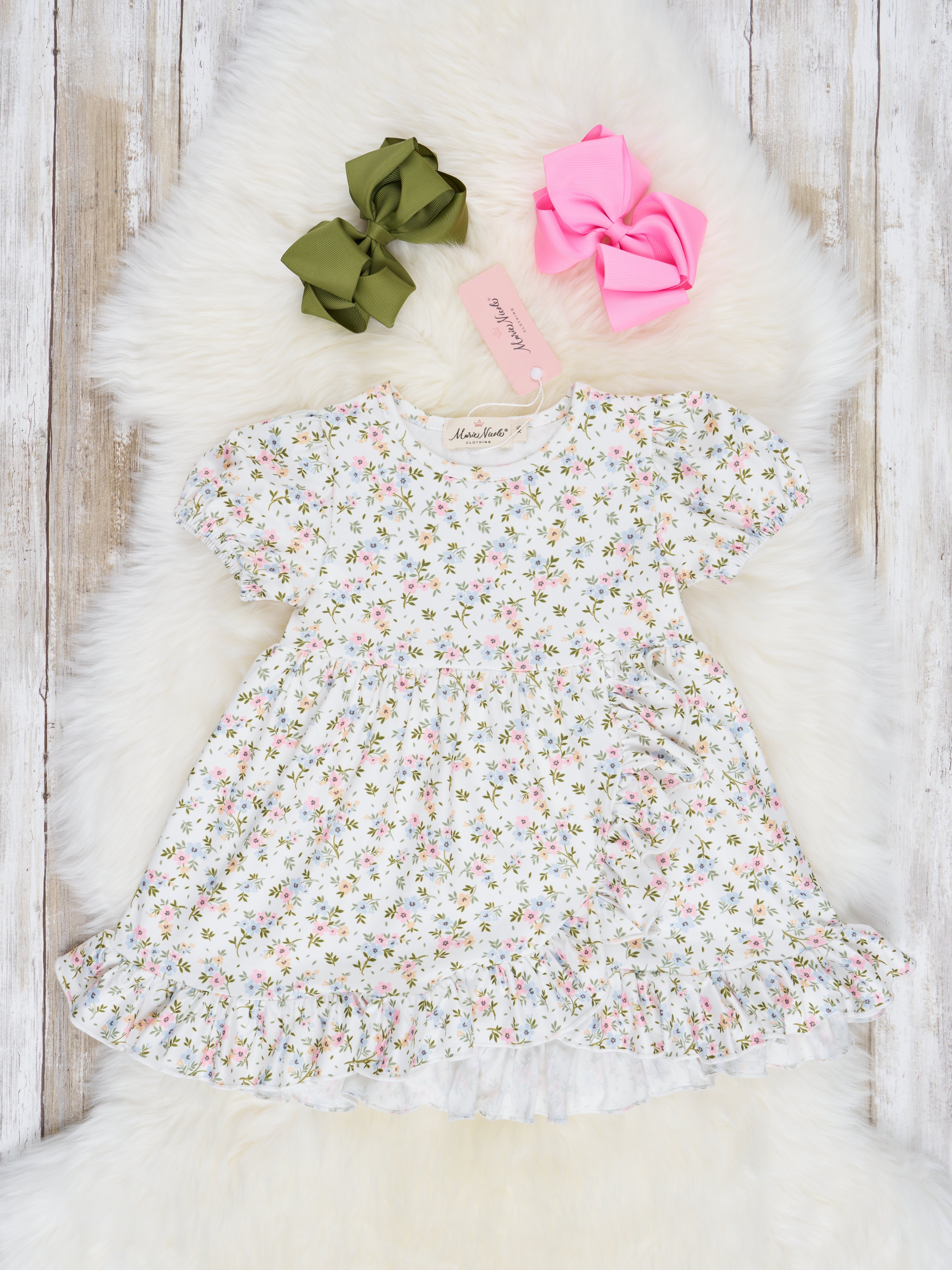 Your little one will look like the sweetest thing in the garden in this cheerful Cream Ditsy Floral Ruffle Dress! Its ruffled accents and floral print make it perfect for any special occasion. Toss on this dress, and your kiddo will have everyone buzzing with delight!