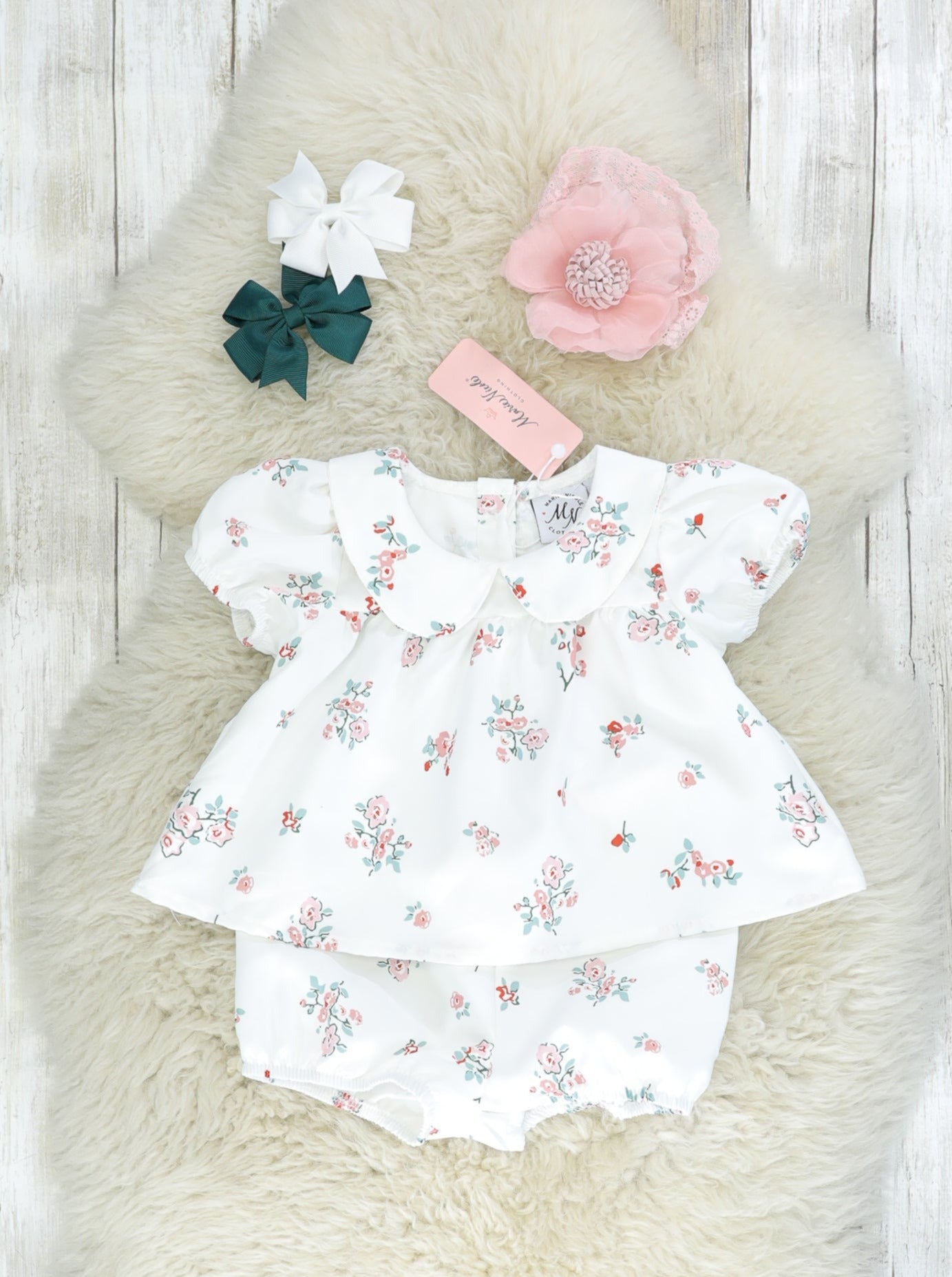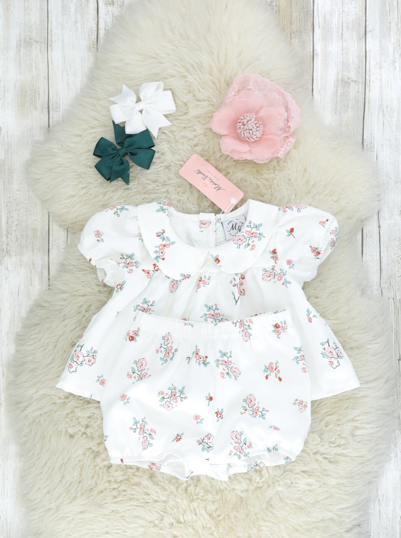 White Floral Vintage Top & Bloomers Outfit