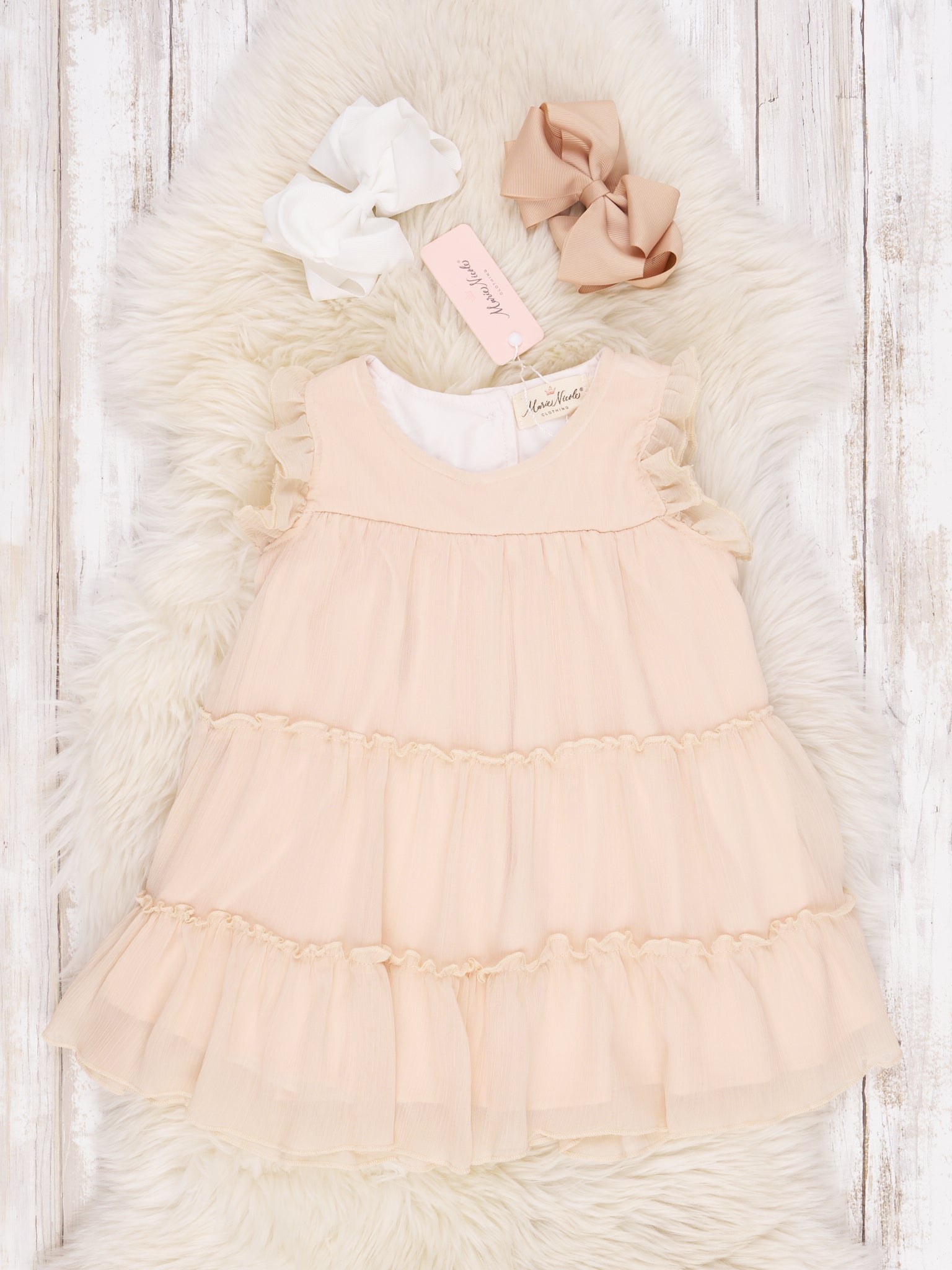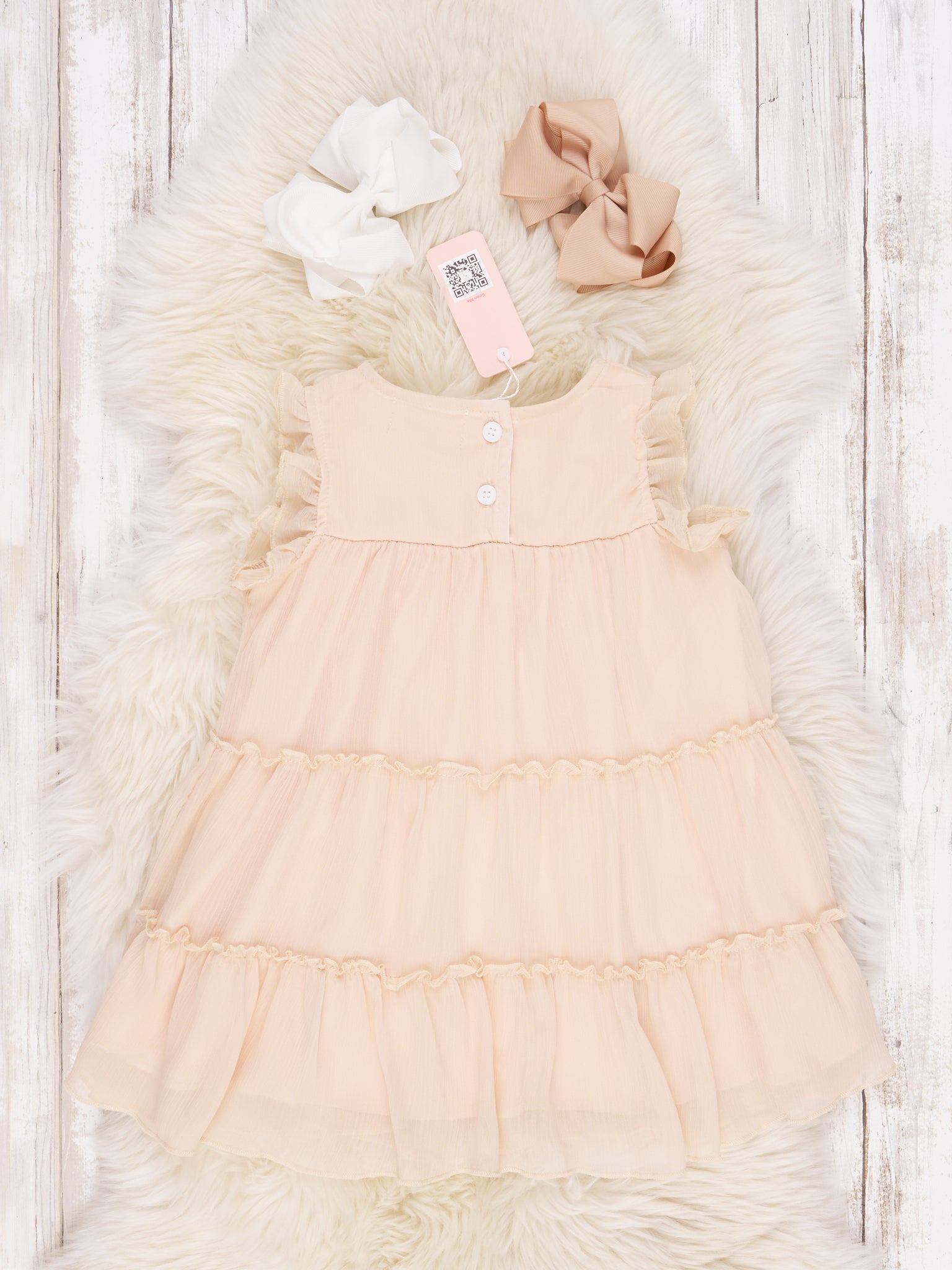 Shine bright in this stylishly sweet dresses! This oh-so-cute dress features vibrant cream hues, a tiered style, and delicate ruffles. Perfect for special occasions or everyday looks, your mini-me is sure to be the star of the show!