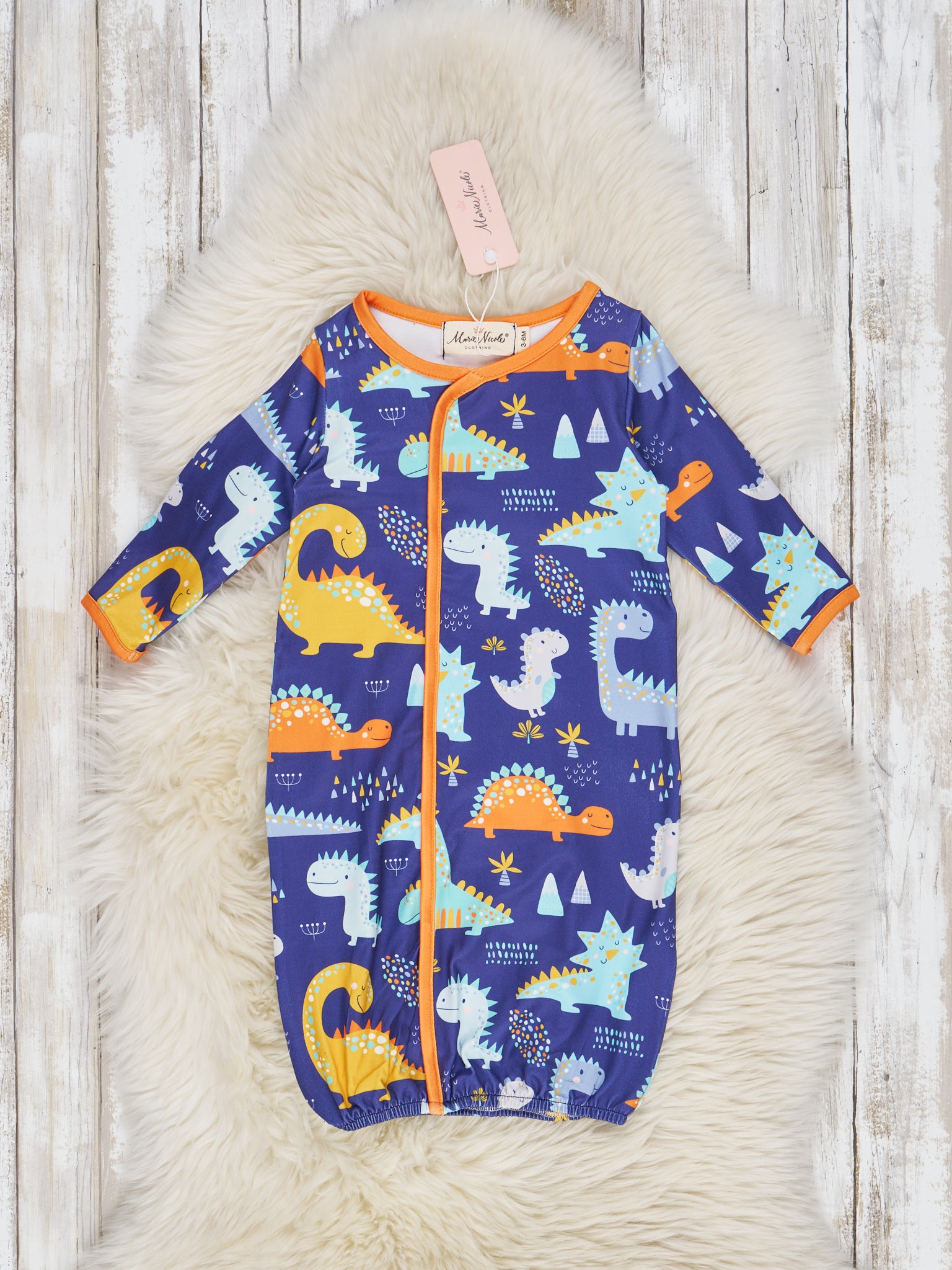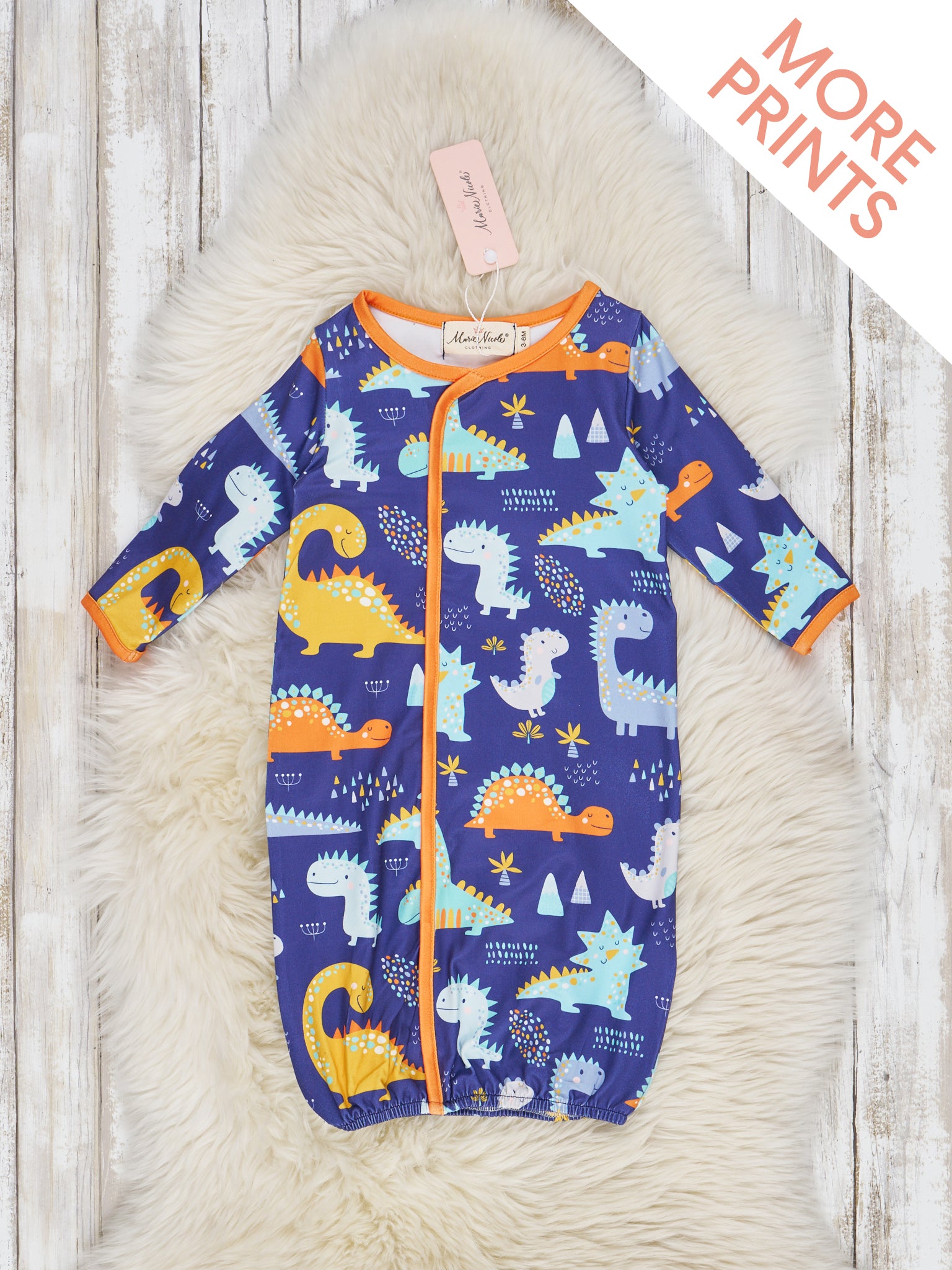 The Dinsoaur Friends Sleep Gowns are super comfy and cozy, featuring playful dino patterns for the sweetest dreams. An elastic band at the bottom makes dressing and diaper changes simple. Shop the set here!