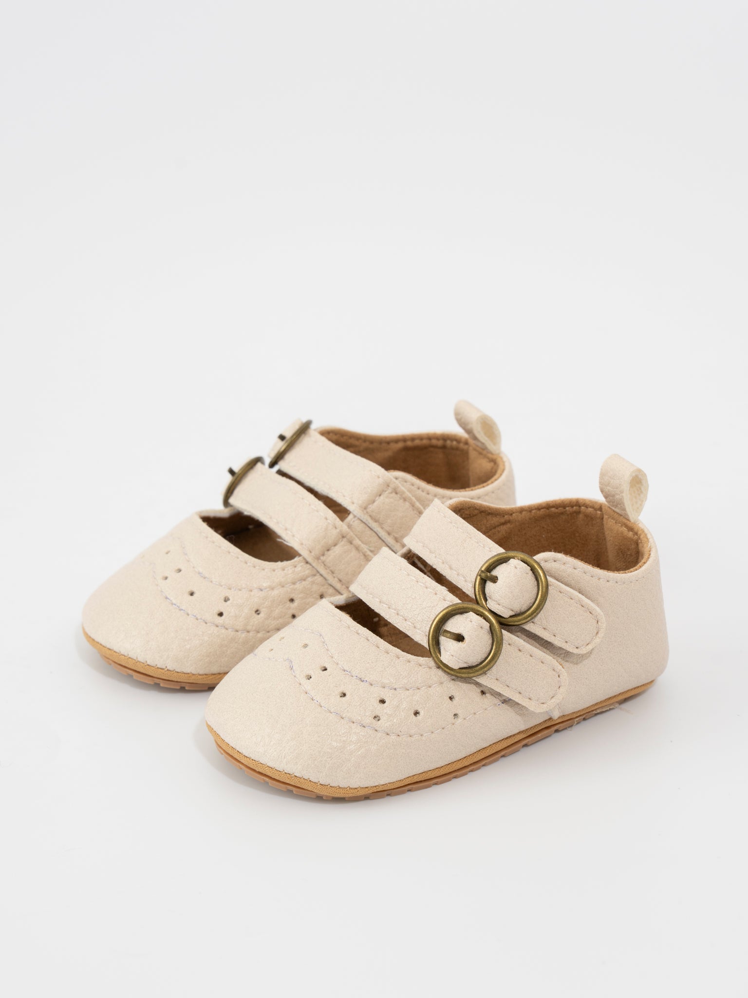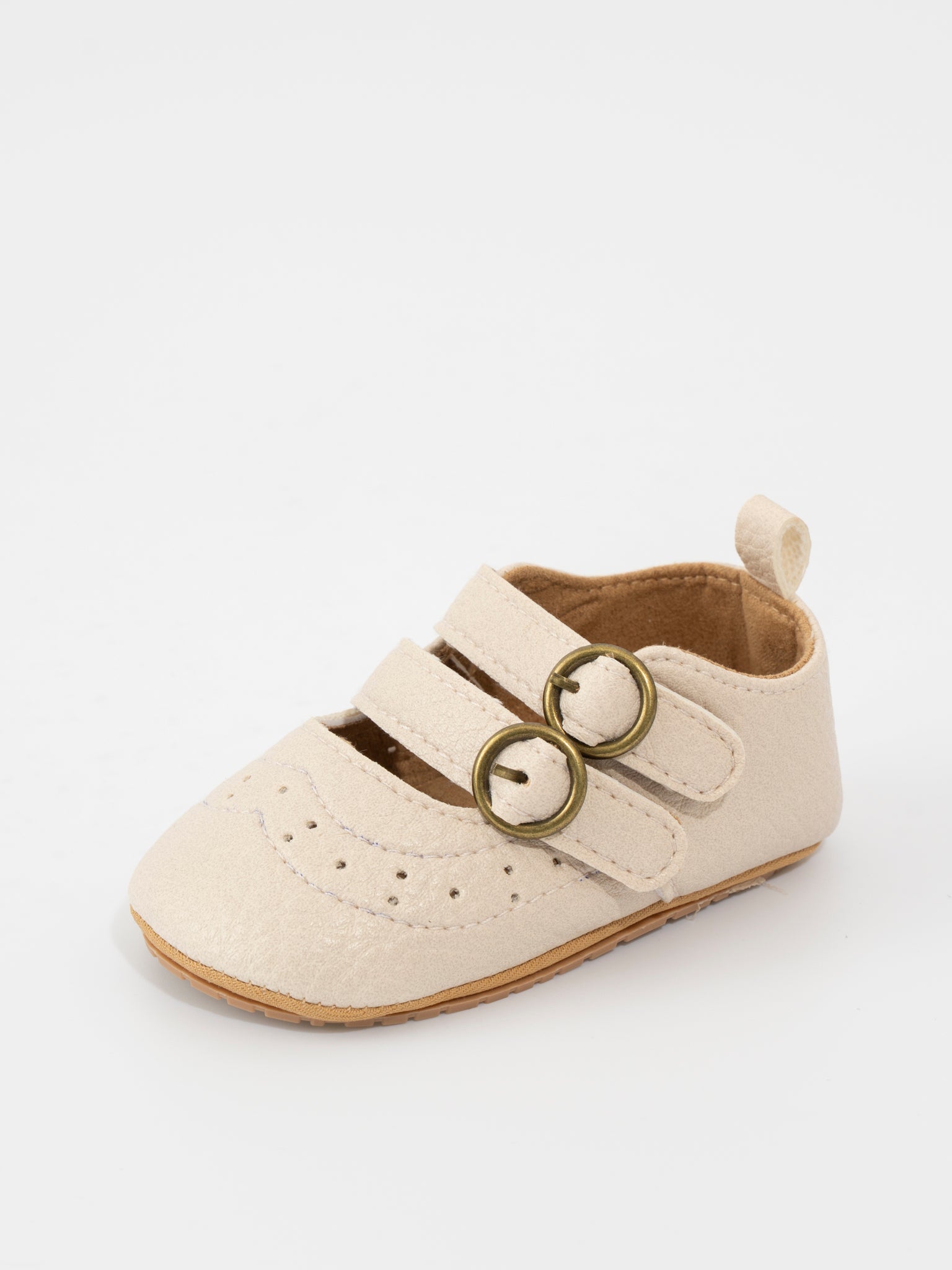 Watch your baby take her first steps in the Double Buckle Mary Jane Baby Shoe! This fashionable pair from Marie Nicole Clothing features a buckle style with easy-to-use velcro double straps that will stay snug on her feet when she plays. Cute and comfy, these will look perfect with any casual or formal outfit!