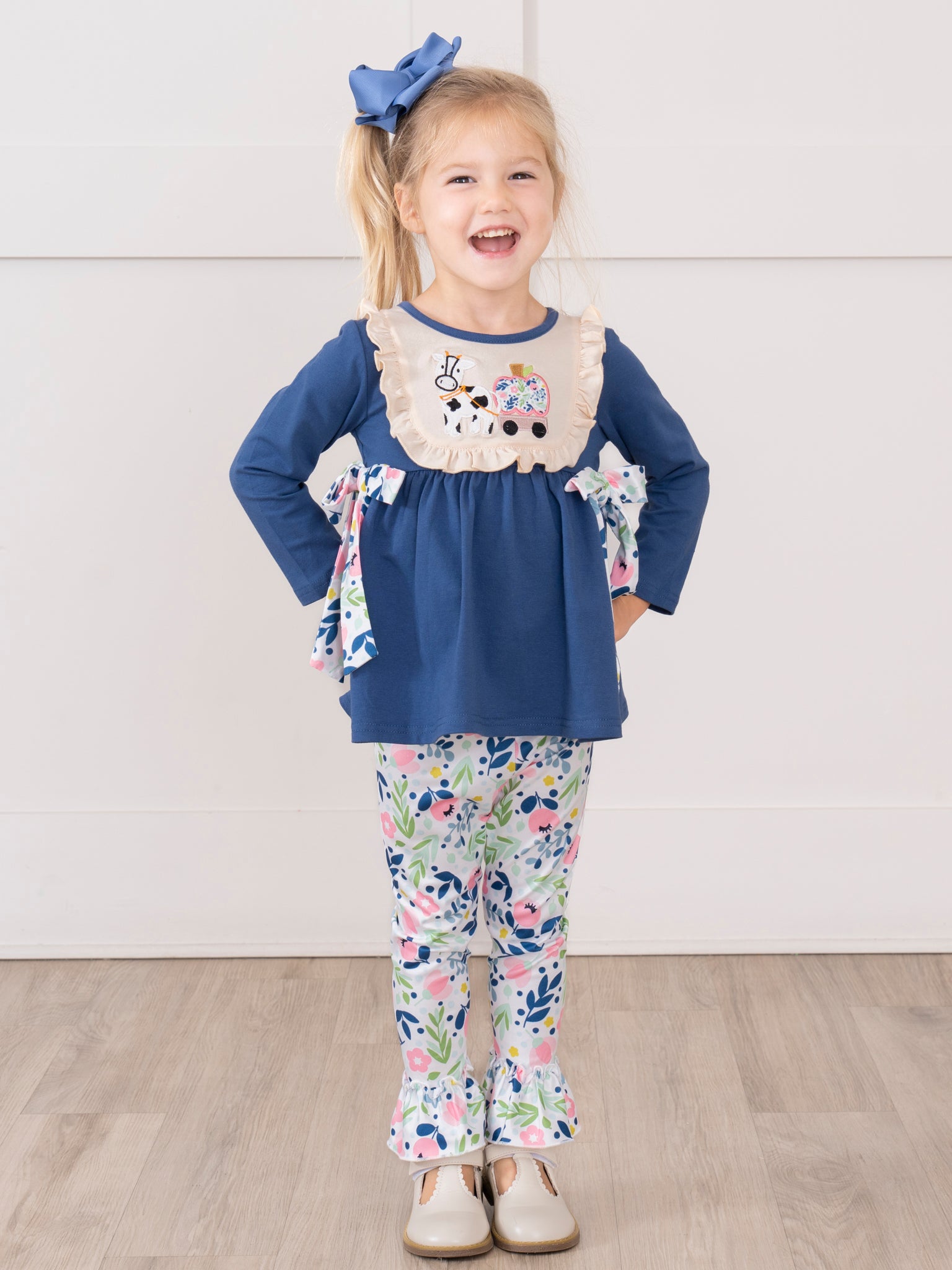 Farm Friends Pumpkin Ride Embroidered Ruffle Outfit