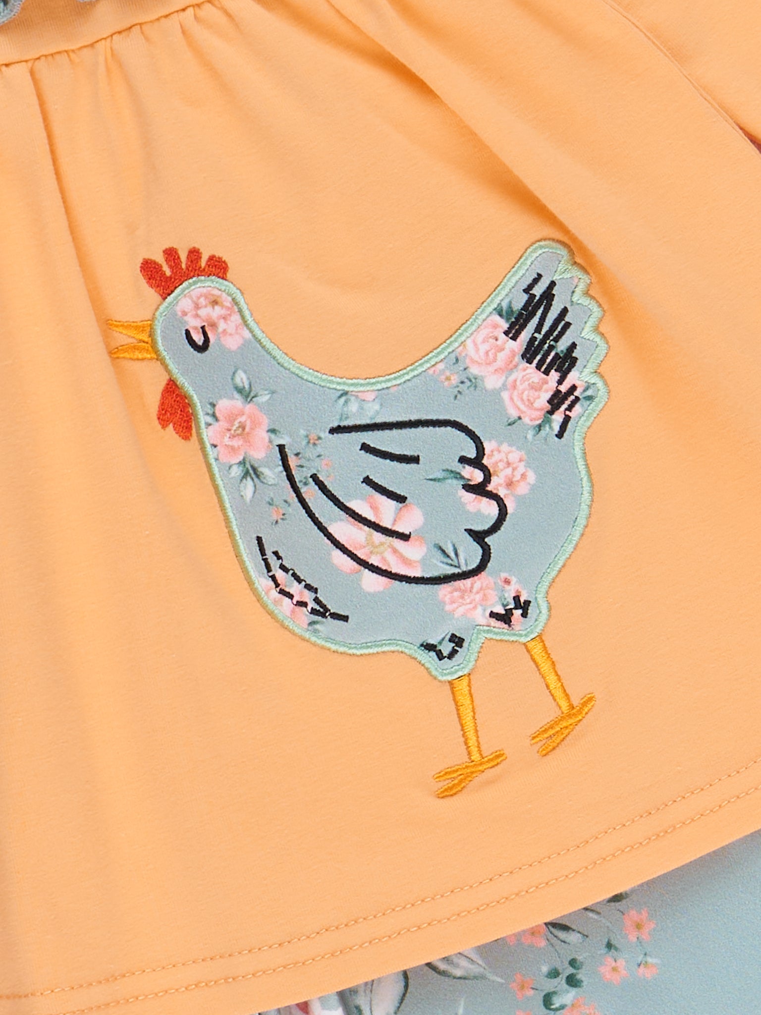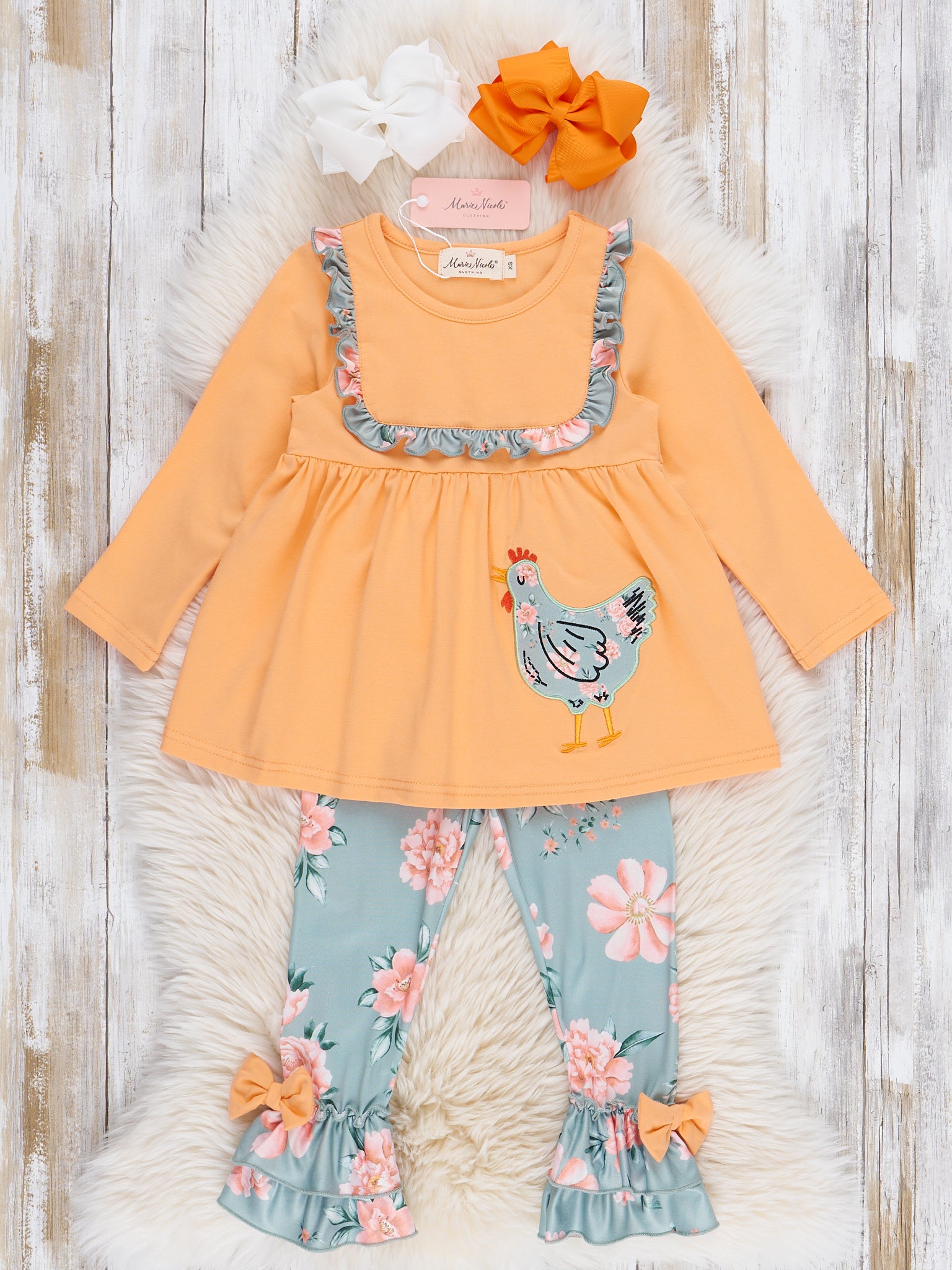 The Farmhouse Floral Chick Outfit is a charming and playful set perfect for little ones who love all things farm and flowers. Featuring a sweet floral print paired with adorable chick embroidery, this outfit from Marie Nicole Clothing blends rustic charm with everyday comfort. Soft, breathable, and easy to wear, it’s ideal for playdates, family outings, or any day she wants to show off her farmhouse flair.