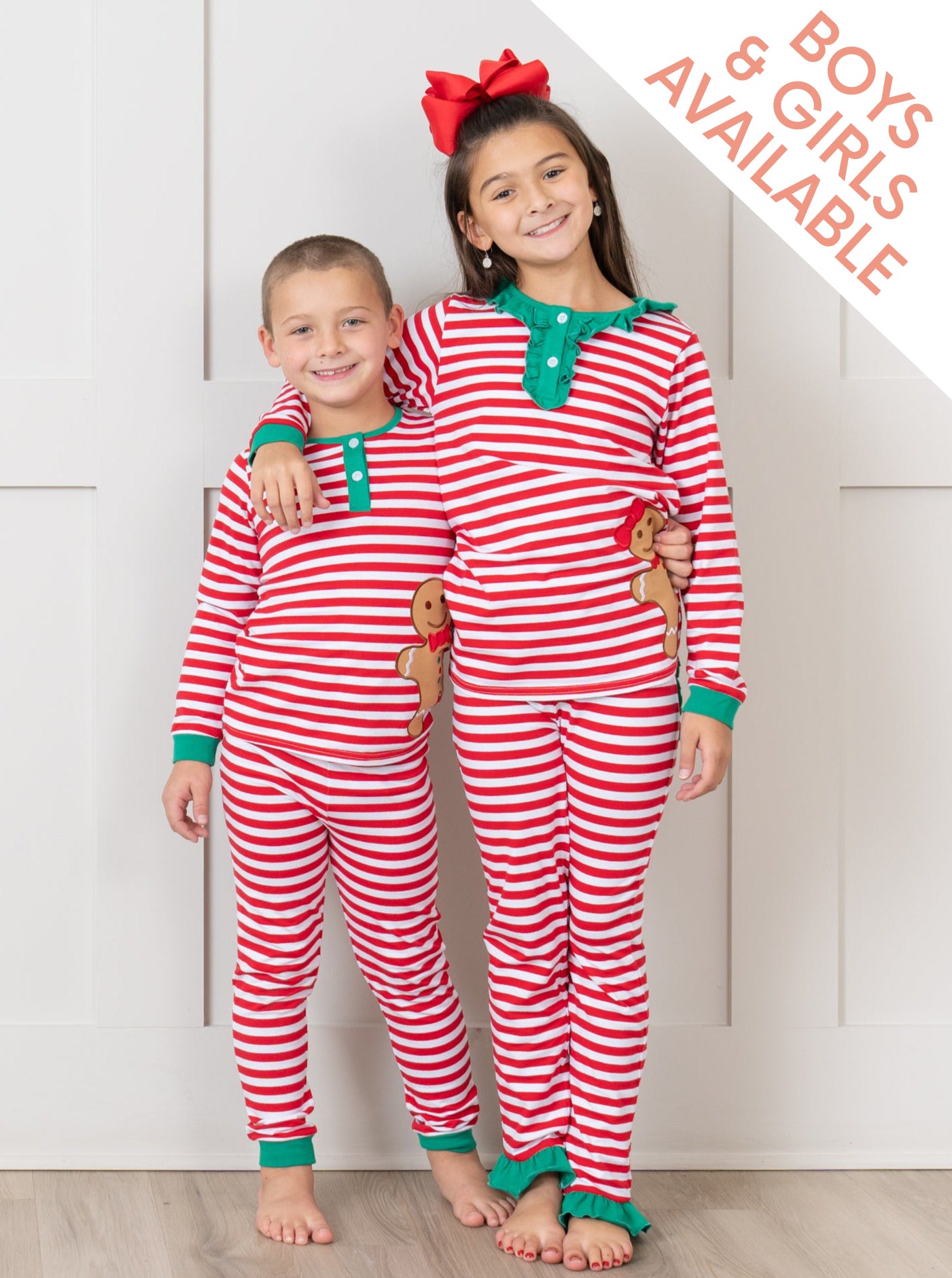 Gingerbread Dreams Striped Christmas Pajamas - Boys & Girls