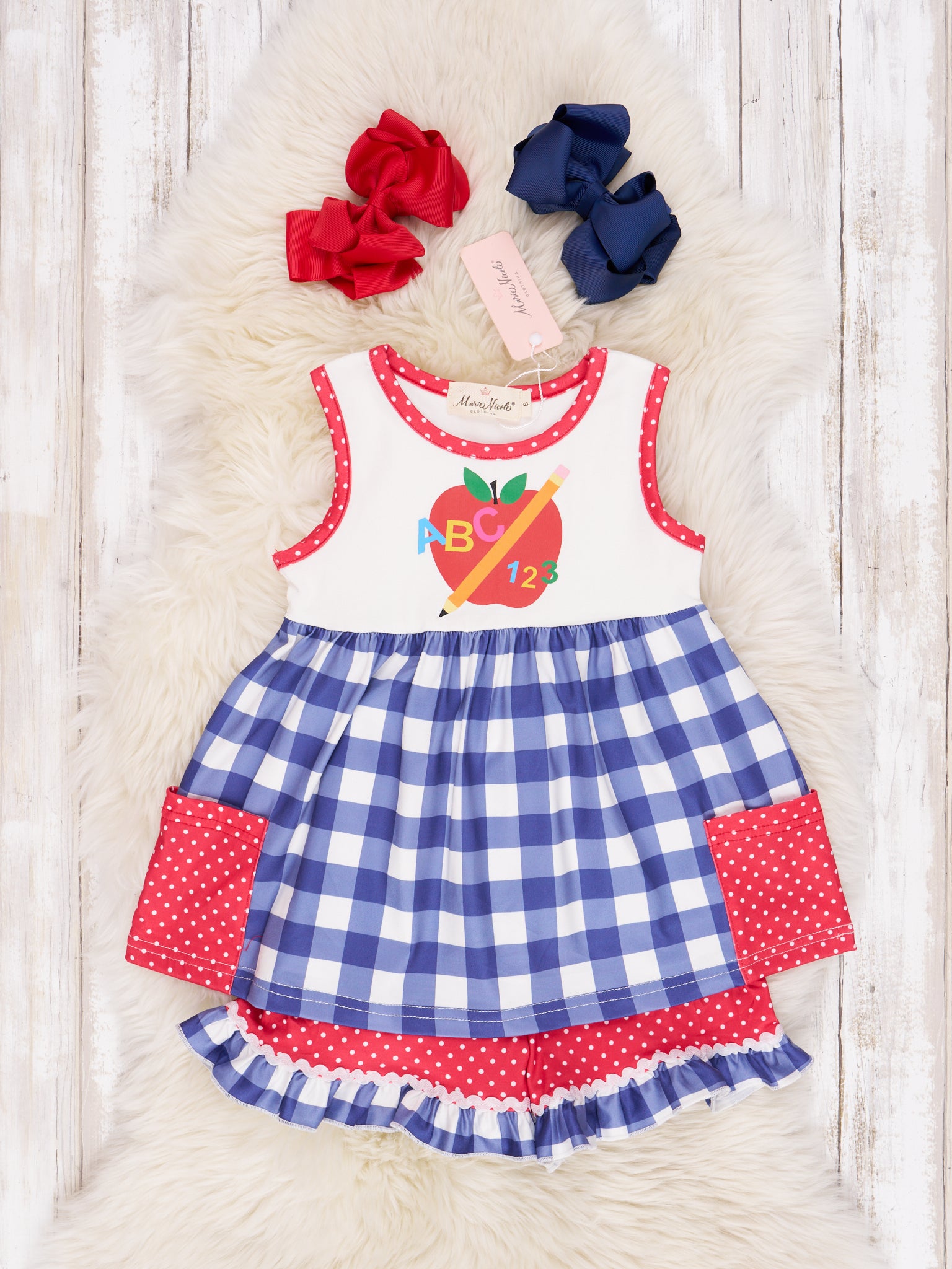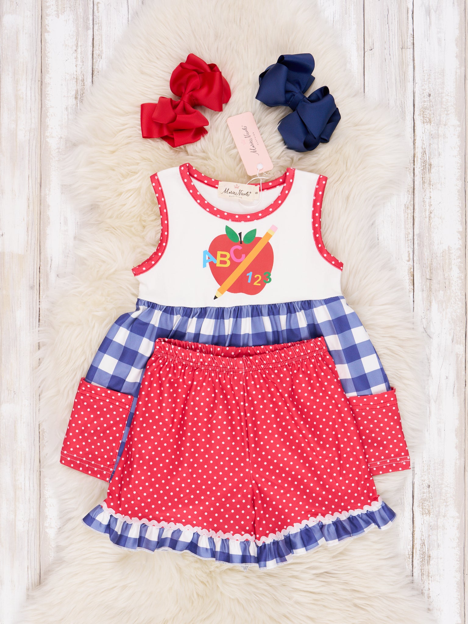This sibling set is great for your little one's matching moment! Its classic gingham pattern, adorable apple detail, and comfortable shorts with an elastic waistband make it the perfect sibling style.