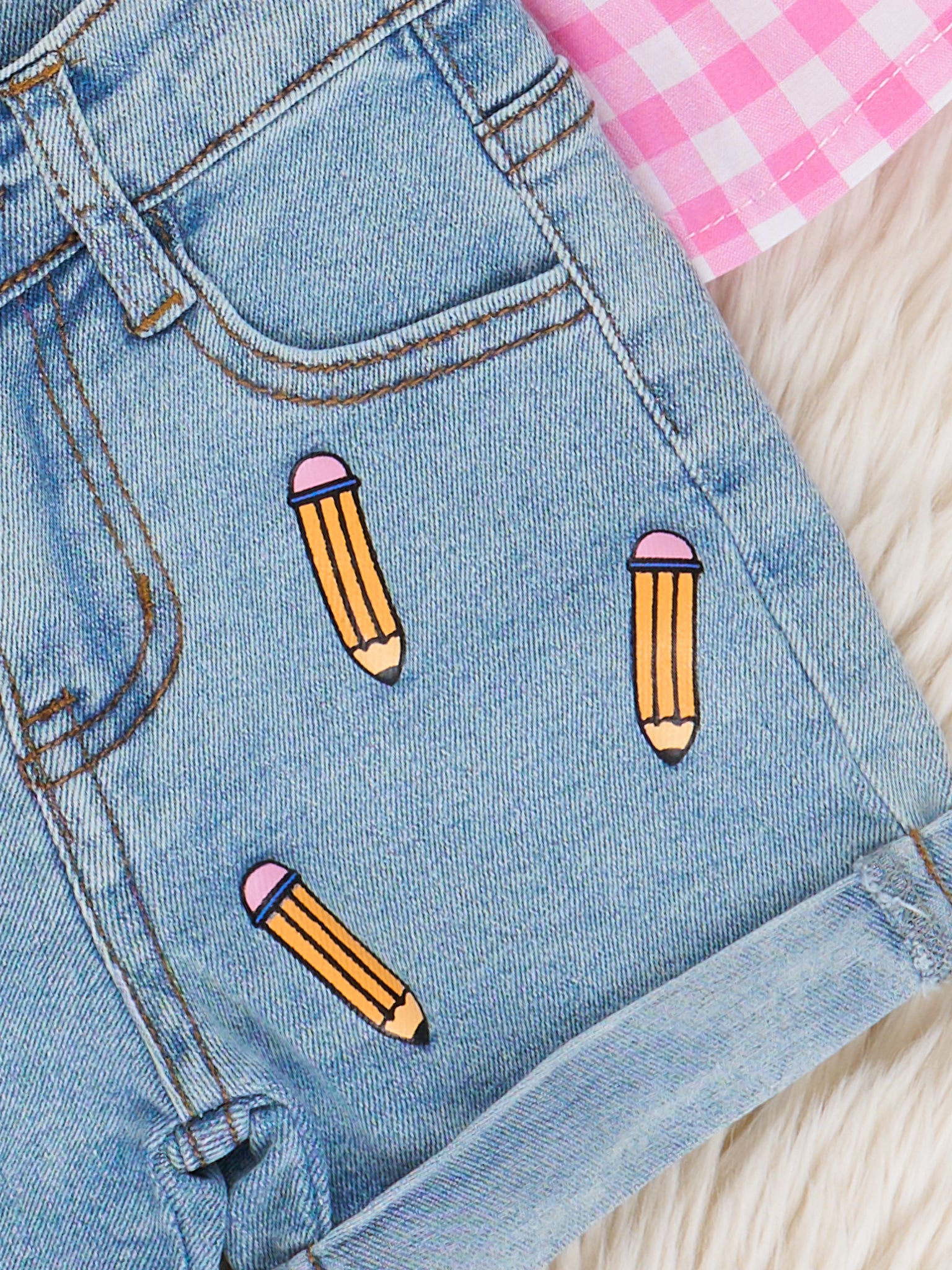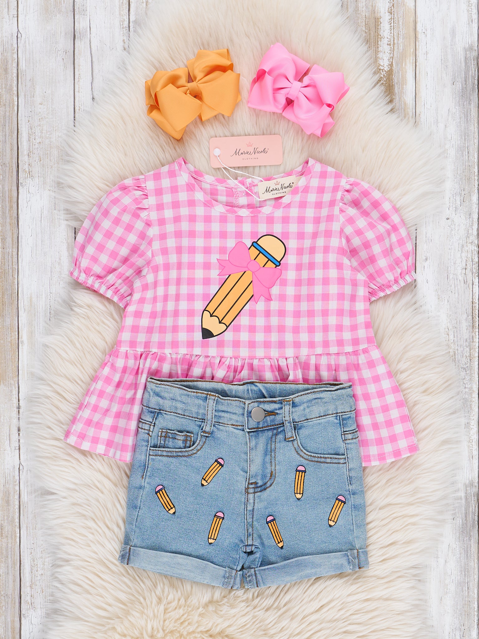 The Gingham Bow Pencil Denim Outfit is a smart and stylish choice for back-to-school days and playful afternoons. Featuring a trendy denim base paired with charming gingham bows and pencil-themed accents, this outfit from Marie Nicole Clothing strikes the perfect balance between classic and fun. Soft, durable, and made for movement, it’s ideal for classroom adventures, photo ops, or simply showing off her A+ style.