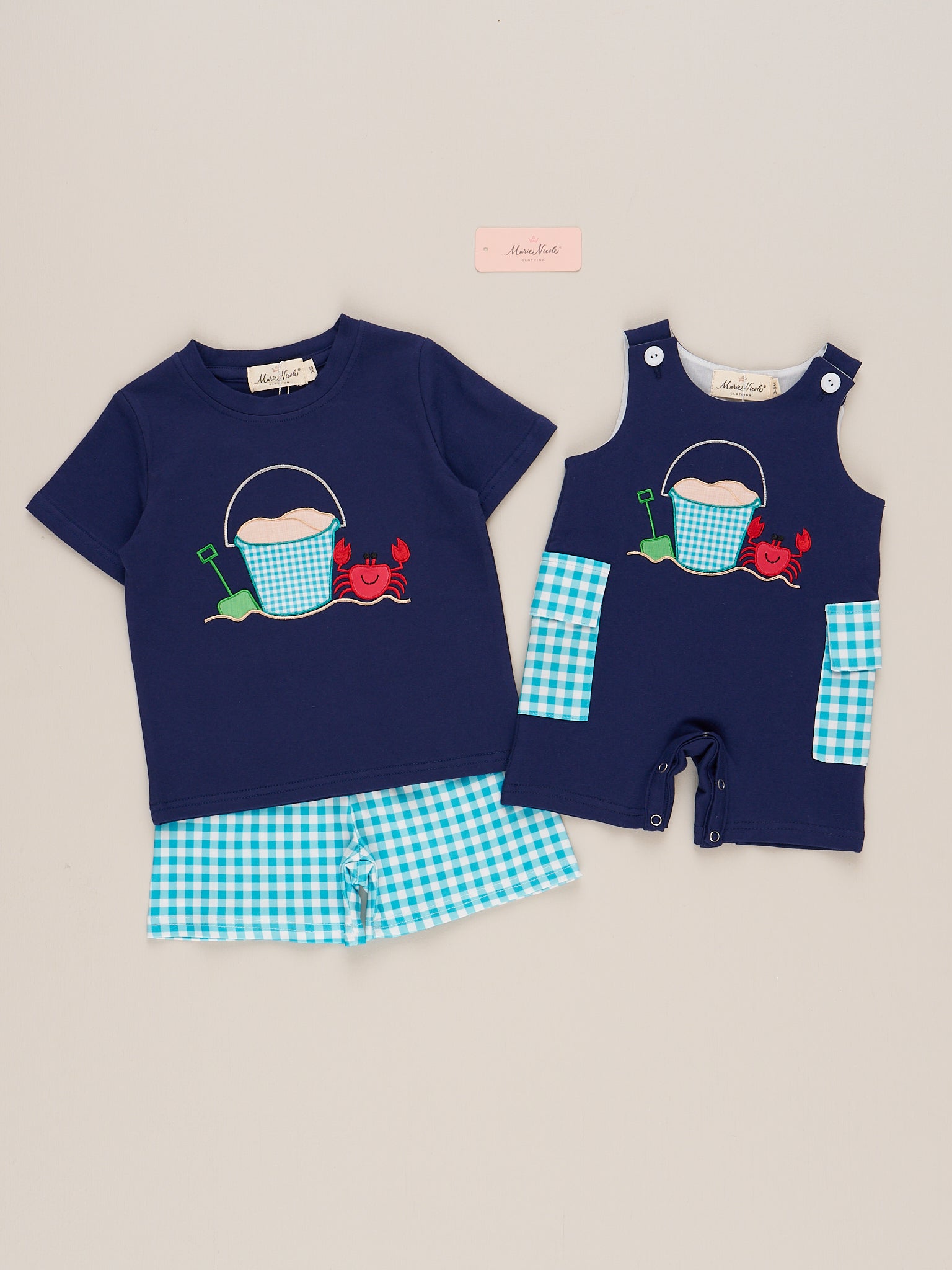 The Gingham Little Beach Boy Jonny is a seaside-ready classic with timeless charm. Featuring a breezy gingham pattern and lightweight, breathable fabric, this johnny from Marie Nicole Clothing is perfect for sunny beach days or summer strolls. With its relaxed fit and laid-back style, your little guy will stay cool and cute all season long.