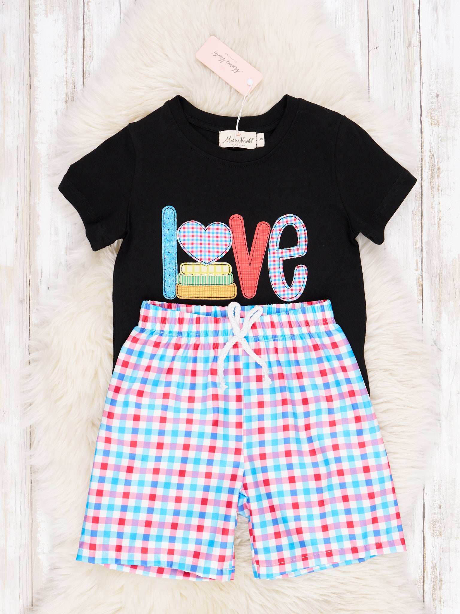 Let your little one spread the love in this stylish and comfy Gingham "Love" Book Outfit! Crafted with an elastic waistband for a perfect fit, this outfit is perfect for your trendy kid. It's sure to be a hit when they show up to school feeling like a million bucks!