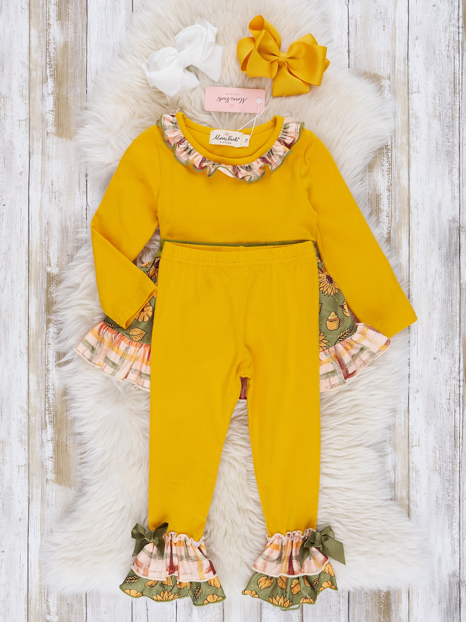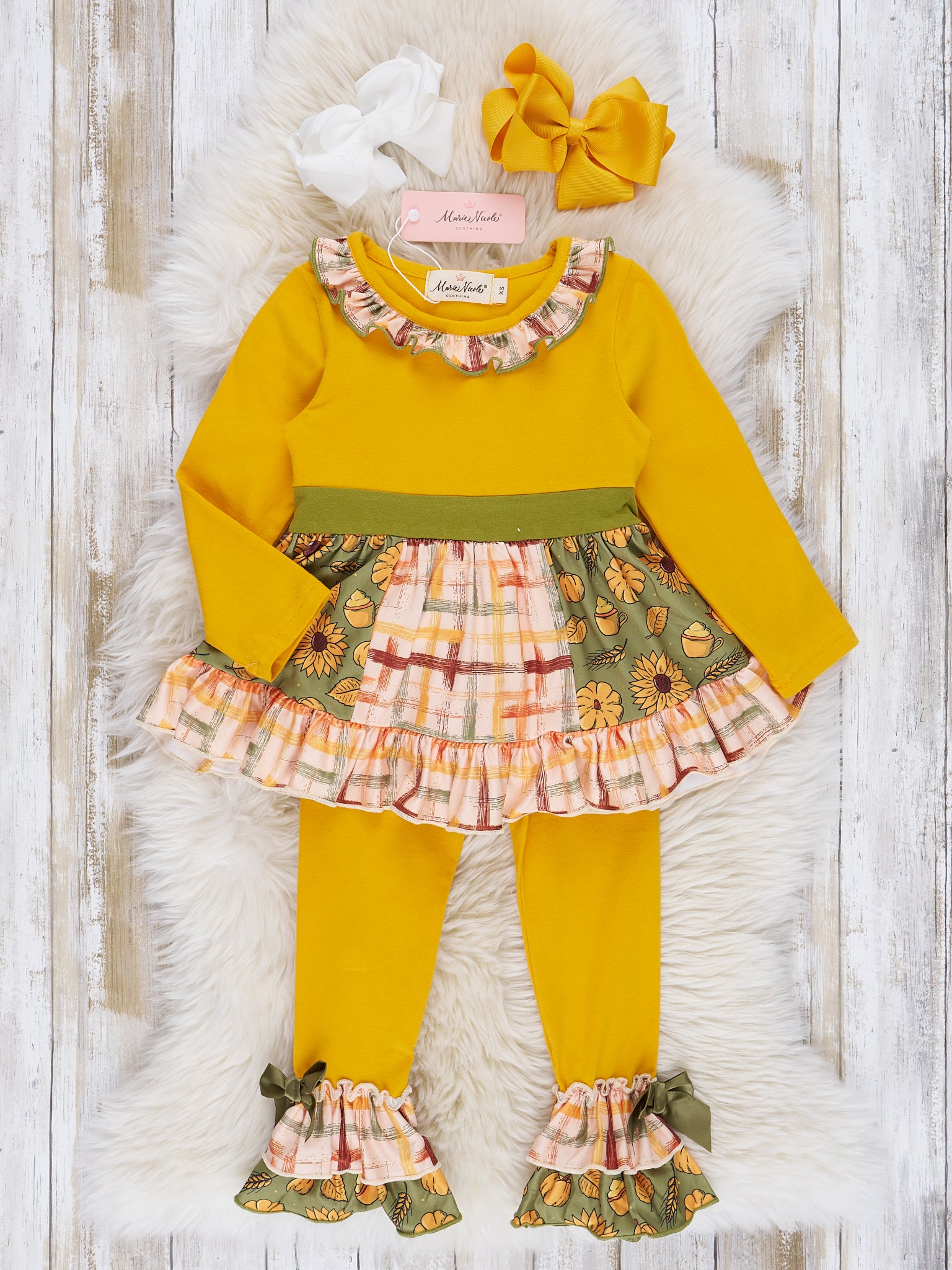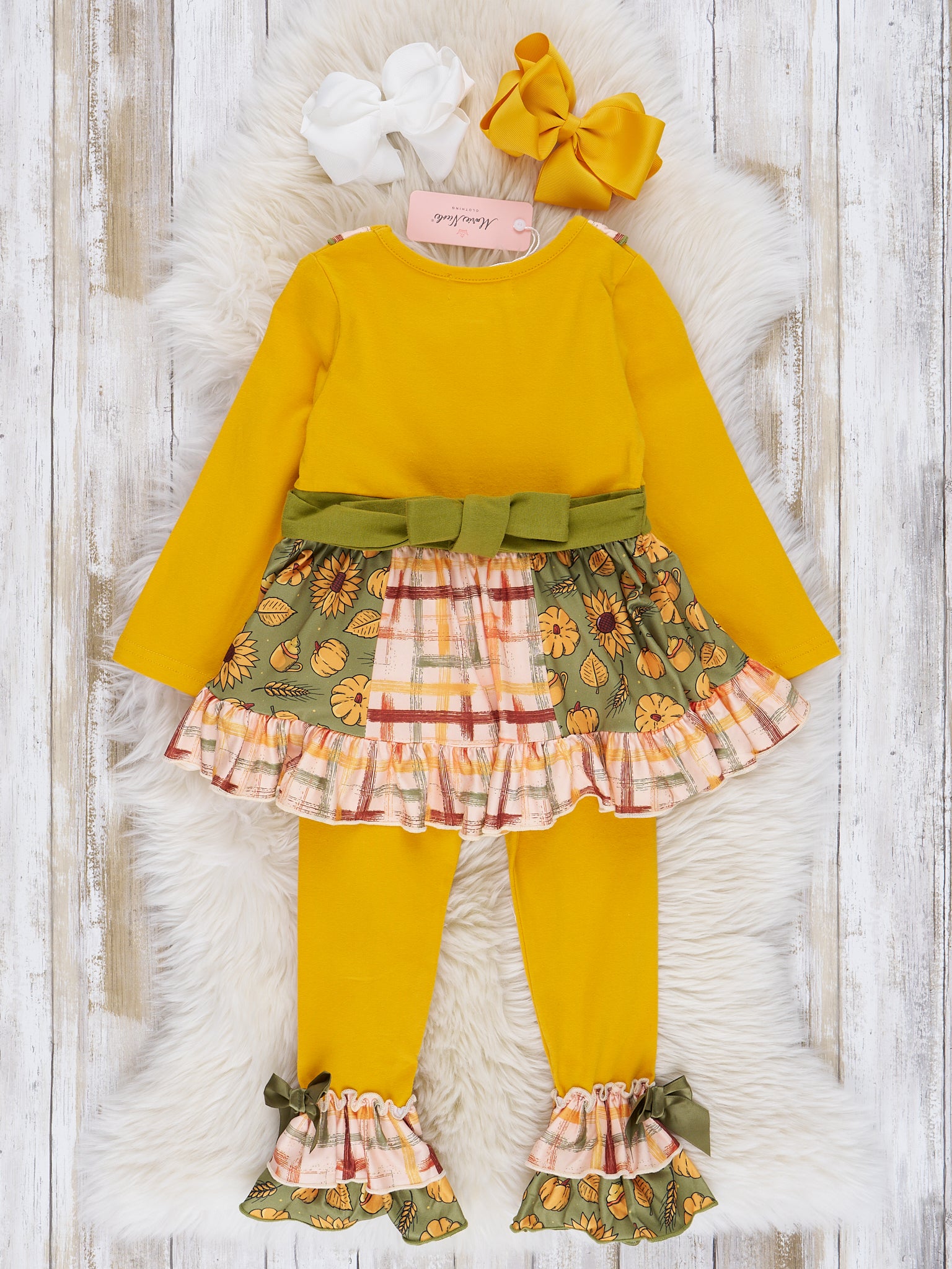 Goldenrod & Green Floral Plaid Ruffle Outfit