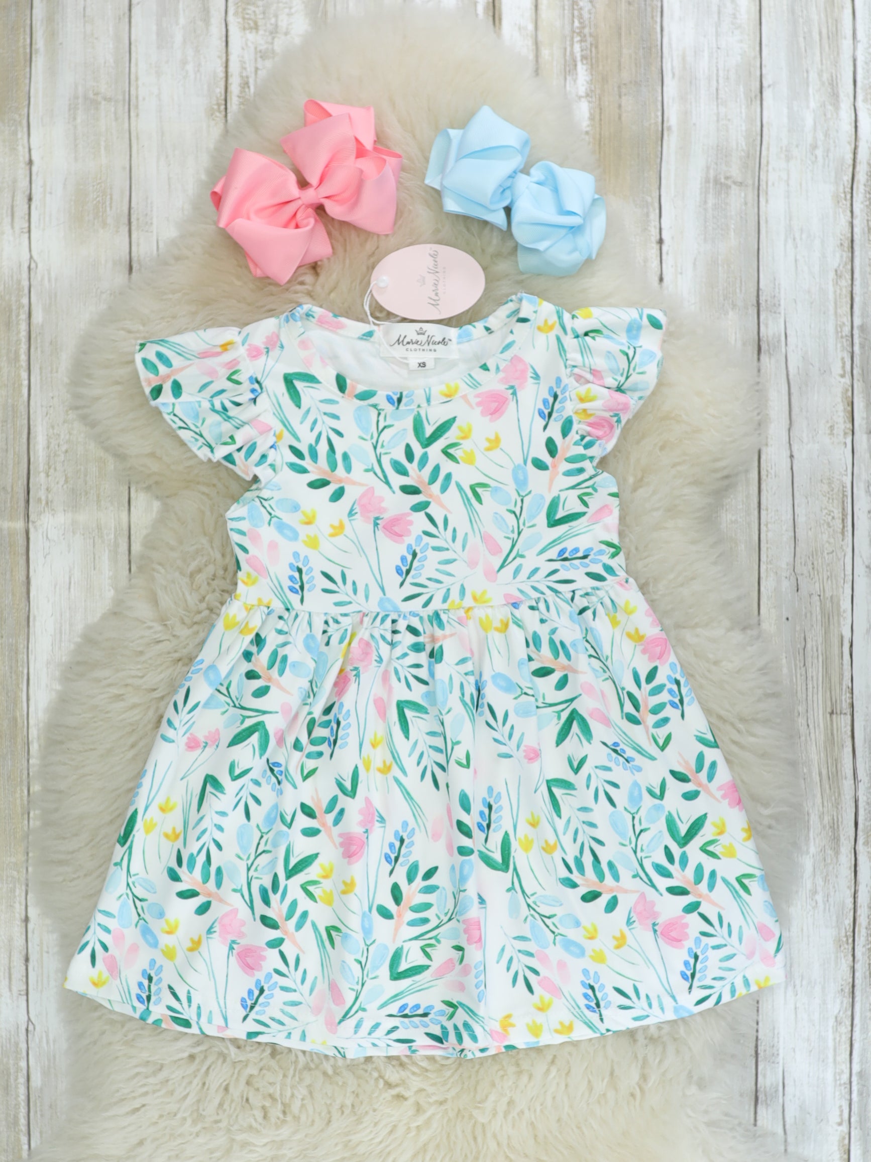 This sweet sister set is perfect for our delicate girls! We're obsessed with the dainty floral pattern and ruffled sleeves!