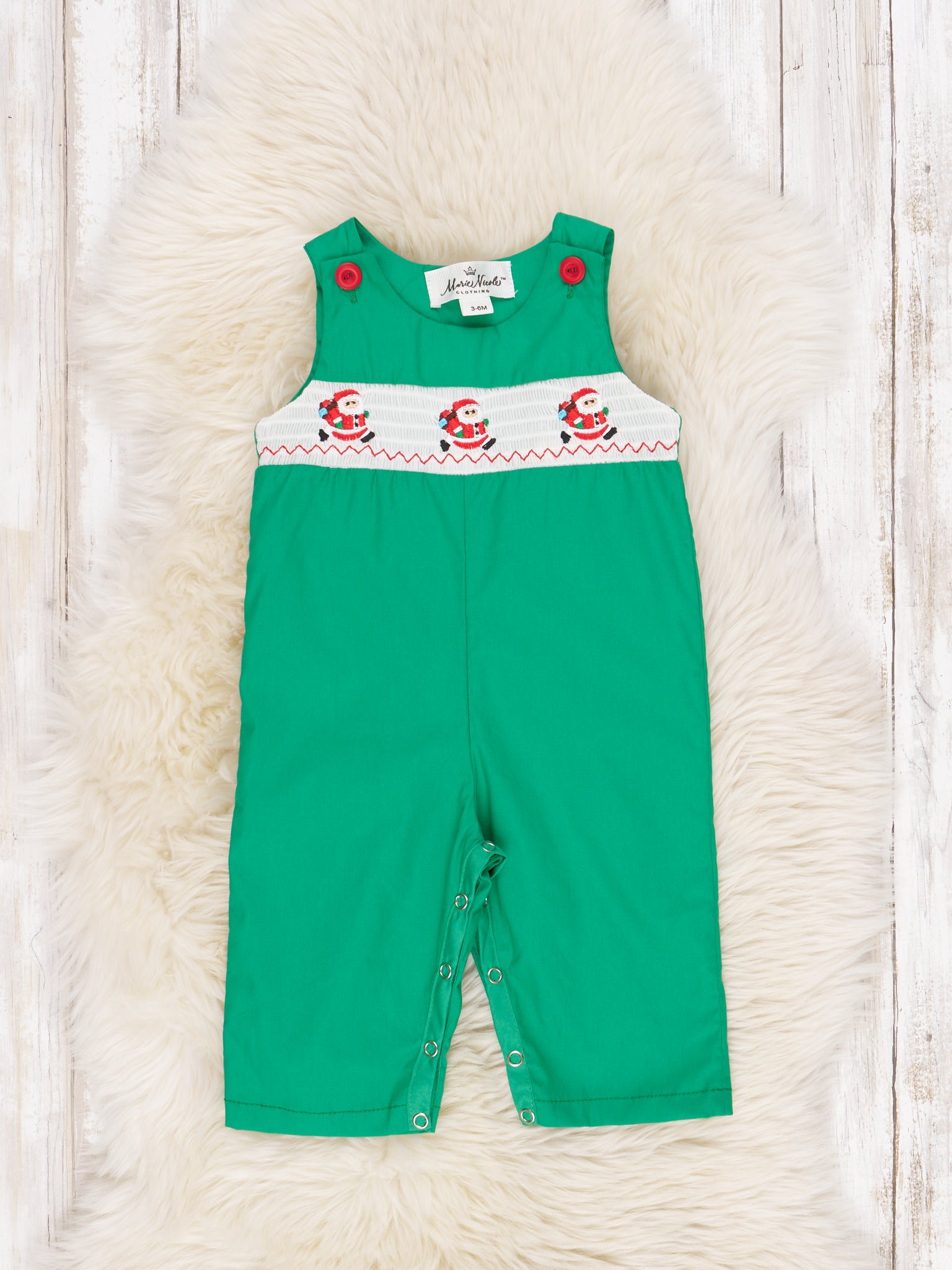 This festive Green Santa Smocked Johnny is an adorable way for your little one to get into the holiday spirit! Let your boy join in the fun with these charming embroidered Santa designs and functioning button straps. He'll be ready to deck the halls – and his adorable johnny! – in style.