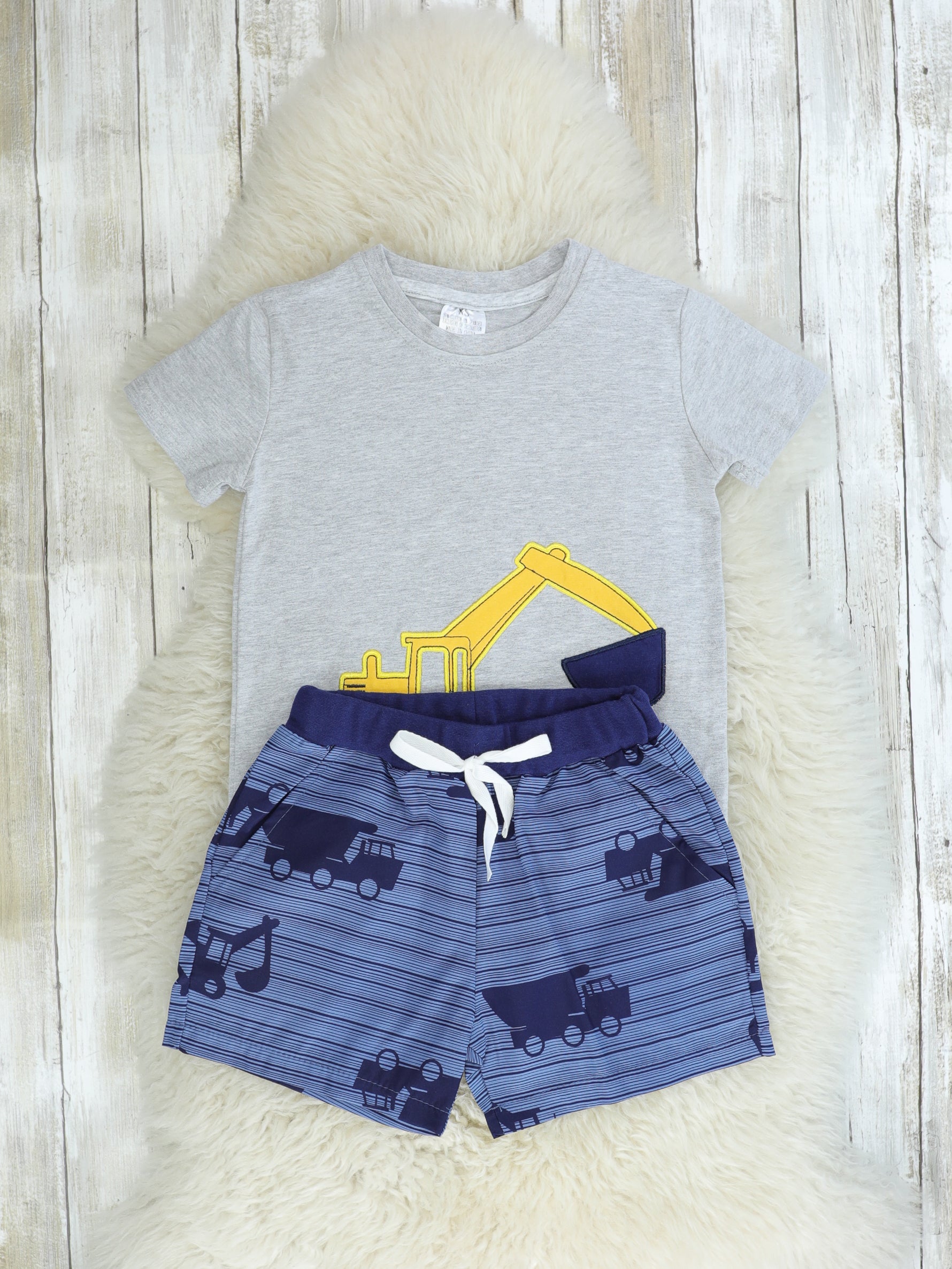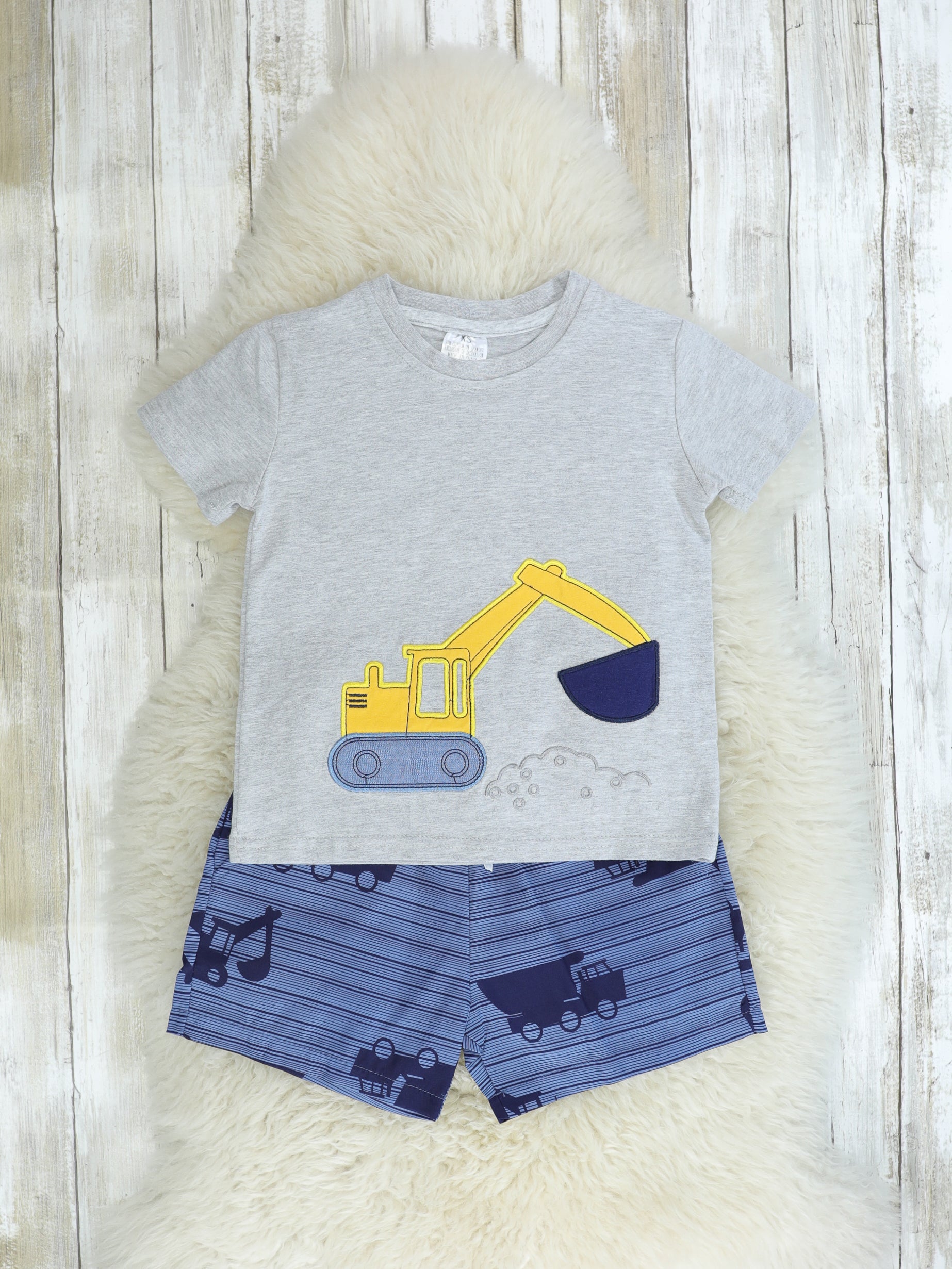 We'll take all of the construction crew in this outfit featuring a dozer and dump truck!