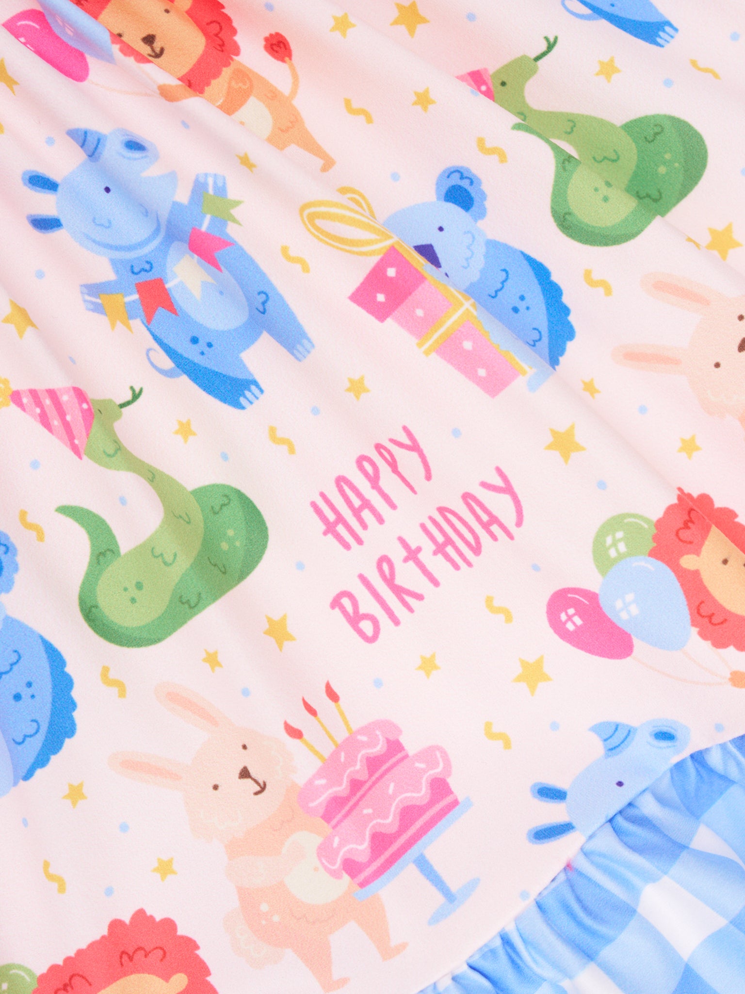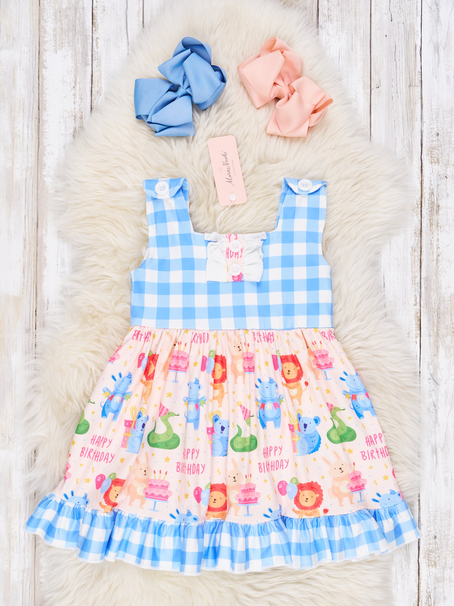 Make sure your little ones are dressed to impress for the next birthday outing with this sweet gingham sister set! With its colorful "Happy Birthday" print featuring lively animals, and ruffle details, this dress will have your kids celebrating every special occasion in style. Ready, set, party!