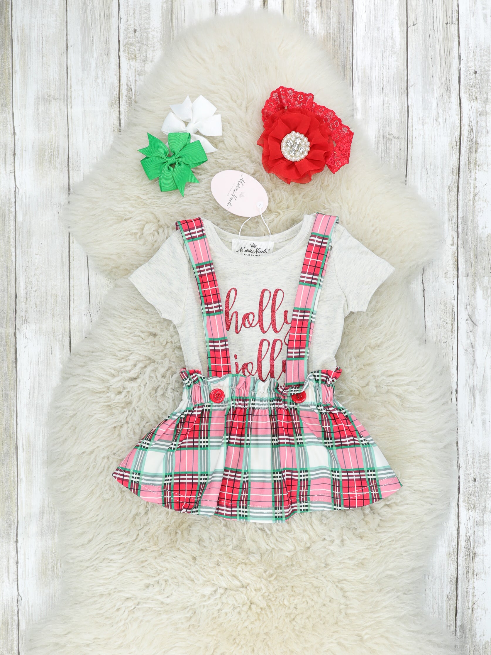 "Holly Jolly" Plaid Onesie Outfit