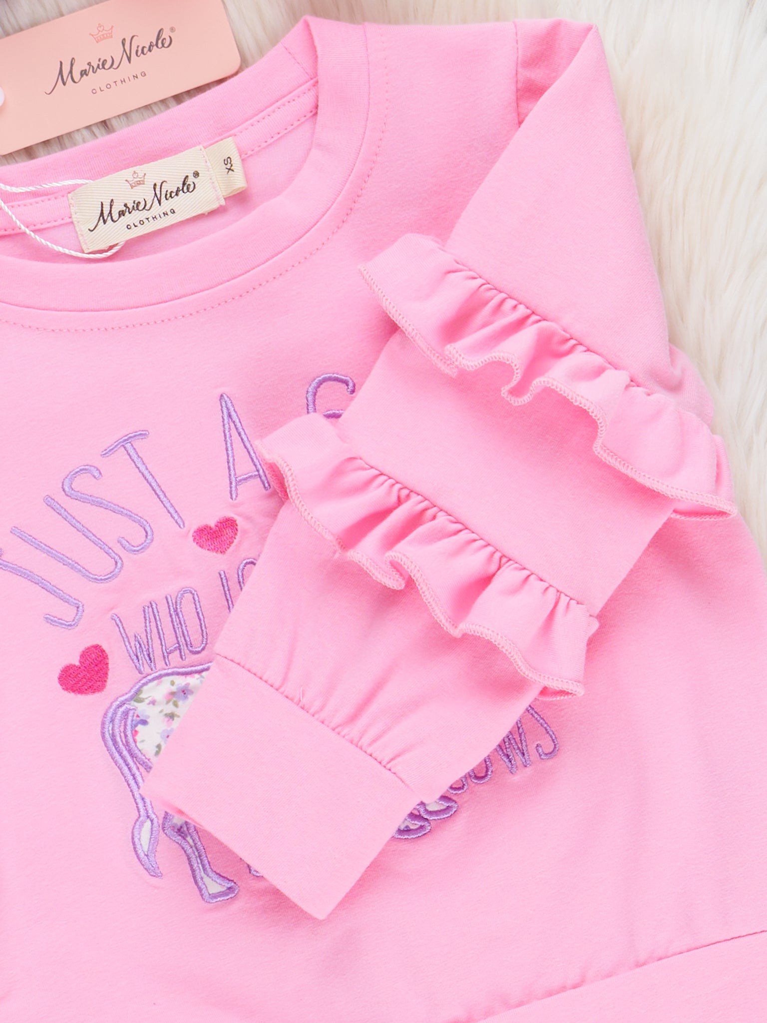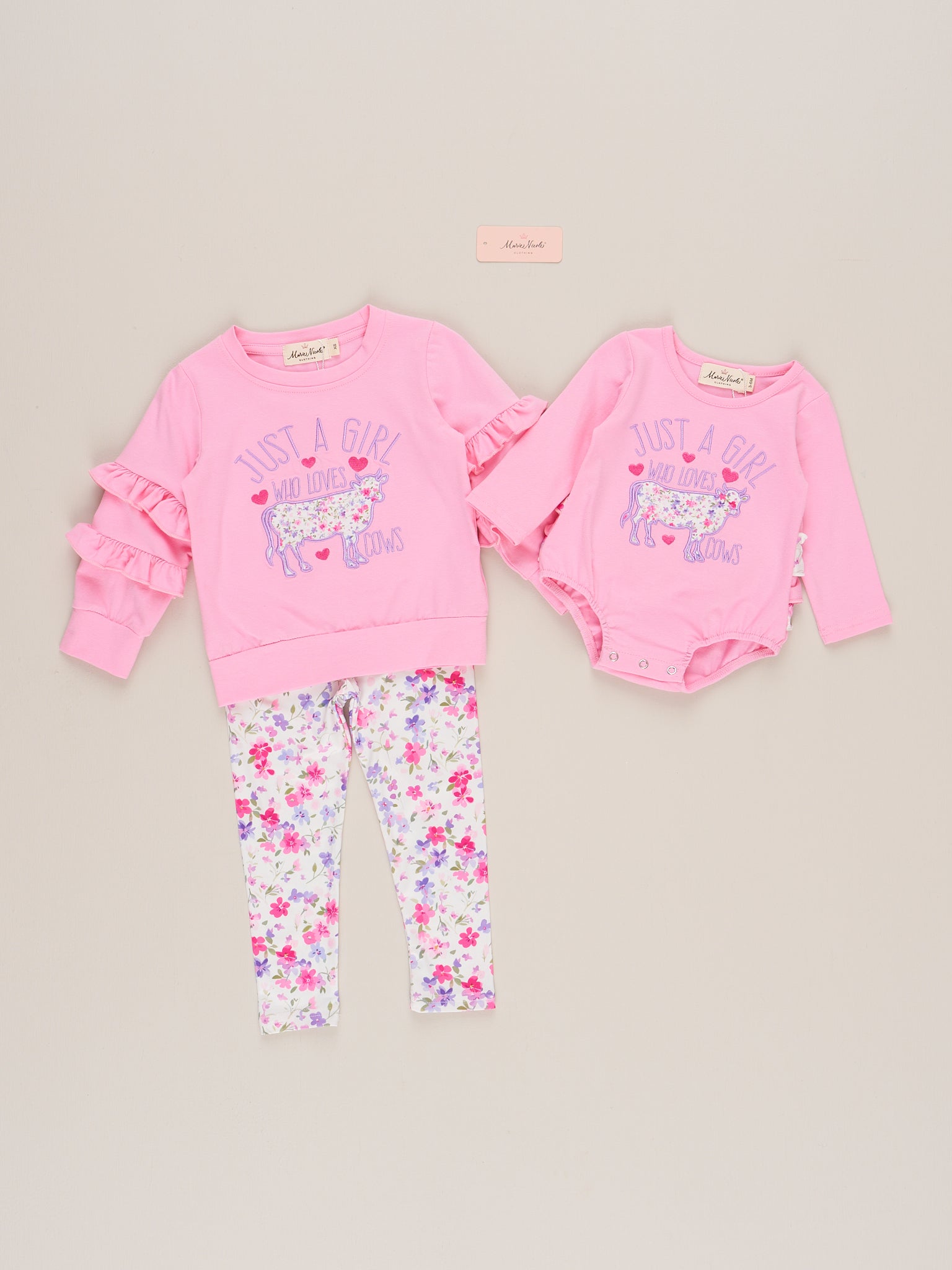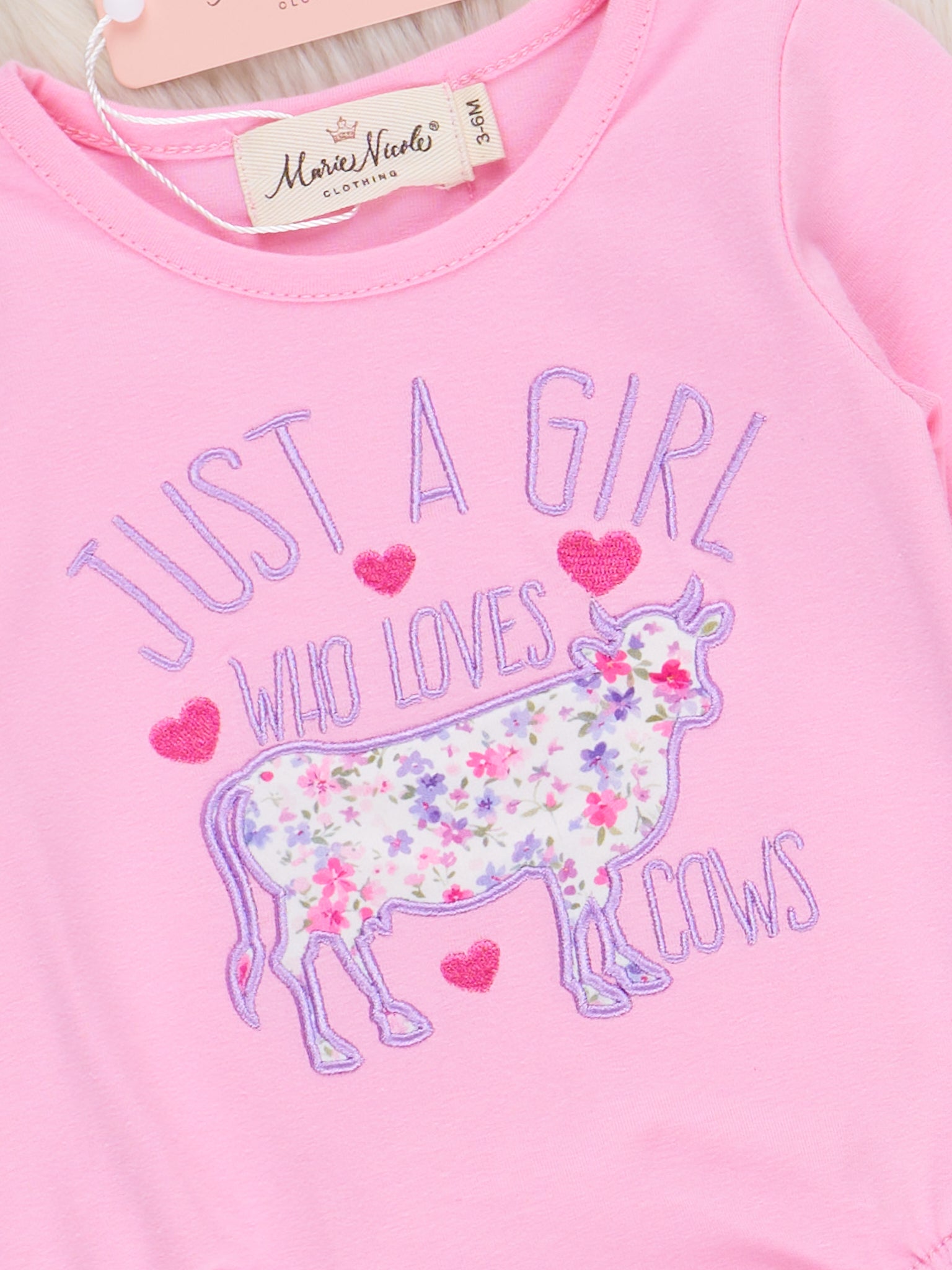 The "Just a Girl Who Loves Cows" Outfit is a playful and adorable piece for your little farm-loving cutie. Featuring a charming cow-themed design and sweet ruffle accents, this outfit from Marie Nicole Clothing is full of personality and comfort. Made from soft, breathable fabric, it’s perfect for sunny days, petting zoos, or simply showing off her love for all things moo!