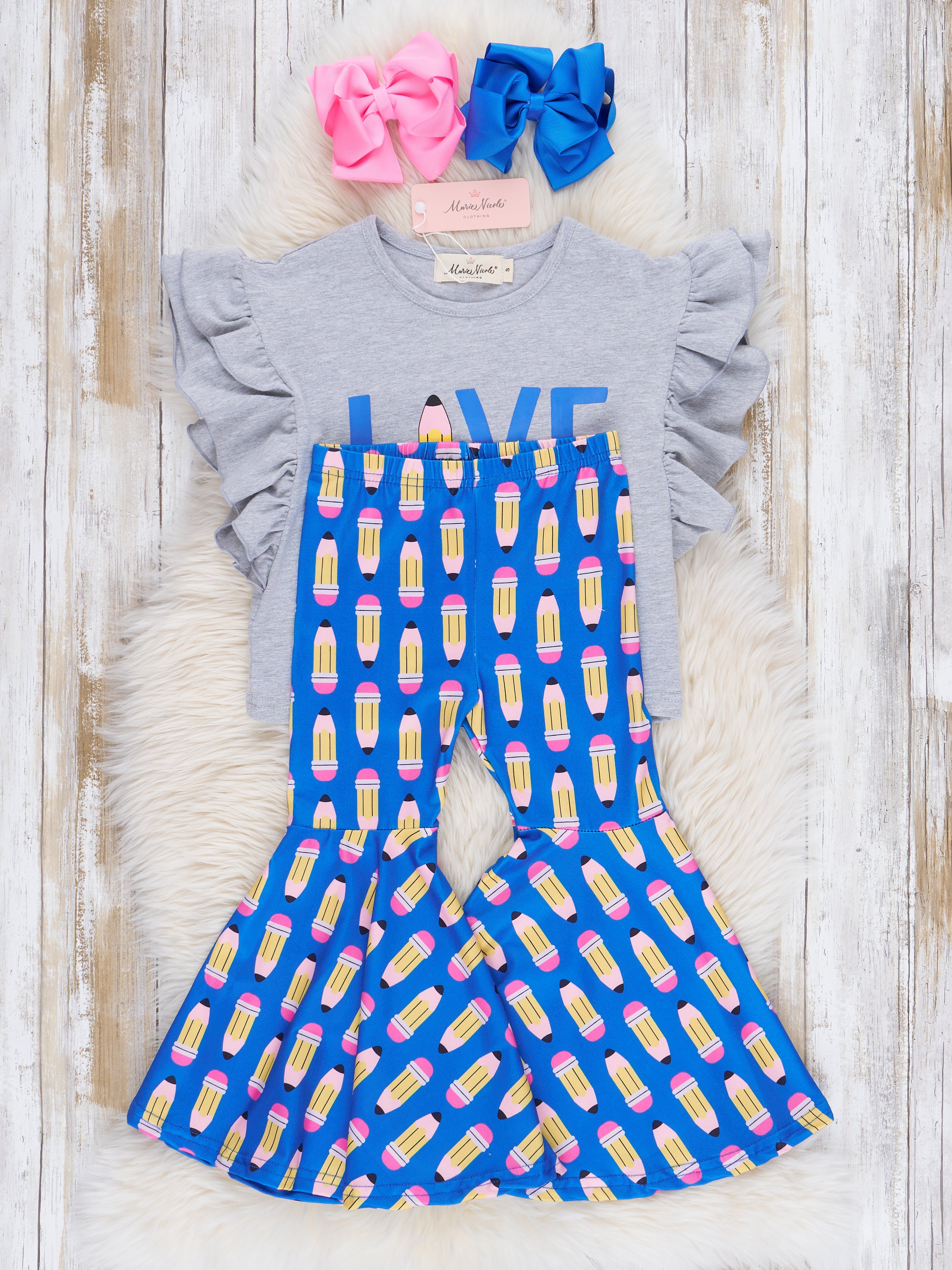 "LOVE" Pencil Ruffle Bell Bottom Outfit