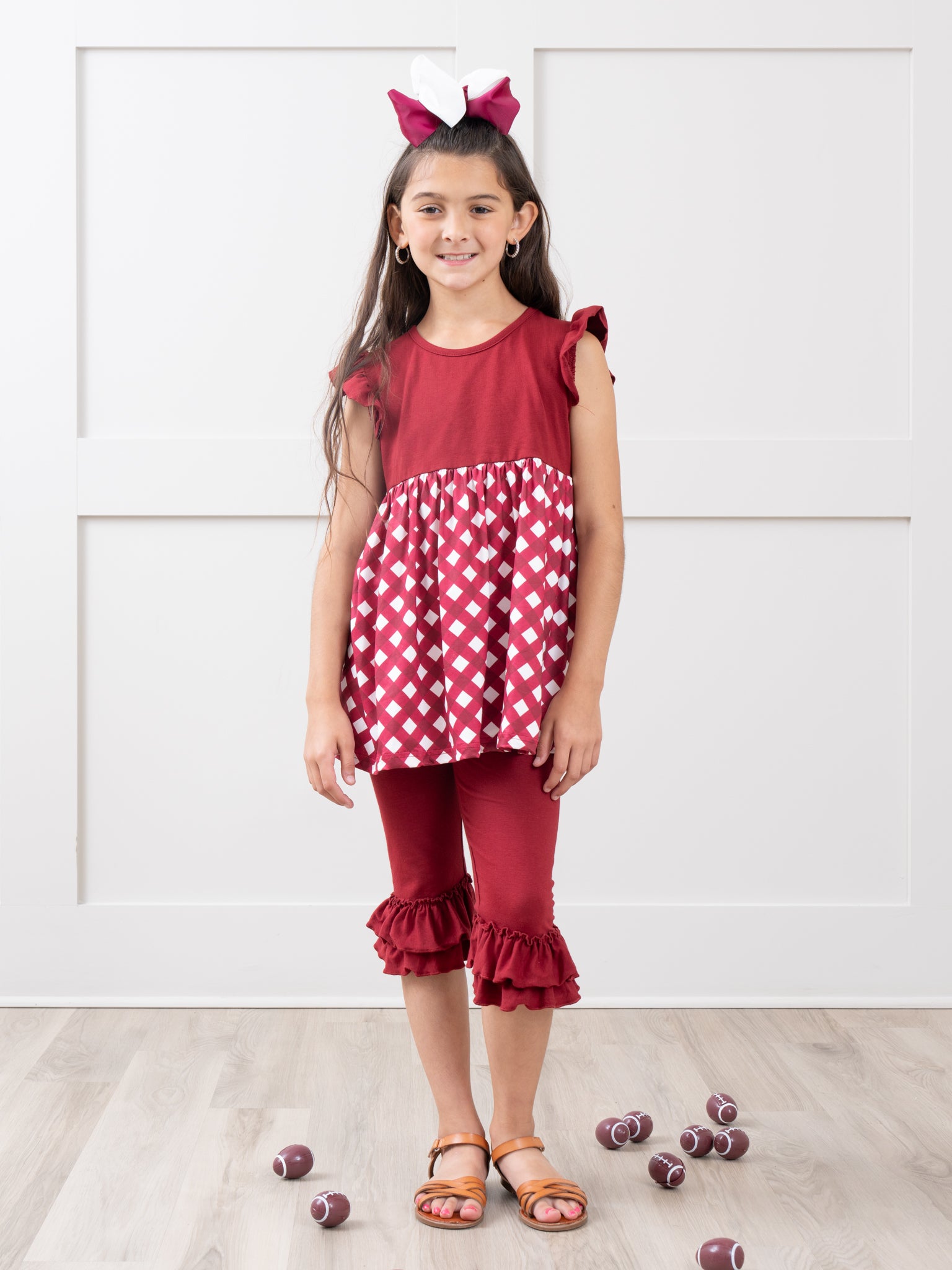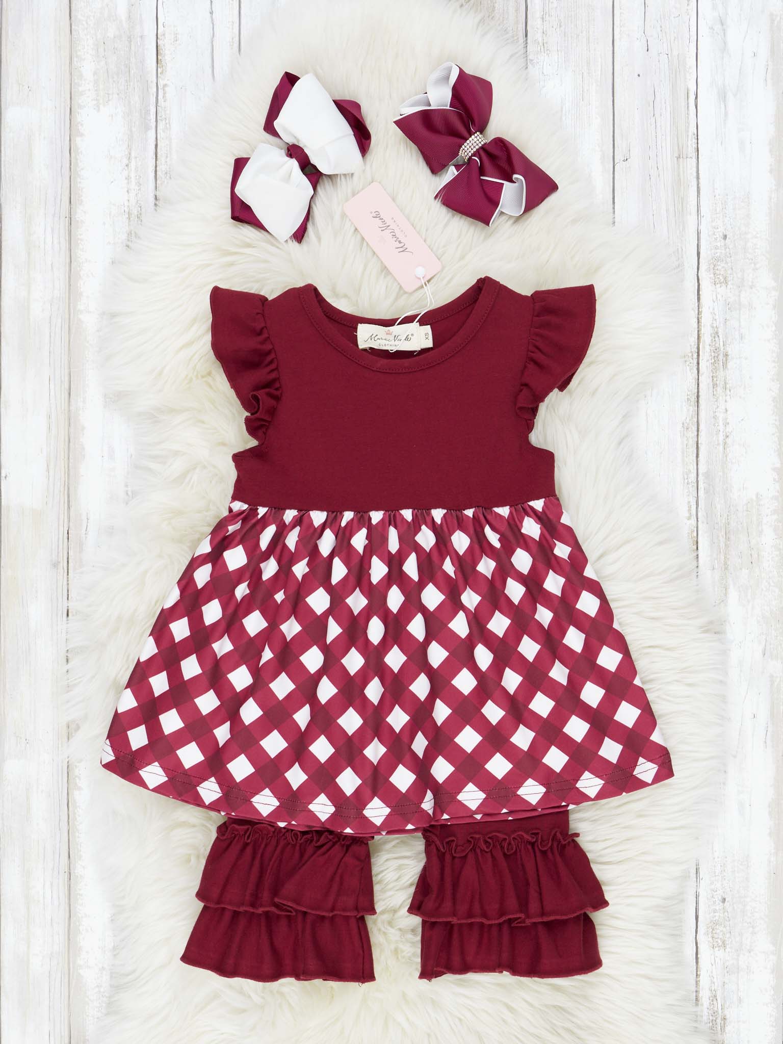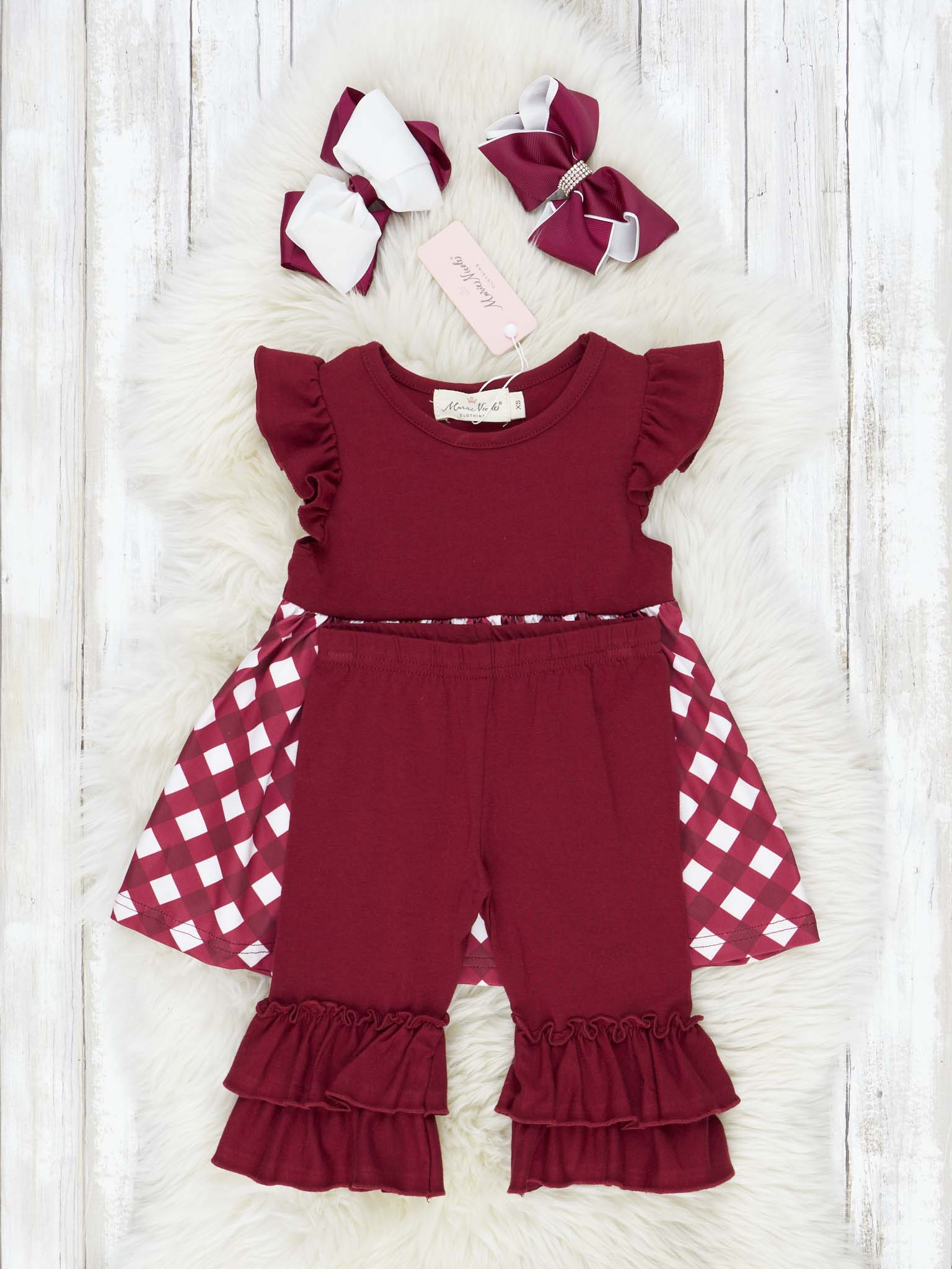 Maroon & White Gingham Ruffle Outfit