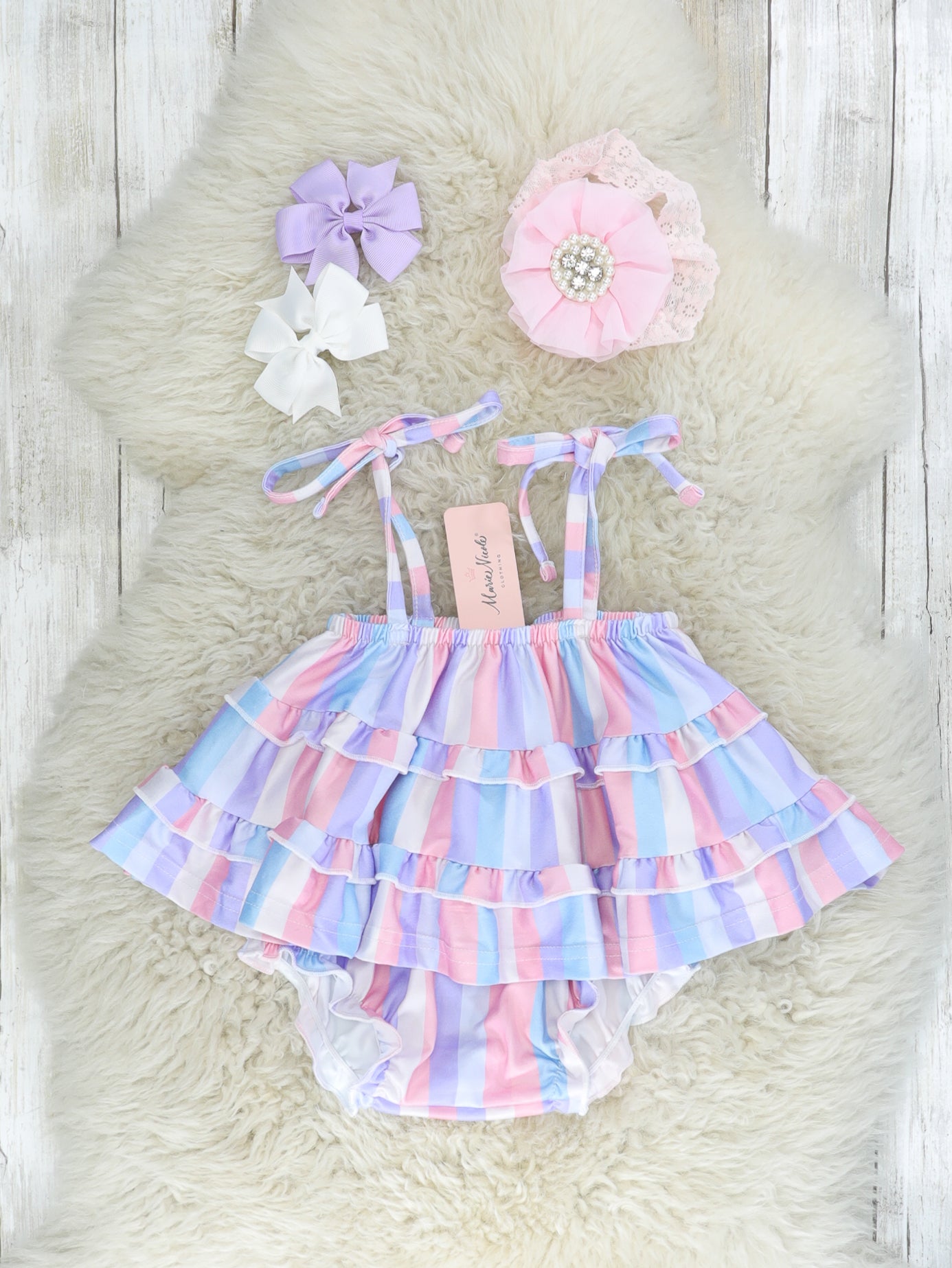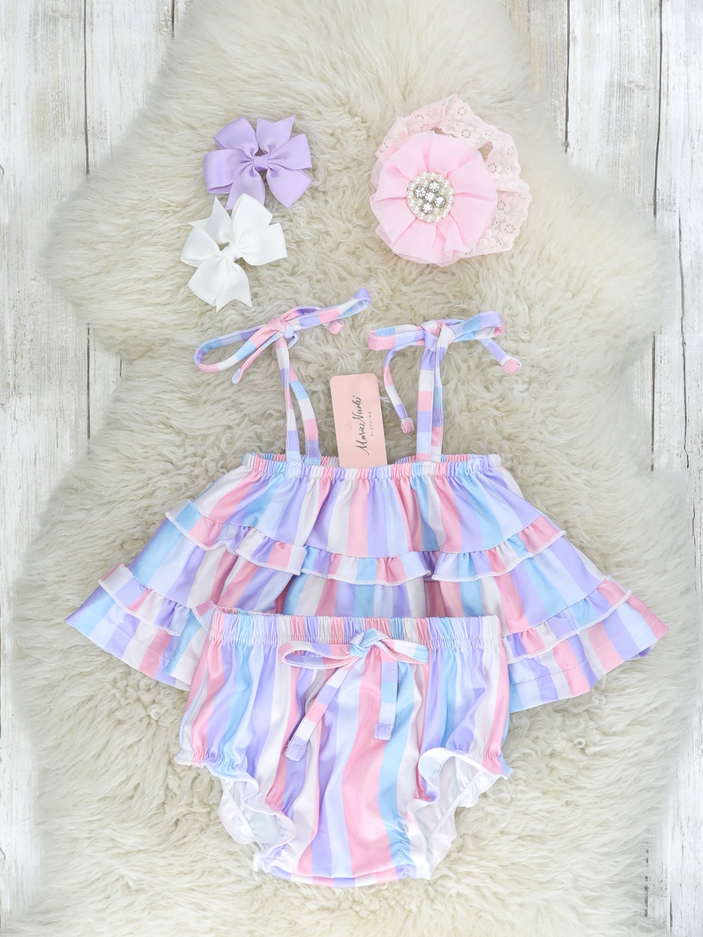 Mauve & Lavender Striped Tiered Tie Top & Bloomers Outfit