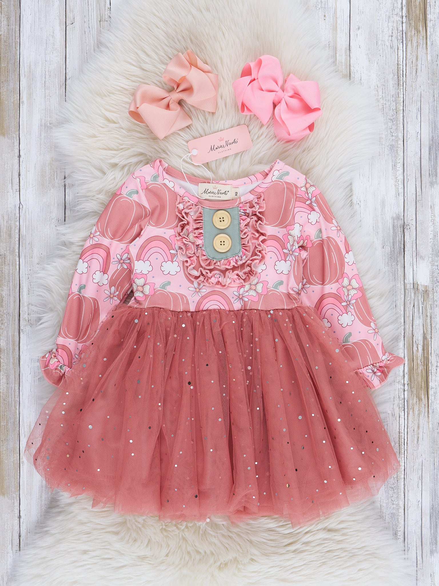Mauve Rainbows & Pumpkins Sparkle Tulle Dress