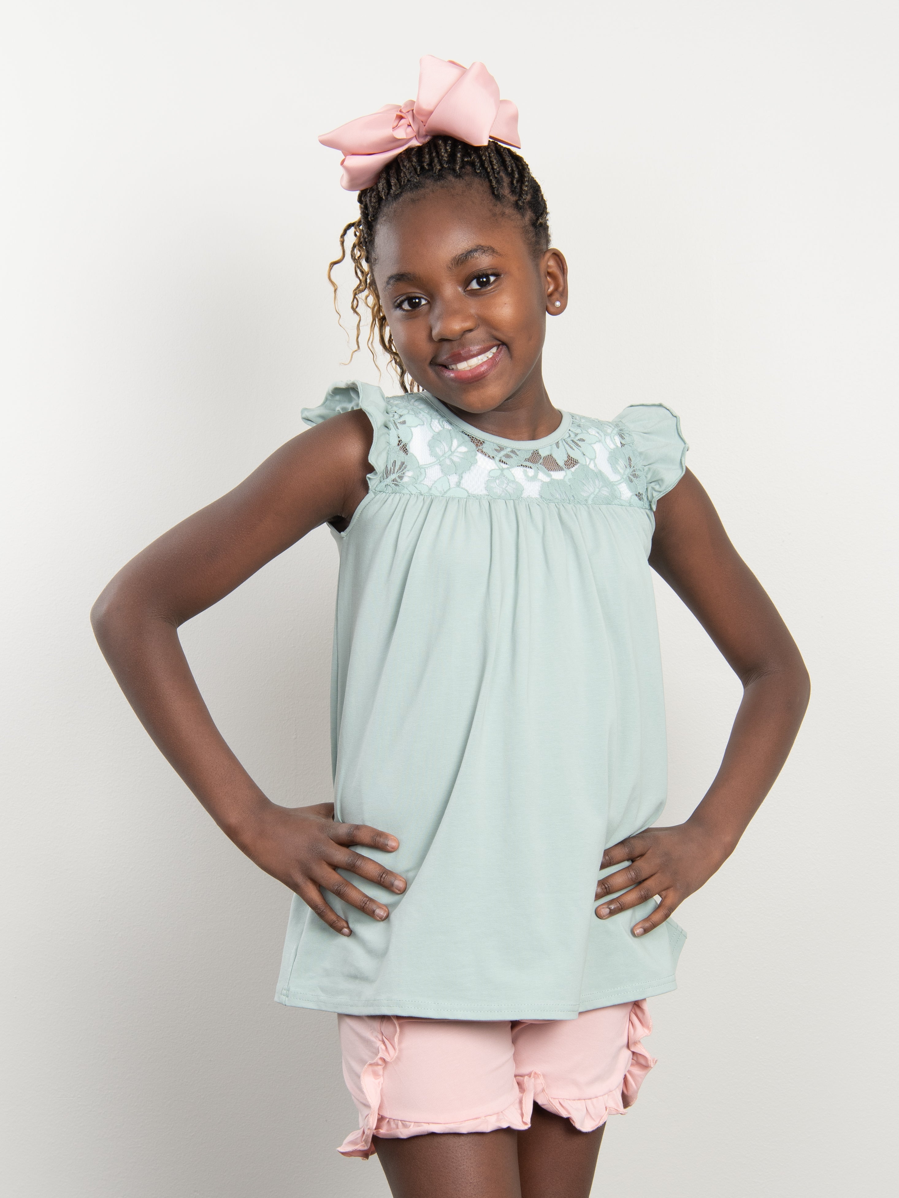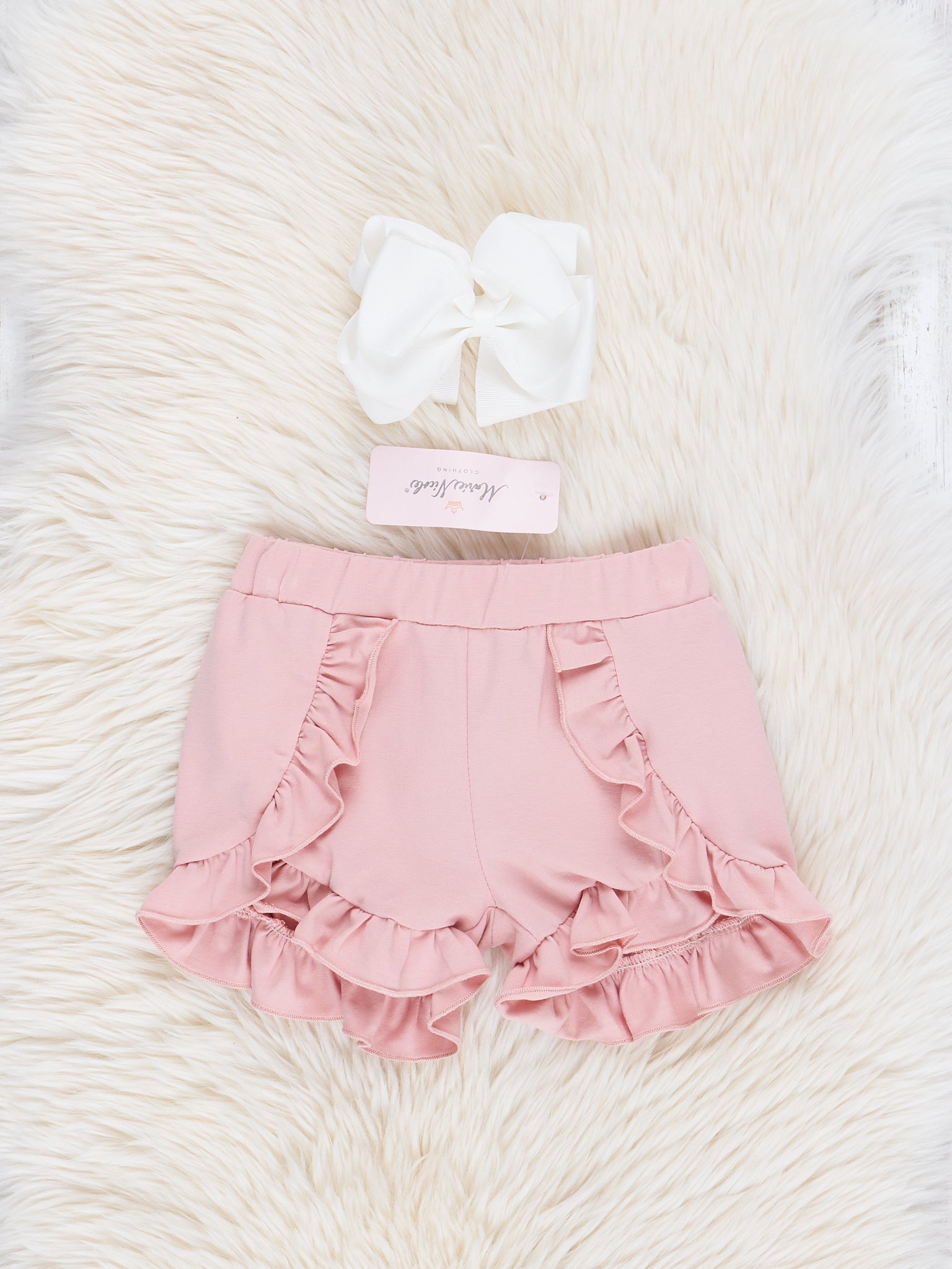 Our Cotton Ruffle Shorts are back & better than ever! These MNC-mauve shorts feature ruffles & an elastic waistband for easy changing!