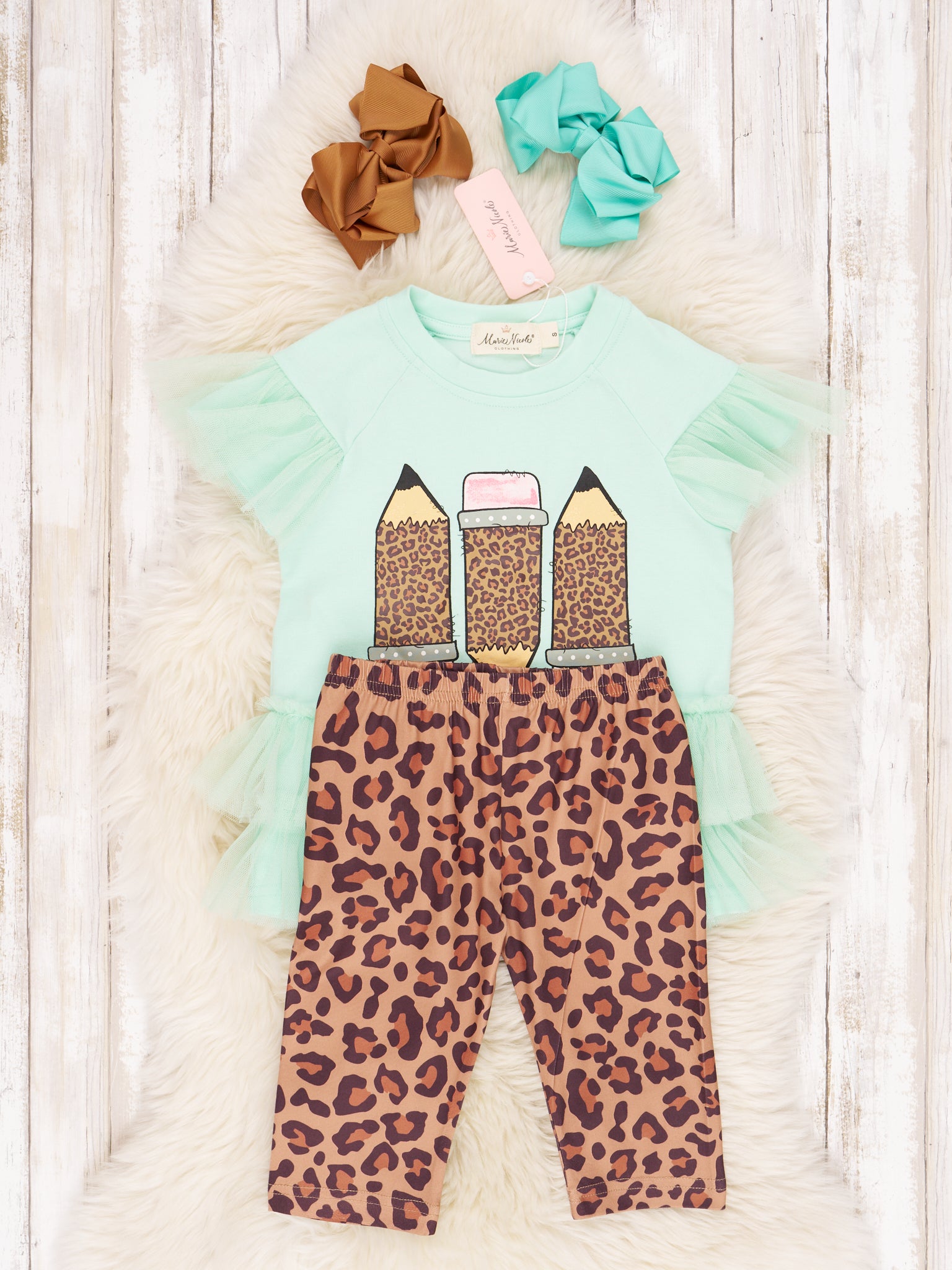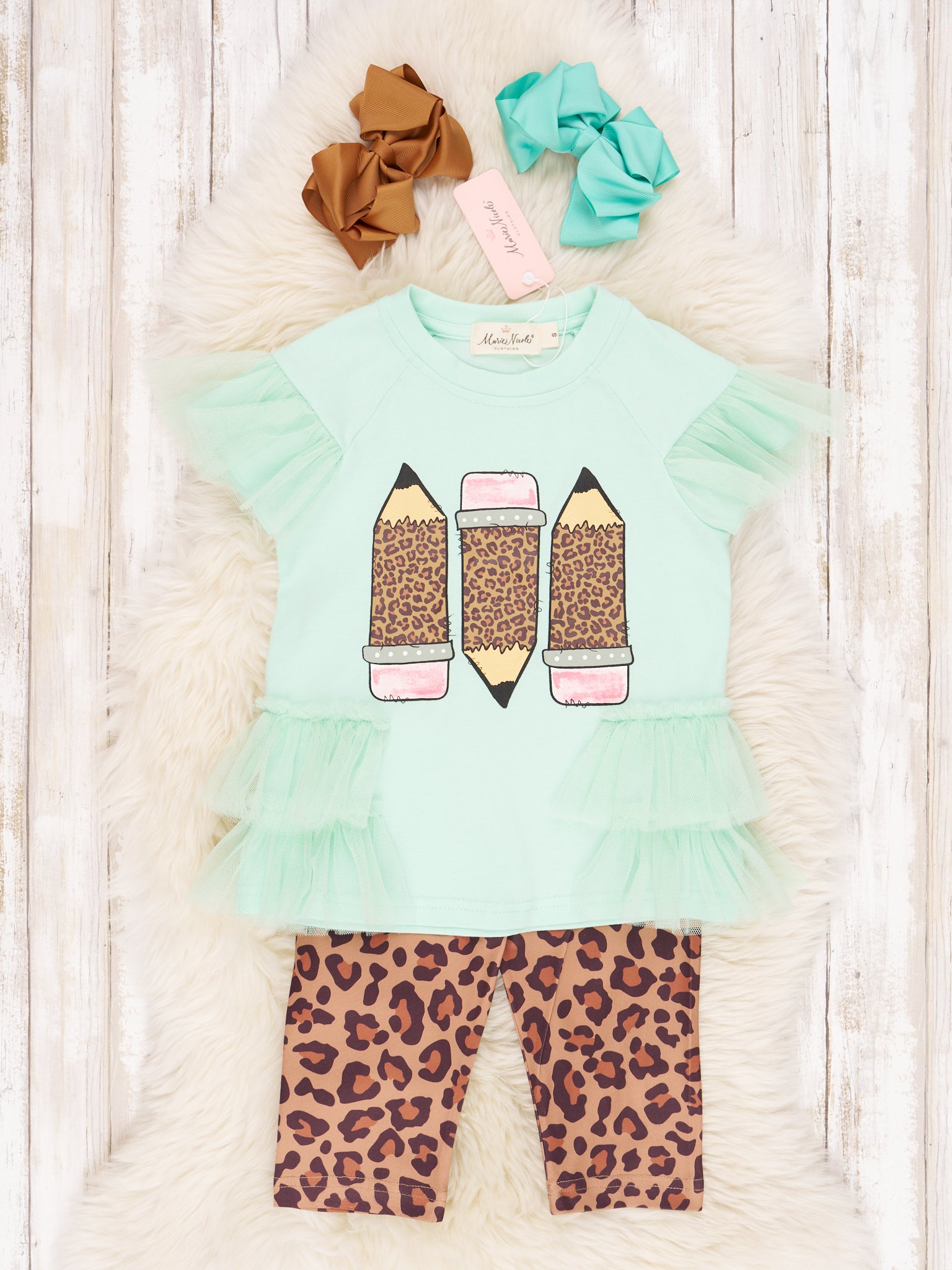 Mint Leopard Pencil Tulle Ruffle Outfit