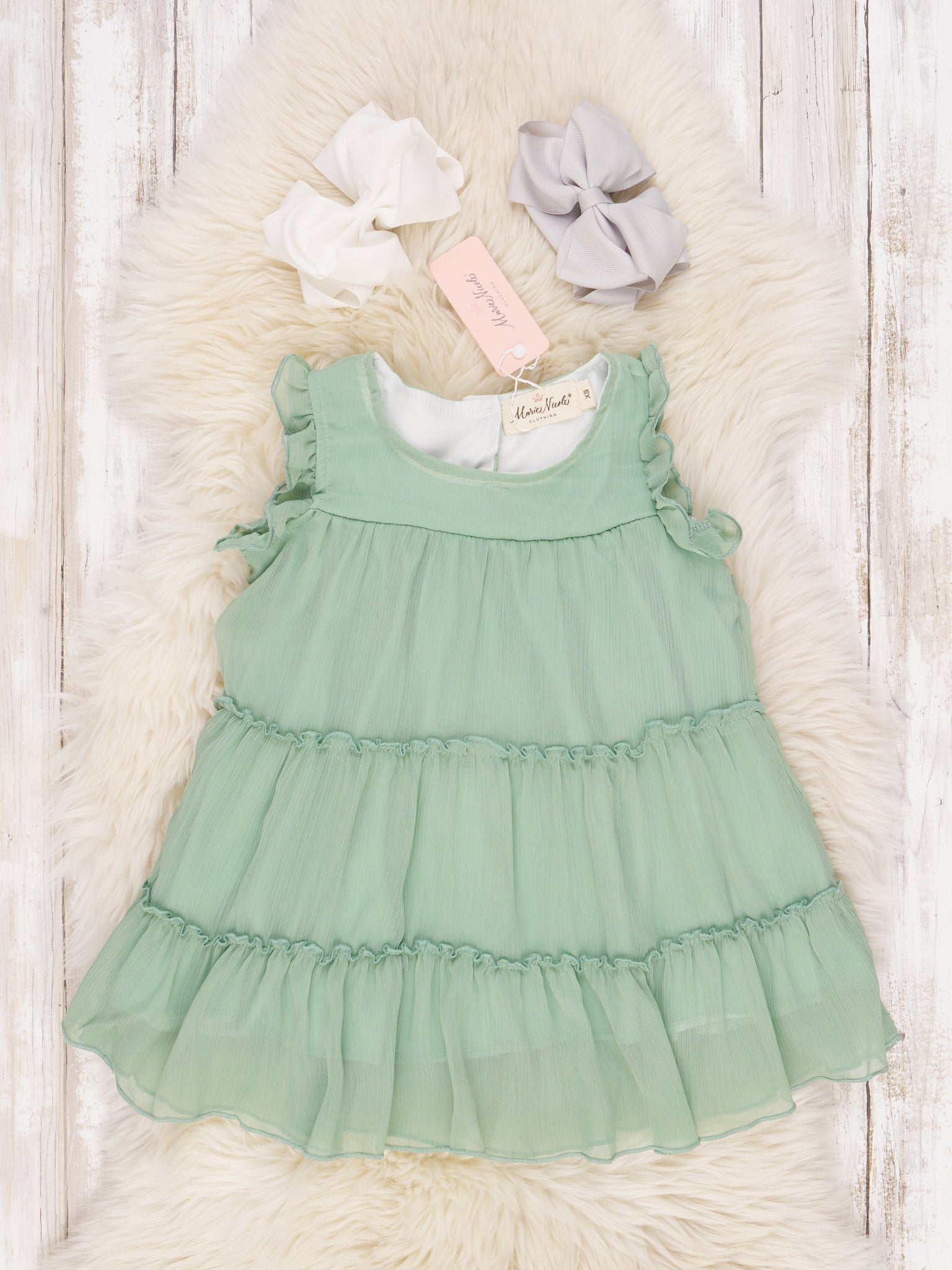 Shine bright in this stylishly sweet dresses! This oh-so-cute dress features vibrant mint hues with a tiered style and delicate ruffles. Perfect for special occasions or everyday looks, your mini-me is sure to be the star of the show!