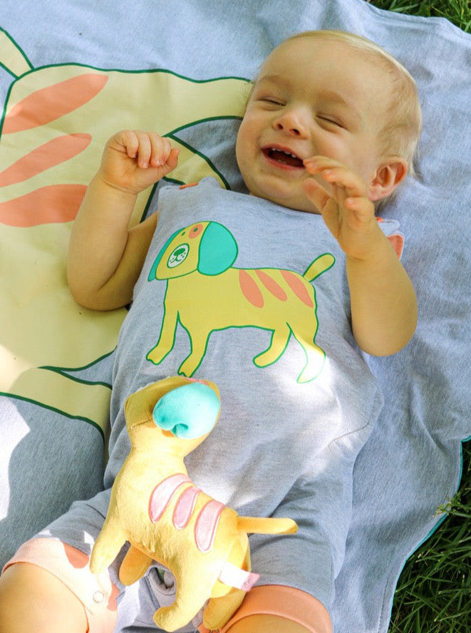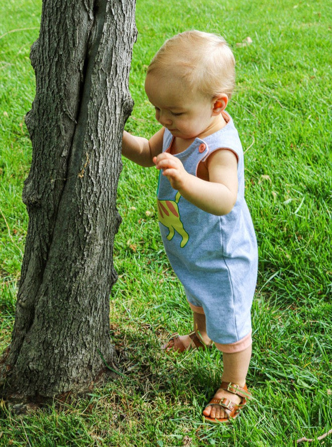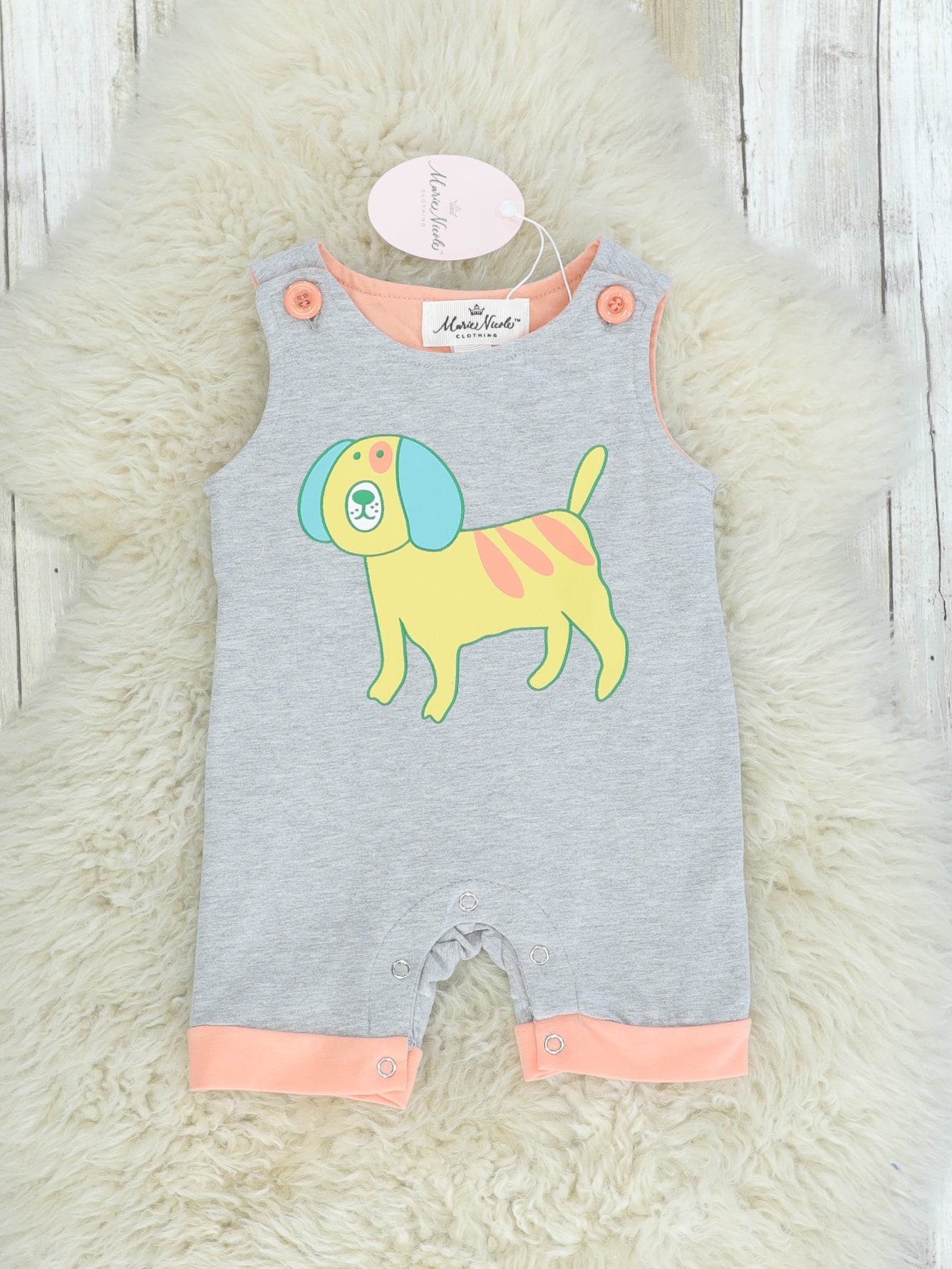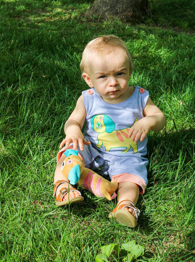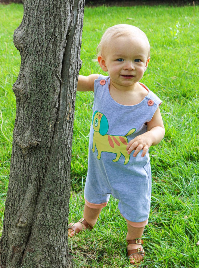 This brother set is our favorite this season! Our Duke romper features a lightweight cotton material, functional buttons and our vinyl duke decal. Our Royal Pup Duke is a very loyal pup and loves spending days outside. One of his favorite hobbies is playing fetch and running through the open fields of the courtyard. He's a curious pup who loves to find the fun in every outing but also finds himself in a bit of mischief too.