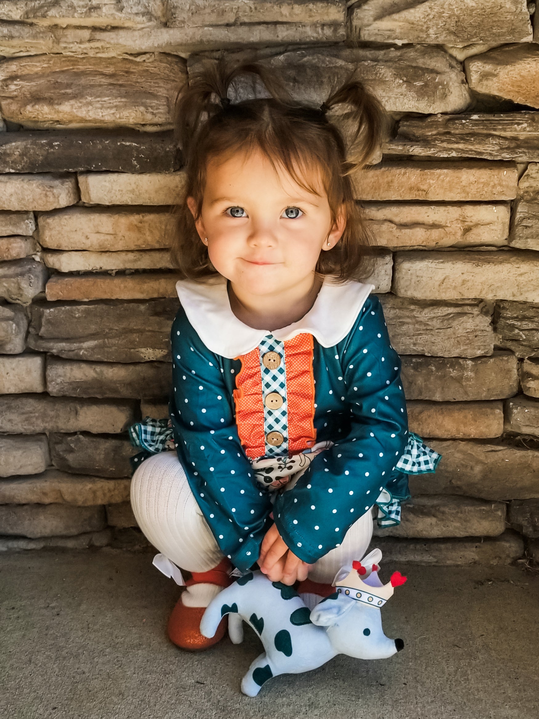 Kaylee is 23lbs., 32in. tall wearing a size 18/24MOS.