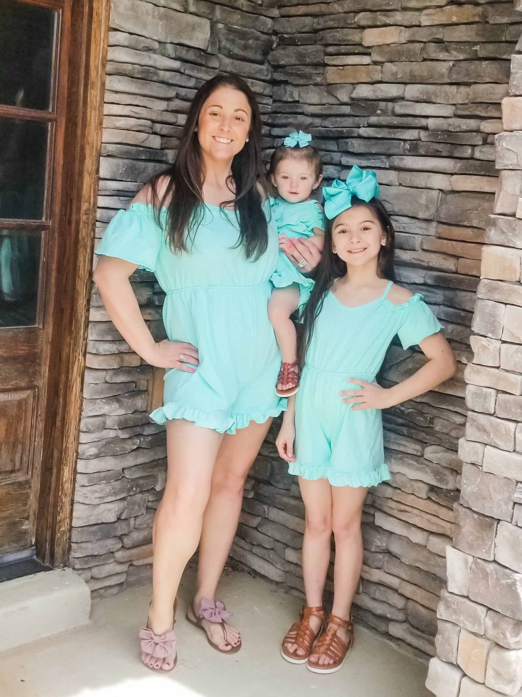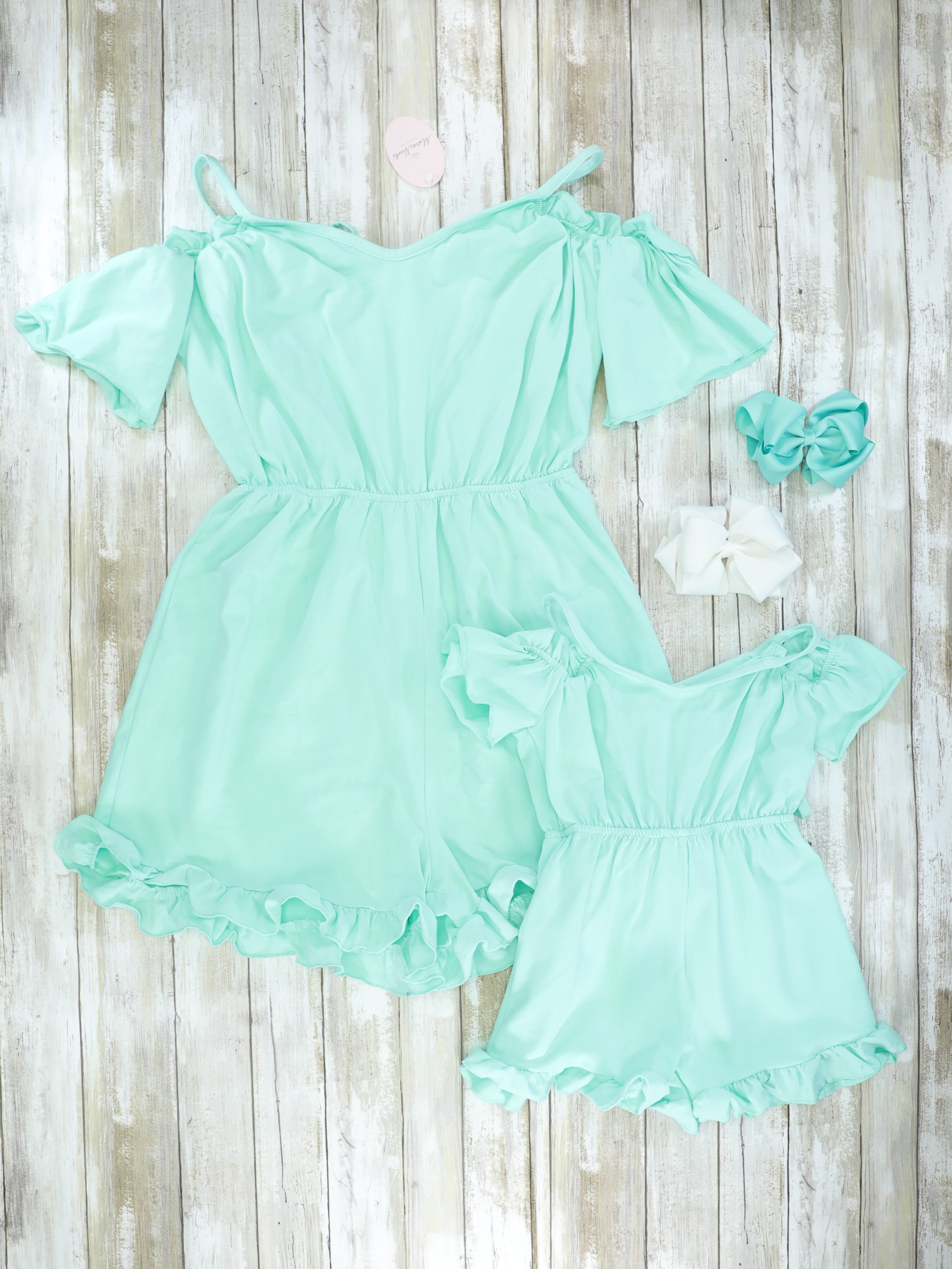 Match your mini in the cutest ruffle romper! Perfect for a mother daughter shopping trip or even a little photoshoot!