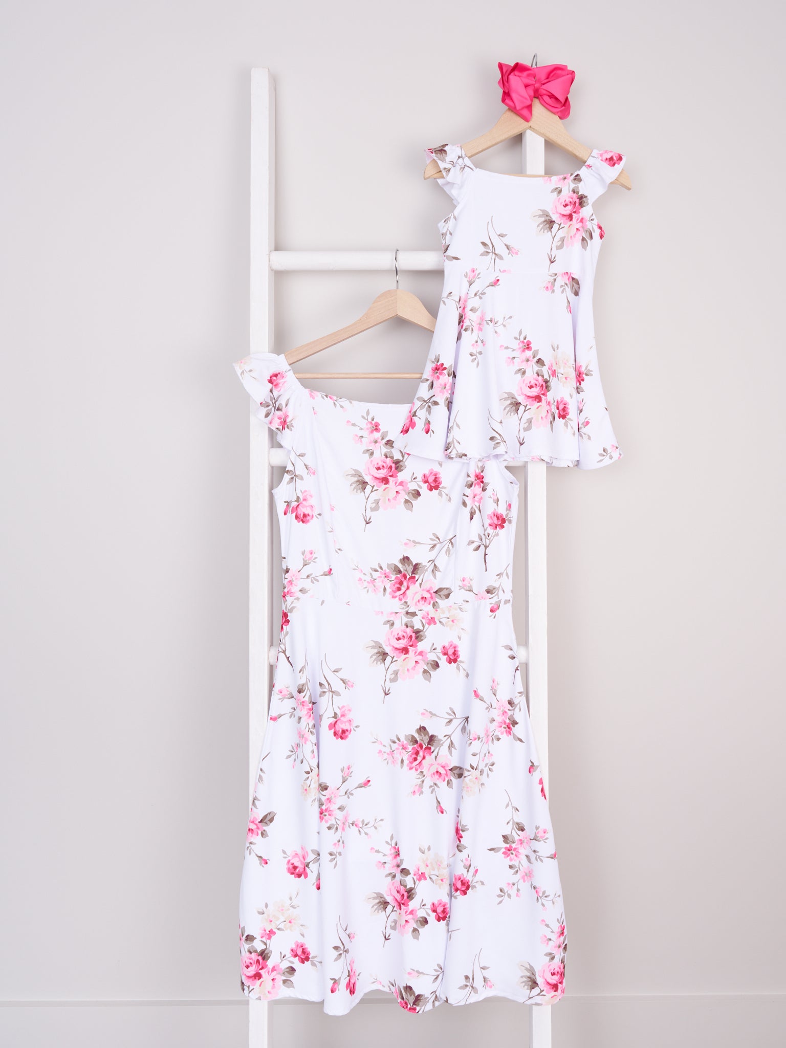Mom & Me Bright Rose Ruffle Dress