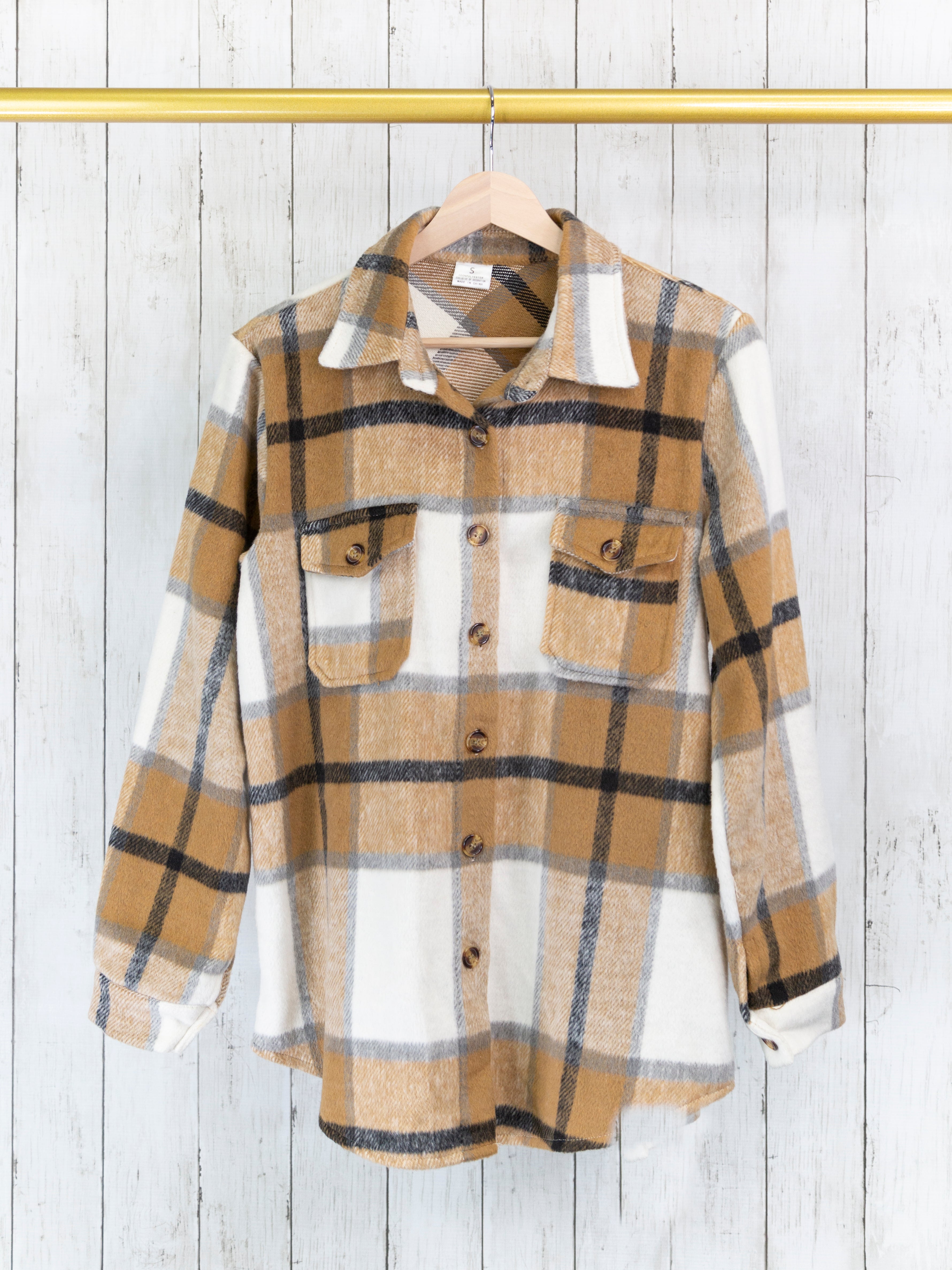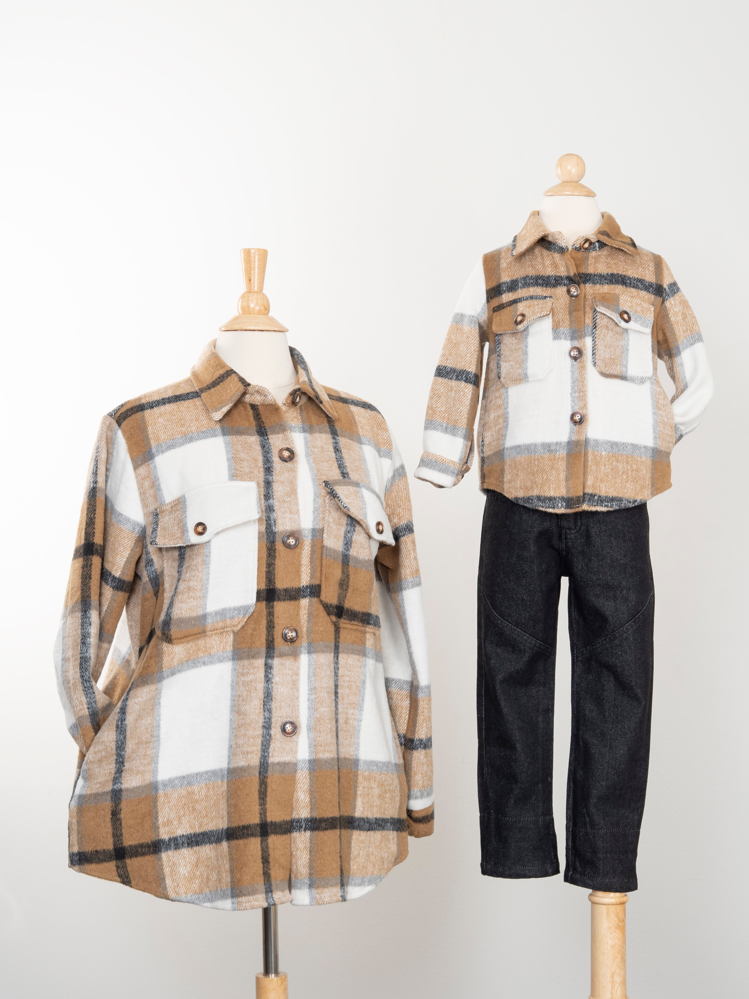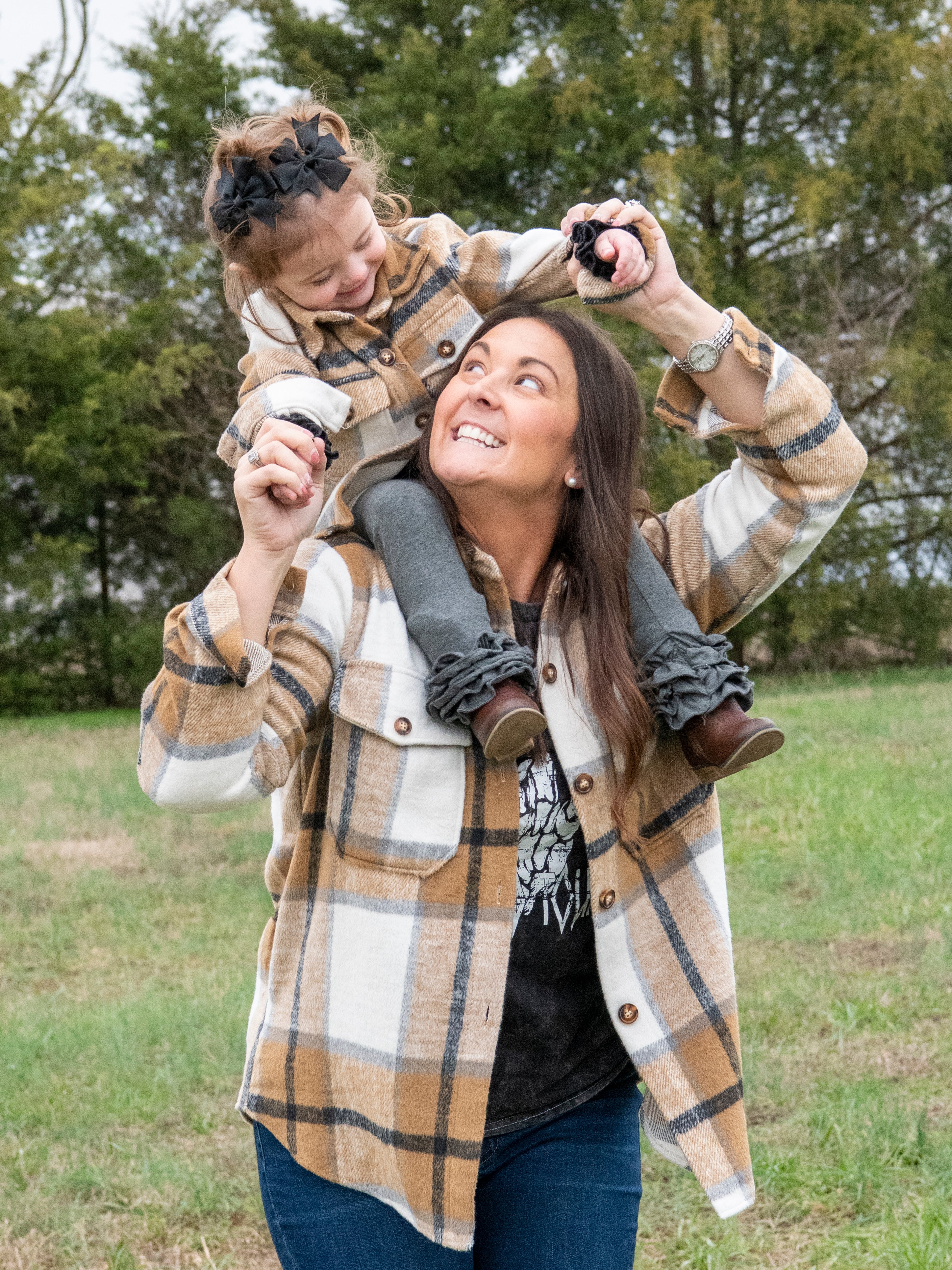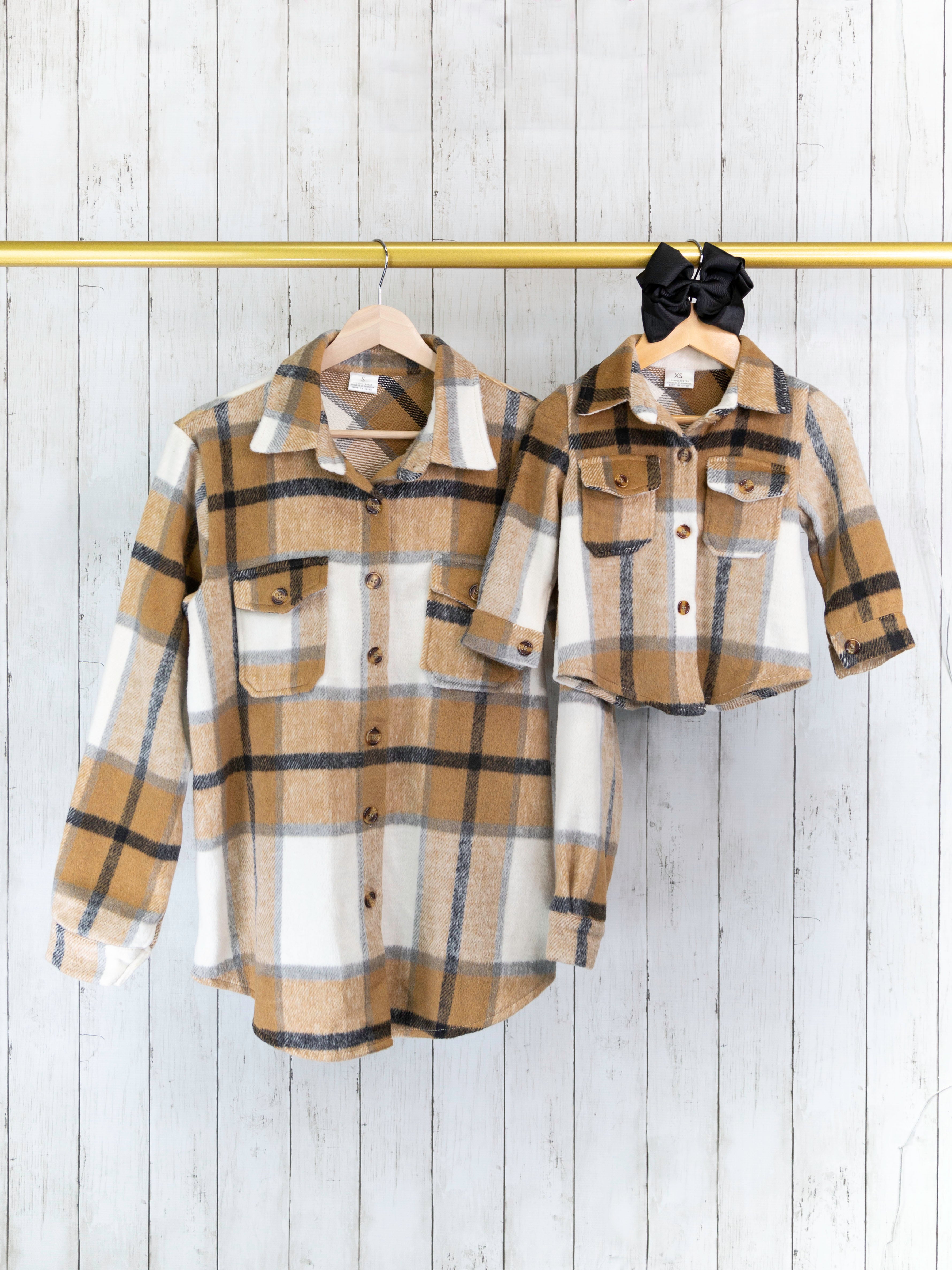 IT'S BACK! It's layering season, baby! This flannel shacket is perfect for the cold weather! Pair it with virtually anything in your wardrobe for an instant, trendy upgrade. Even better- you can match your mini! The best addition to these new flannels are POCKETS!