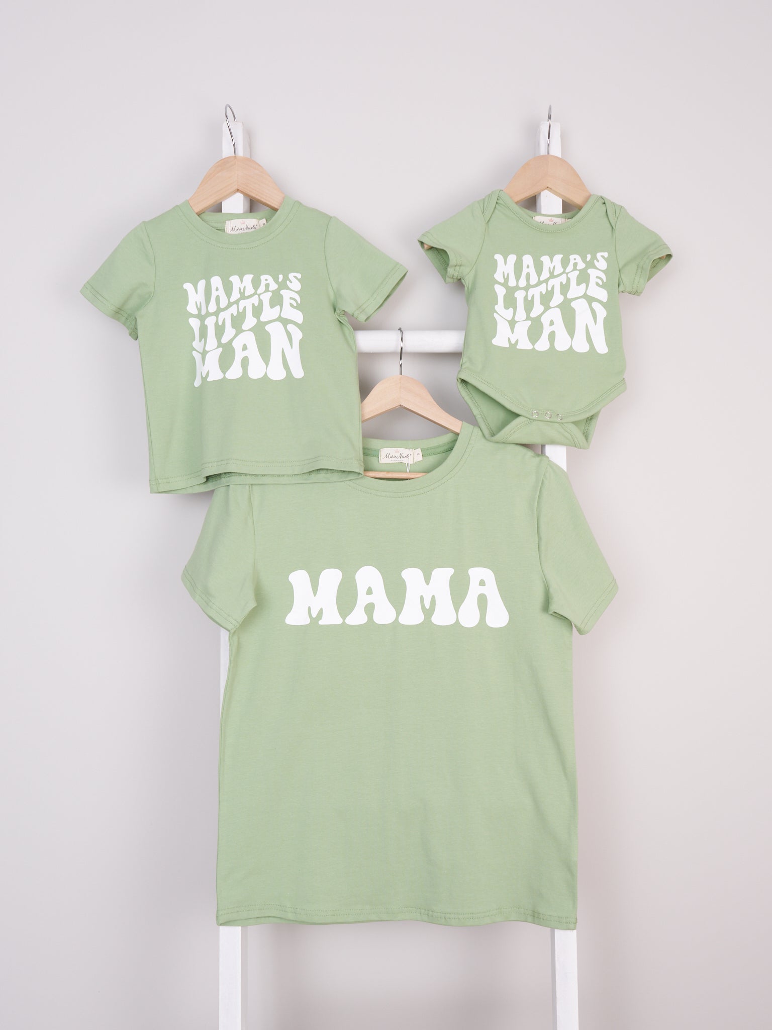 Twin up with your mini-me in style! These Mom & Me Graphic Shirts & Romper are the perfect match for you and your little man. With "Mama" and "Mama's Little Man" printed on these pieces, it's aww-dorable!! Show off your matching mama-son magic with this charming combo!
