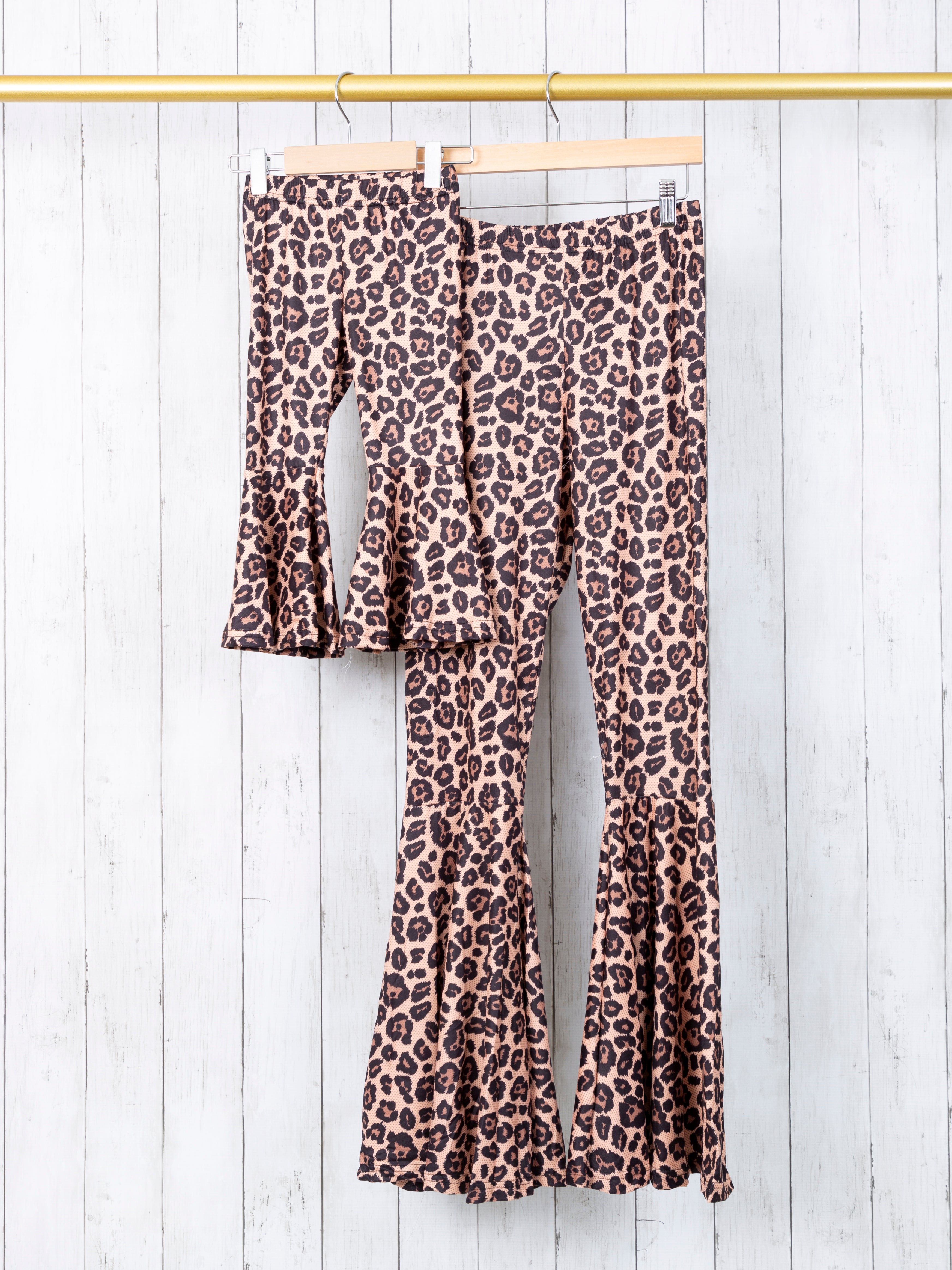 Match your mini any day in these adorable bell bottoms! These leopard print bell bottoms feature an elastic waistband.