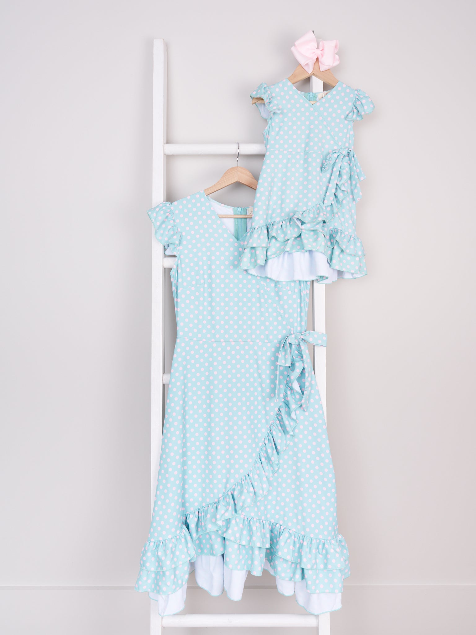 Mom & Me Polka Dot Ruffle Bow Dress