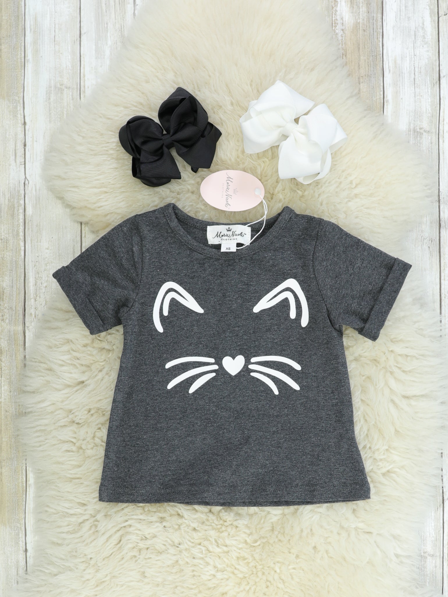 Everybody wants to be a COOL cat! This mom & me set features heathered gray short sleeve shirts with a "Cat Mom" detail on the mom's shirt & a cat detail on the girl's shirt.