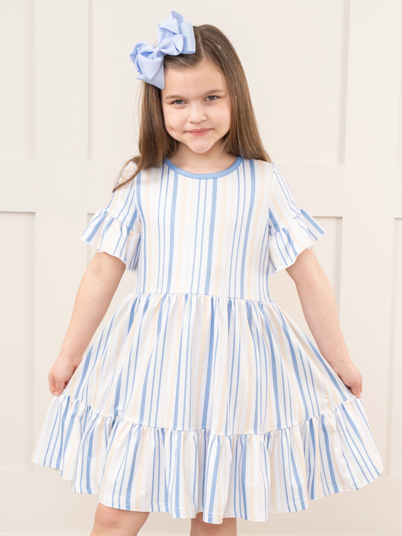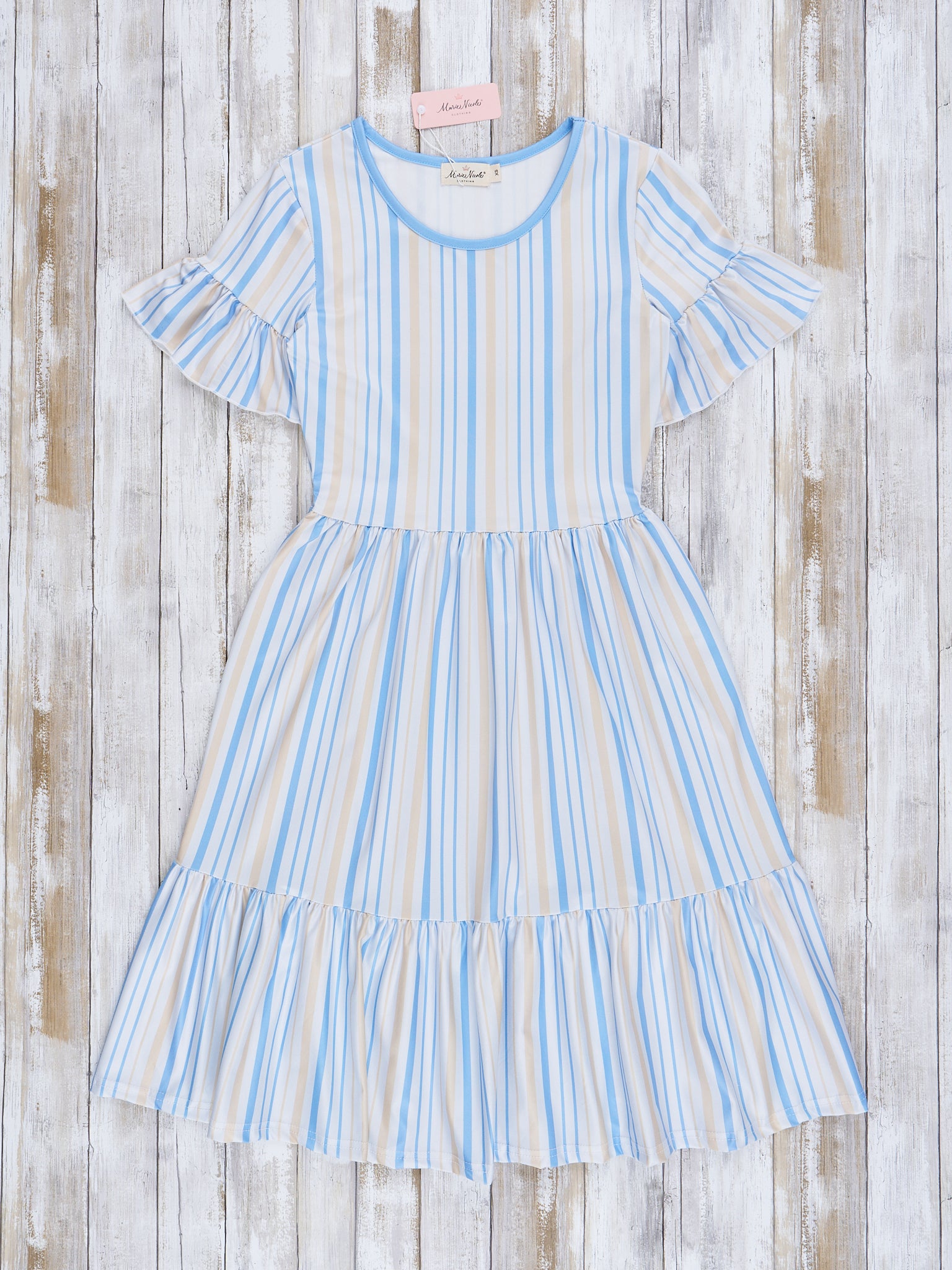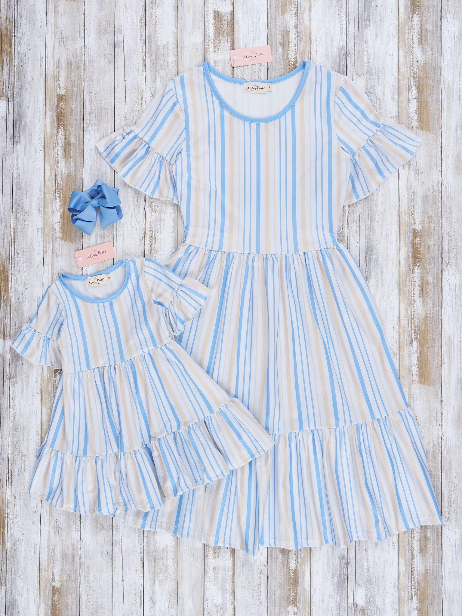 Mom & Me Cornflower Stripes Tiered Ruffle Dress
