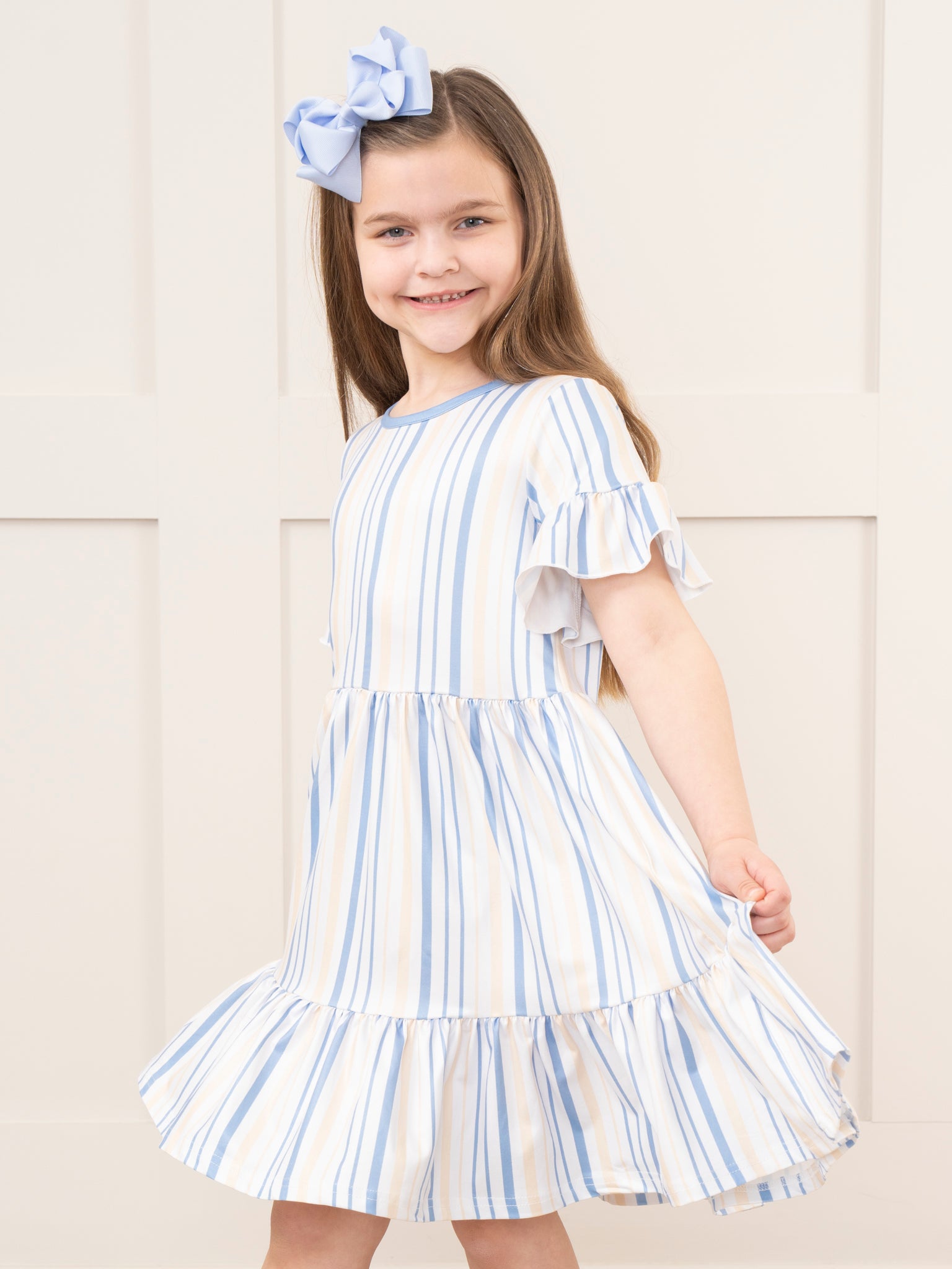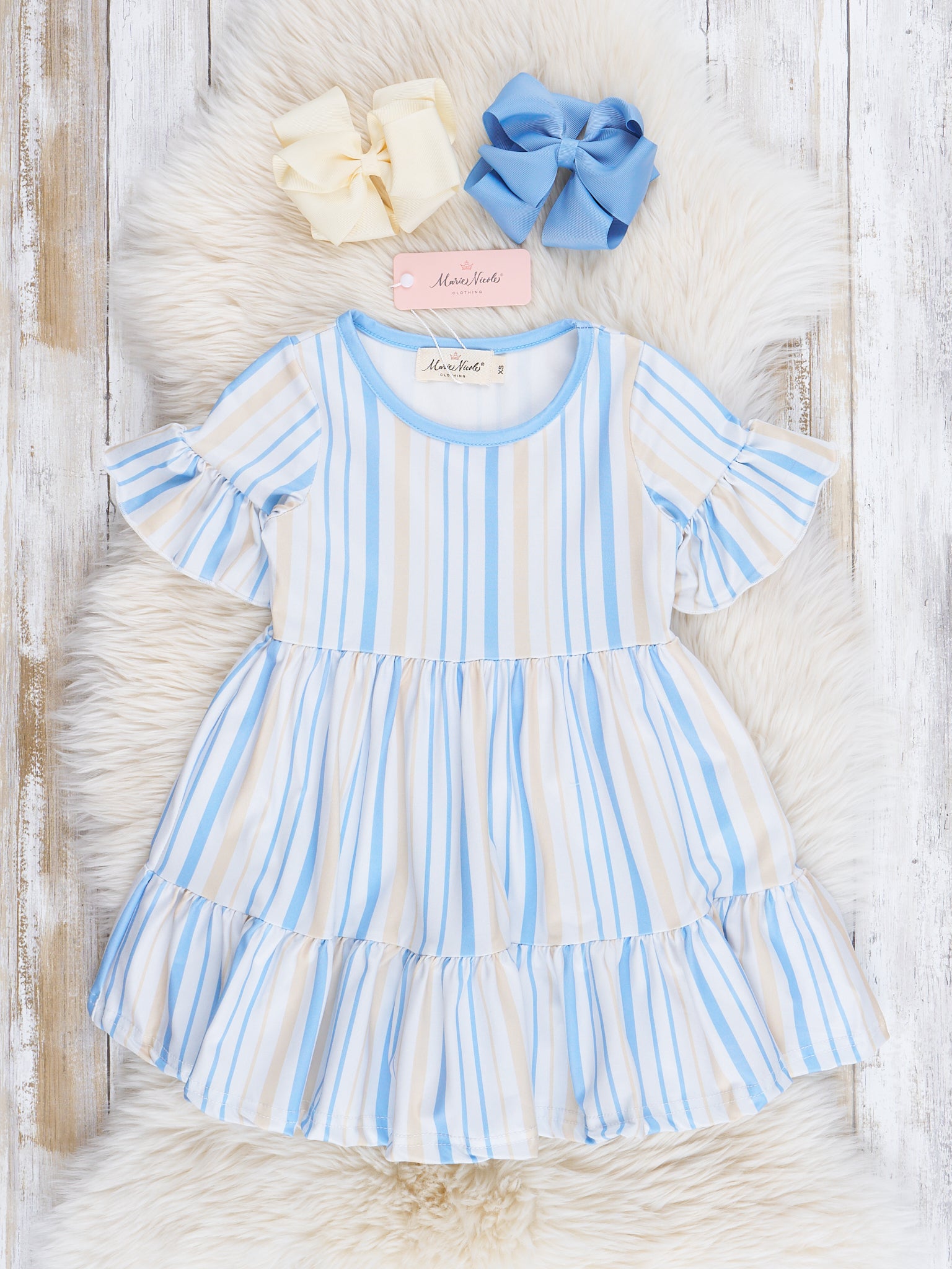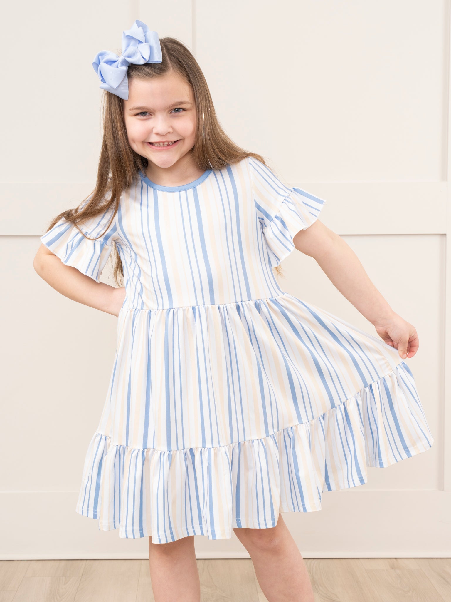 Mom & Me Cornflower Stripes Tiered Ruffle Dress