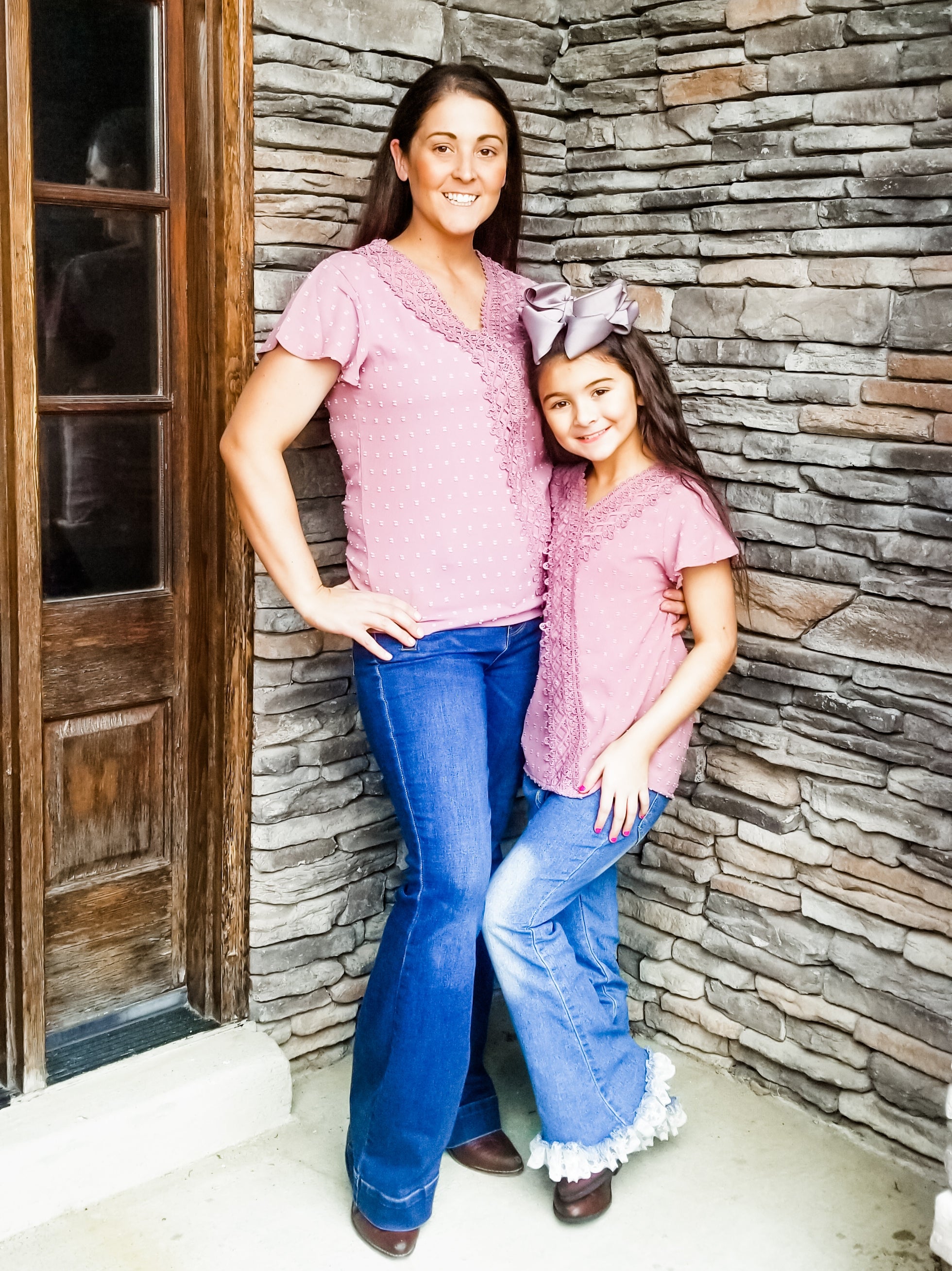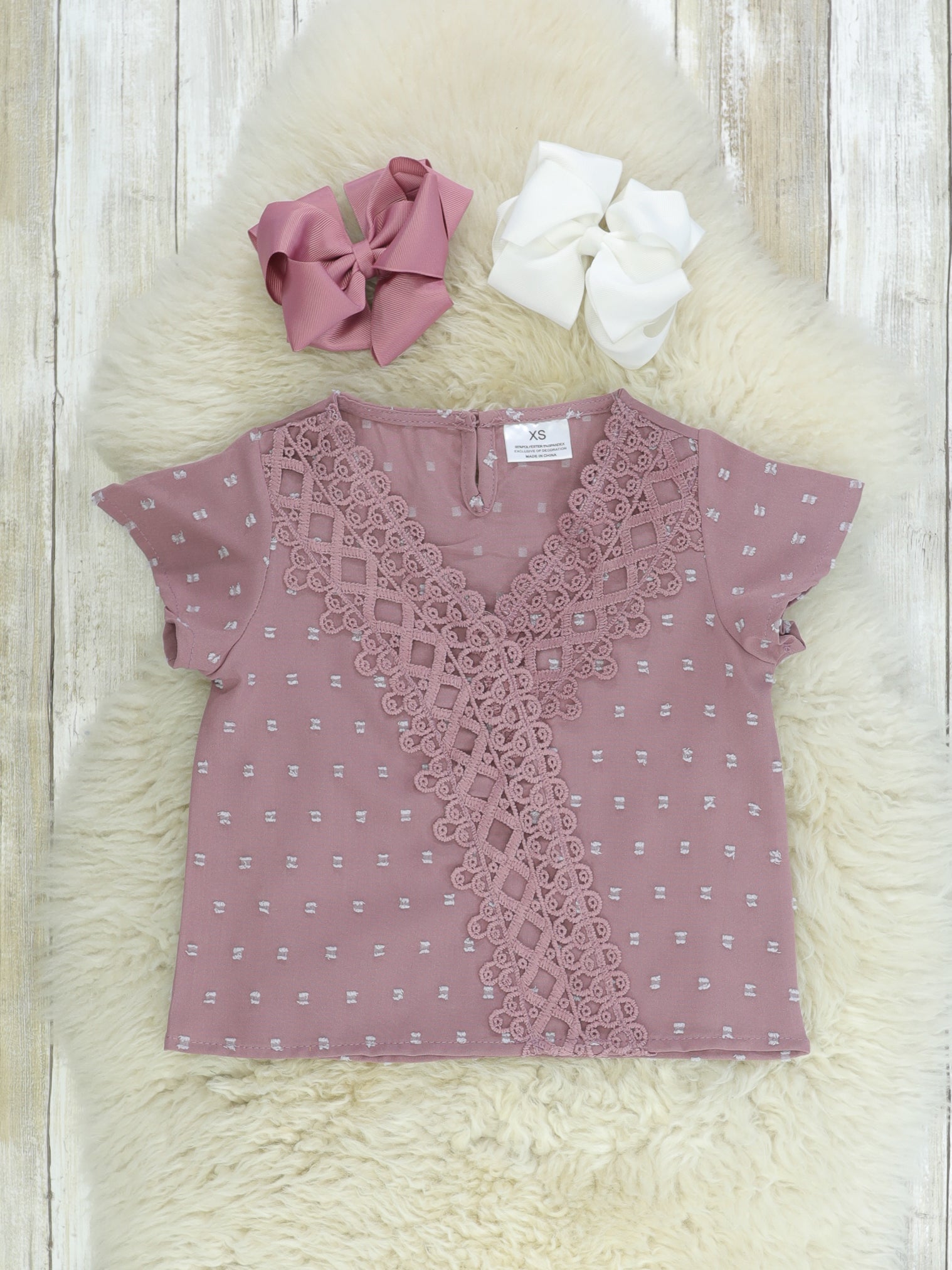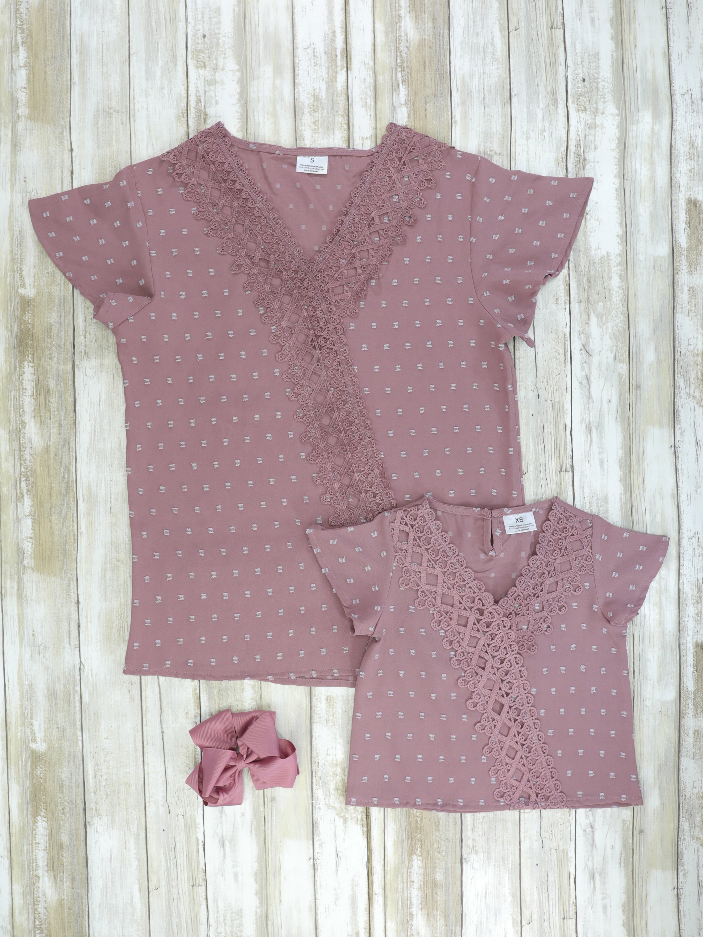 Mom & Me Dusty Rose Lace Swiss Dot Cross Over Top