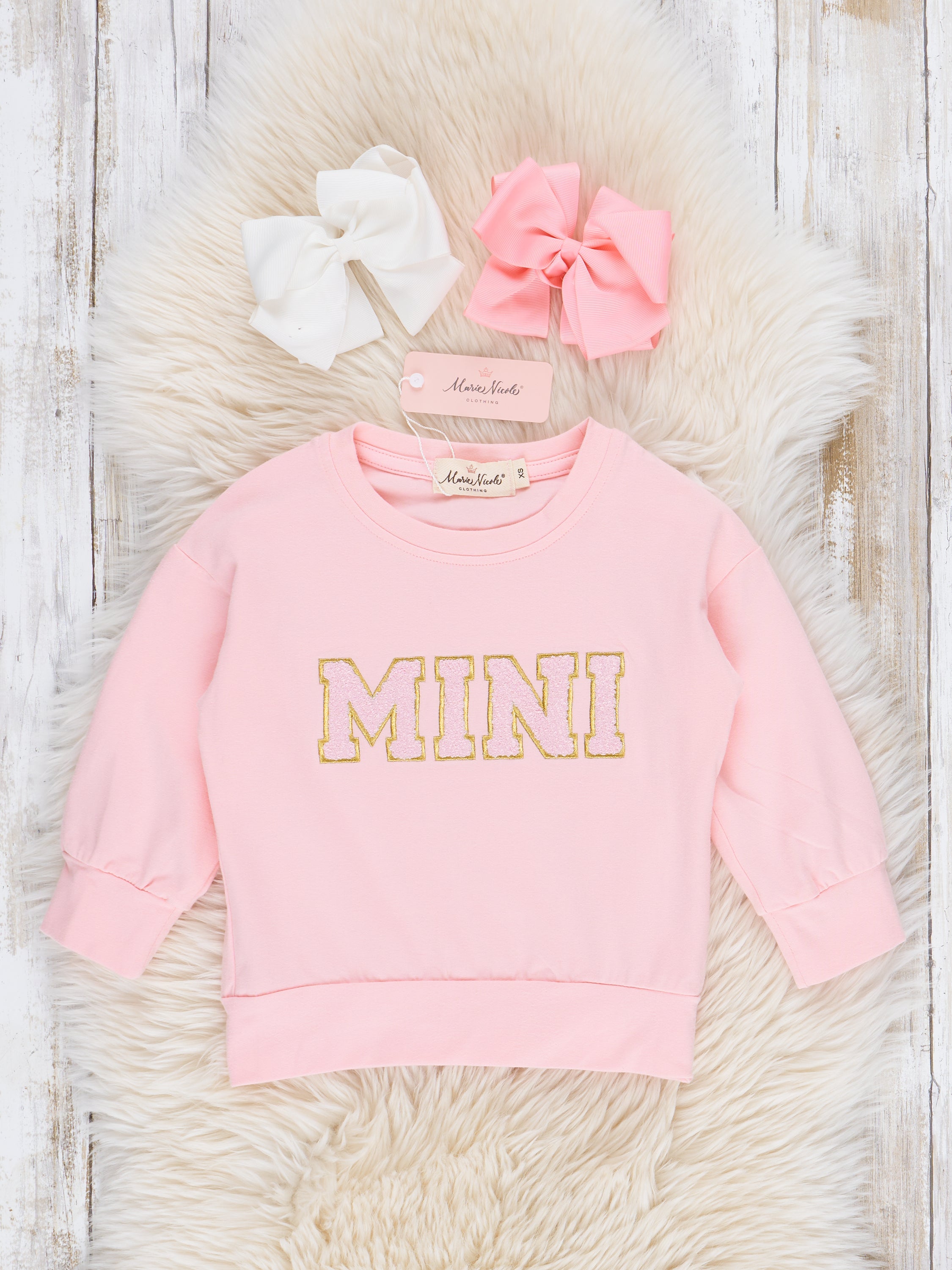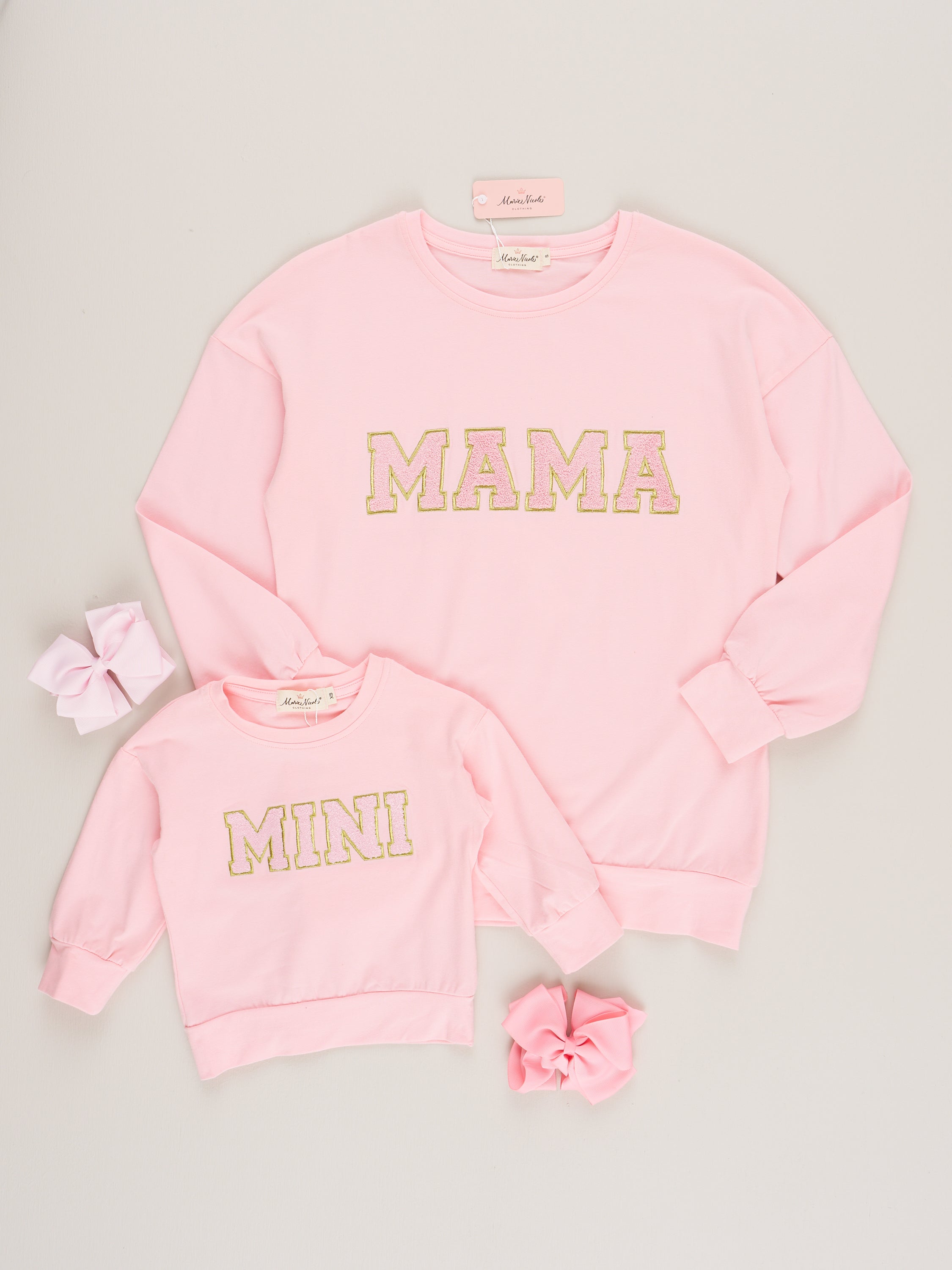 Match with your little one in stylish fun with our Mom & Me Pink Mama/Mini Shirt! The perfect duo for any playful outing, these chenille lettered shirts come in a cute pink hue. Show off your bond with this trendy twin set. Don't miss out on this mama and me must-have!