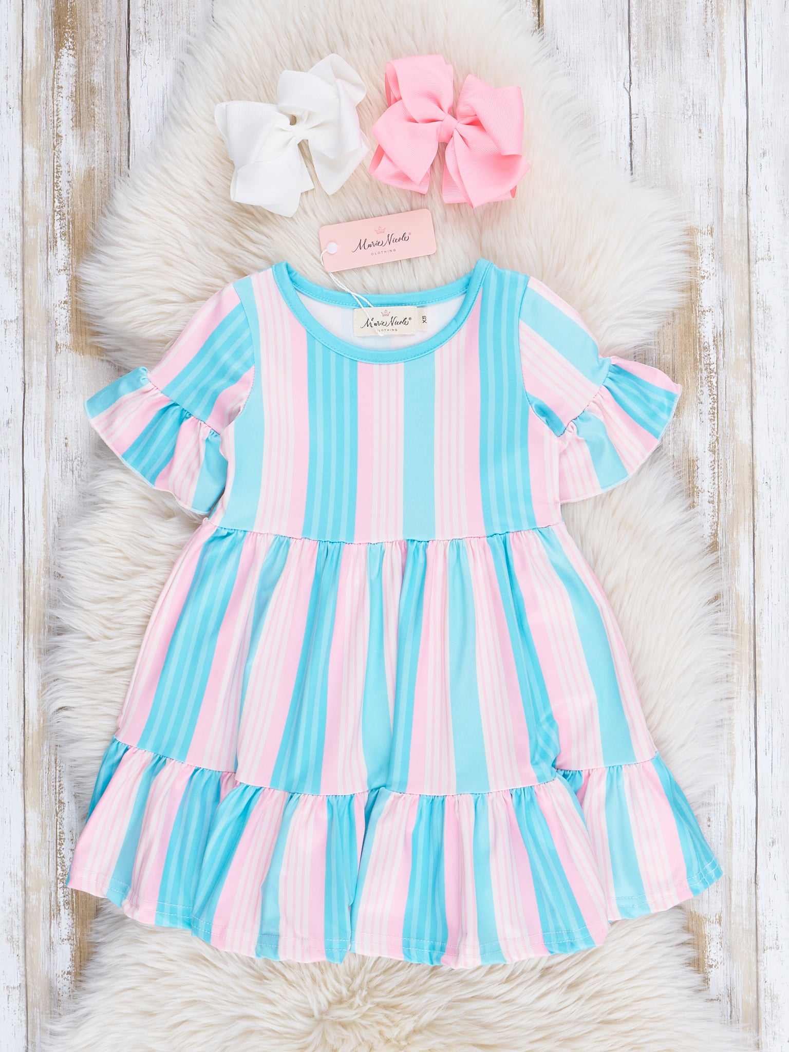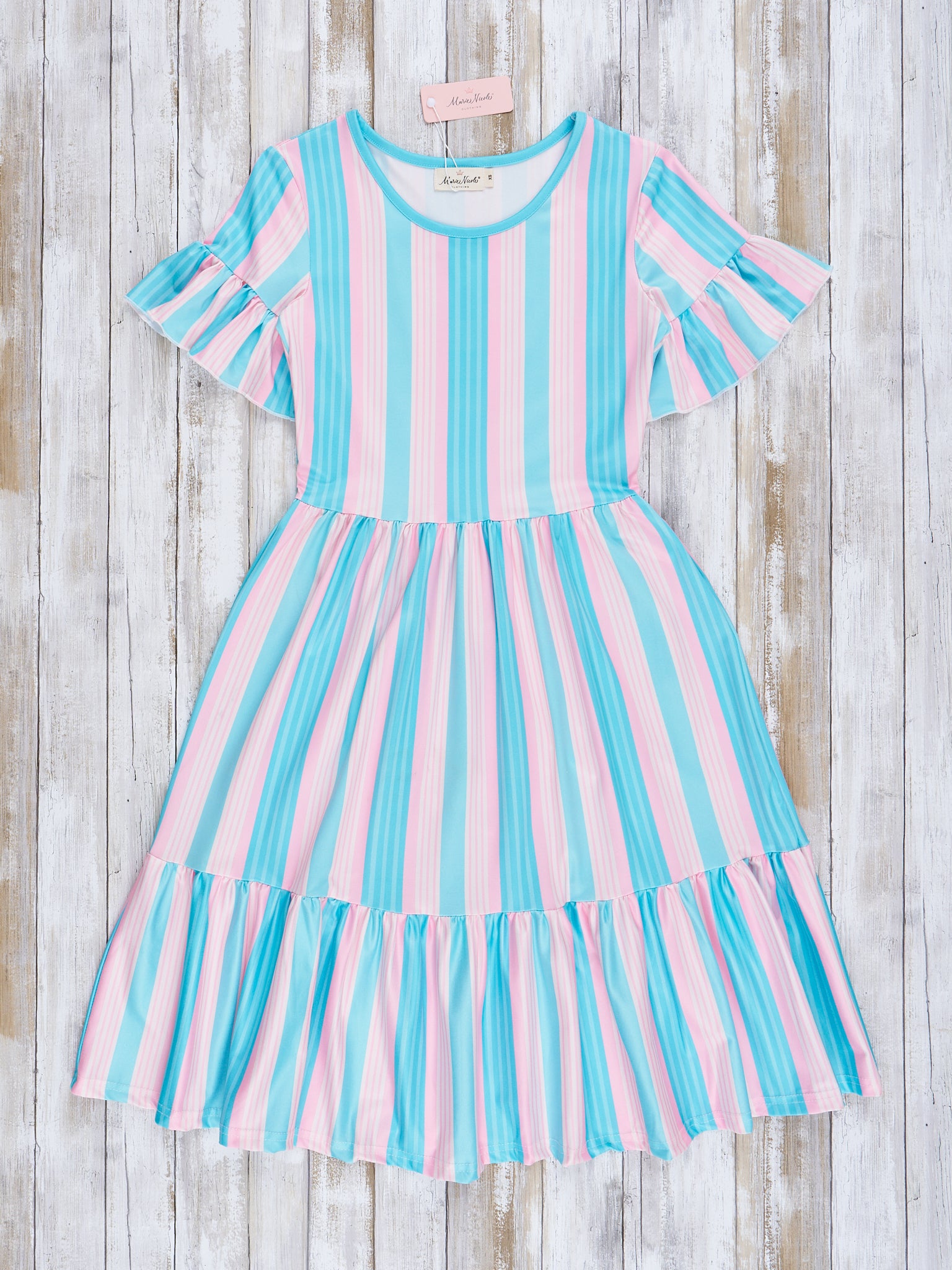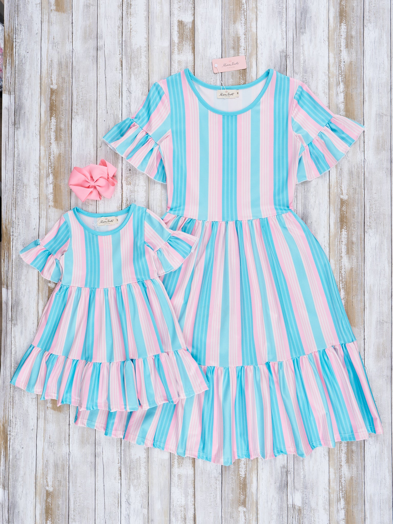 Mom & Me Teal Stripes Tiered Ruffle Dress
