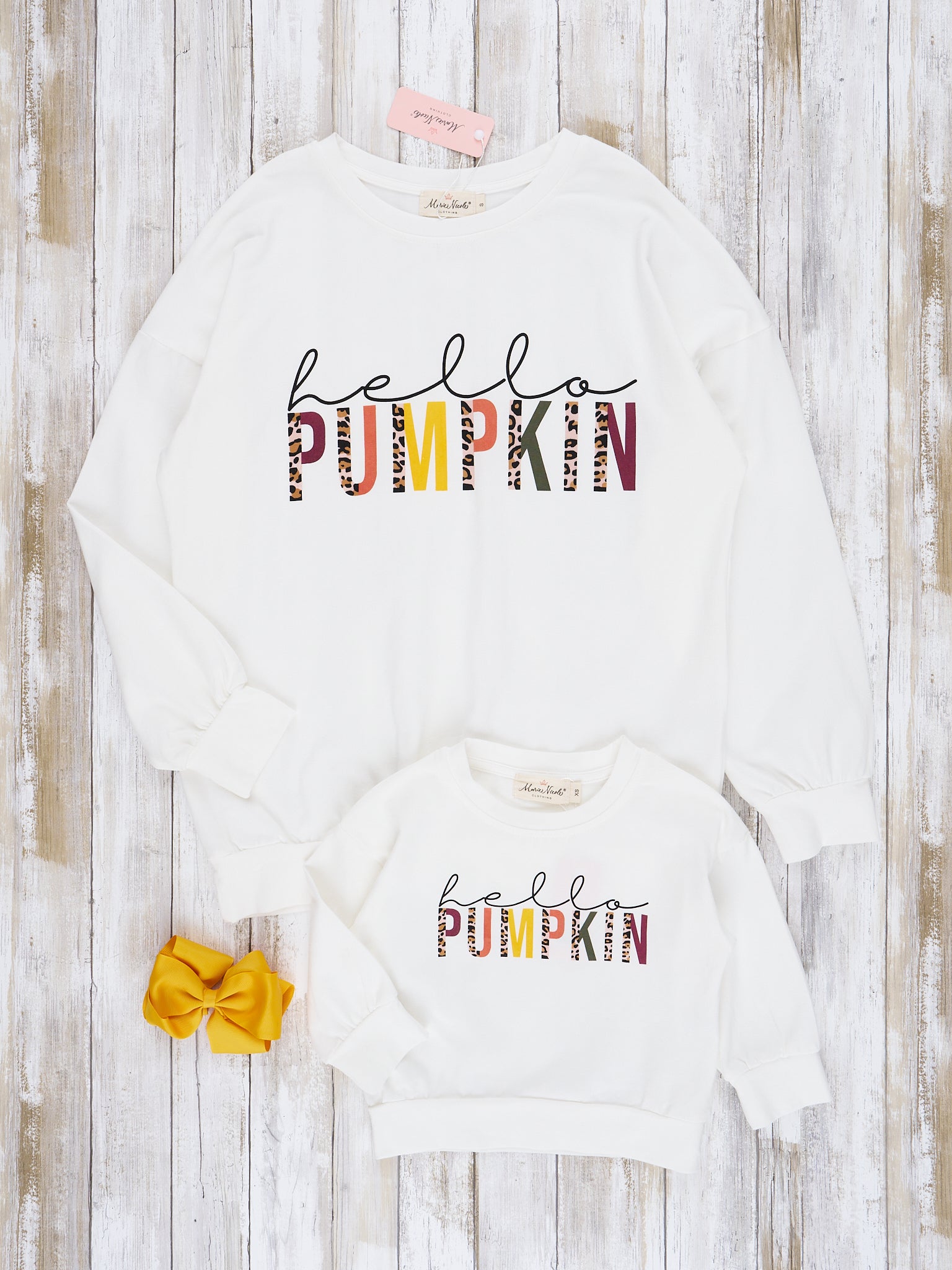 Mom & Me White "Hello Pumpkin" Crew Neck