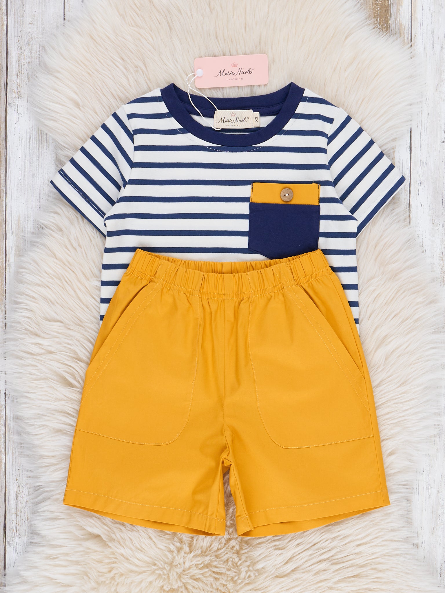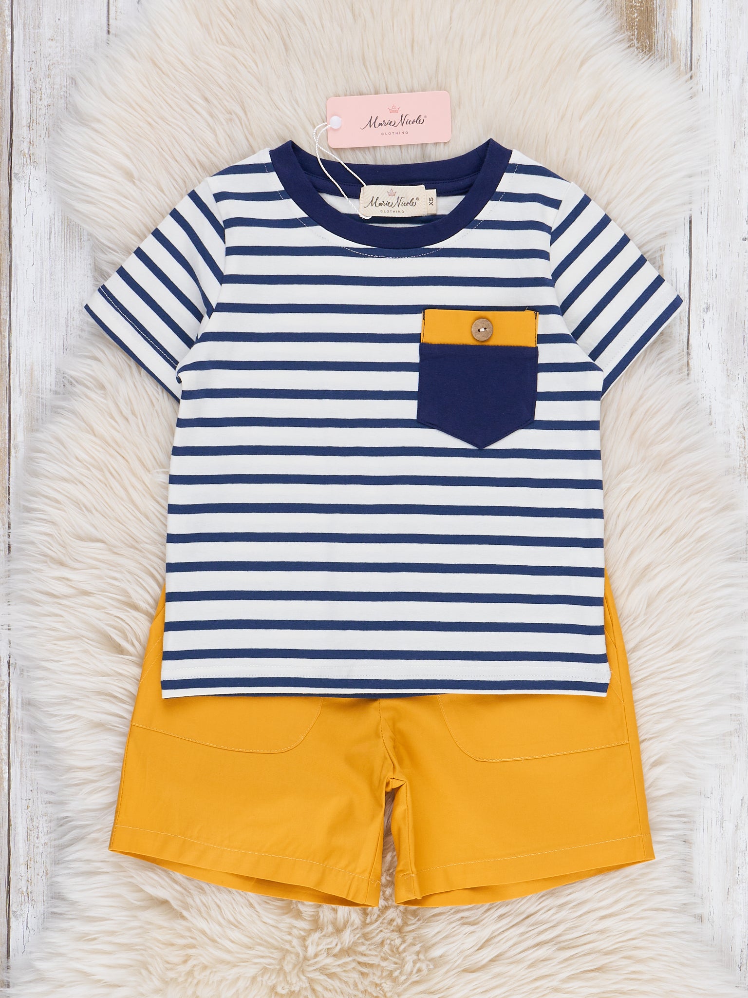 Whether it's a day at the beach or a casual outing, Nautical Stripes Pocket Outfit is a timeless and stylish set perfect for any casual day. Featuring classic nautical stripes and functional pockets, this outfit from Marie Nicole Clothing combines comfort and charm effortlessly.