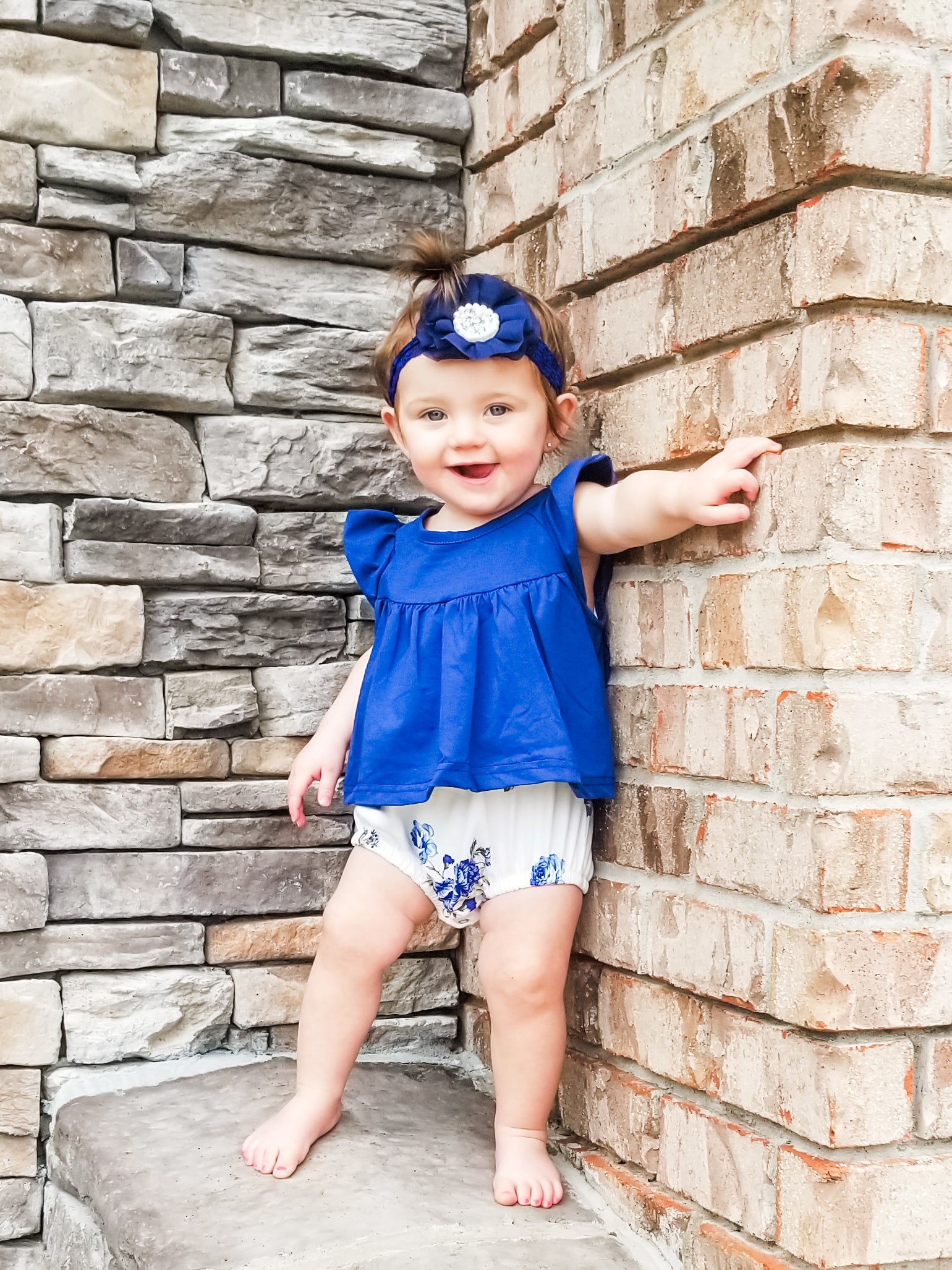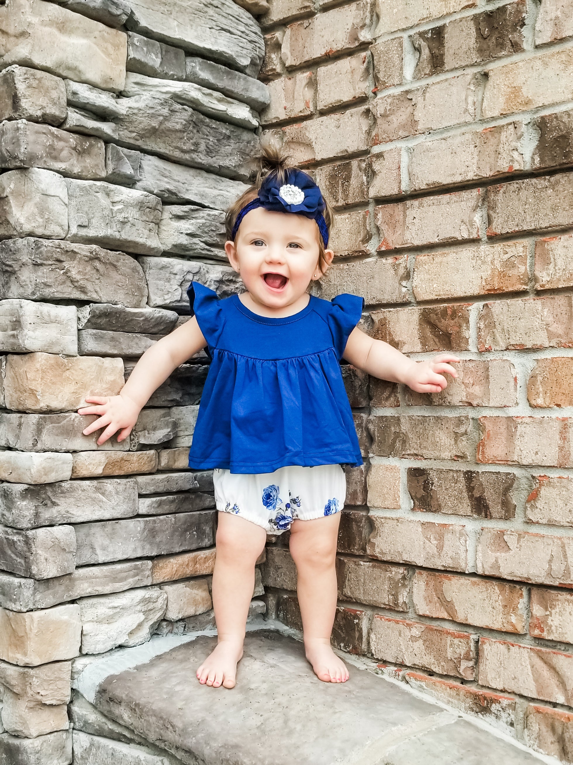 This little tunic top is the most beautiful shade of navy and looks so sweet with floral bloomers!